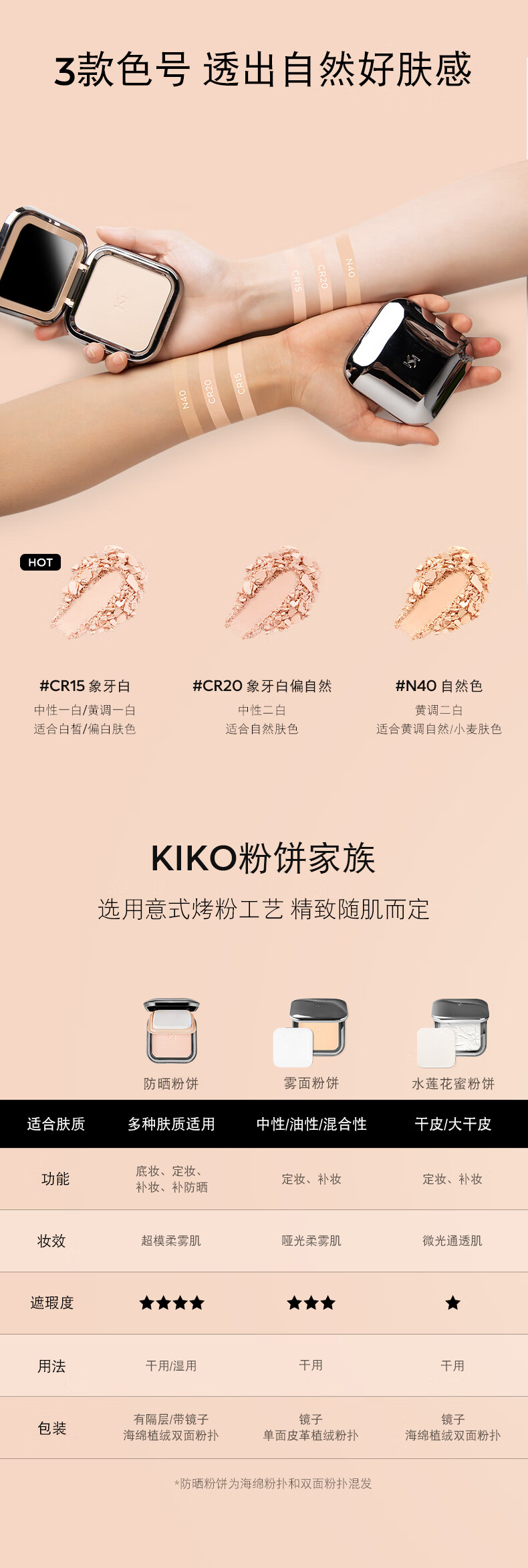 KIKO防晒粉饼CR15 柔焦定妆补妆底妆粉饼散粉遮瑕干湿两用新年礼物