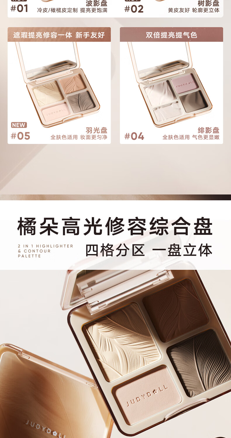 橘朵(Judydoll)【点金系列】高光修容综合盘粉饼鼻影阴影新年礼物#02树影盘