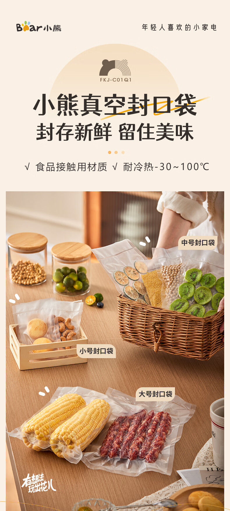 小熊(Bear)封口袋 真空袋10cm*15cm 50只装食品真空包装袋保鲜袋 FKJ-C01Q1-S01
