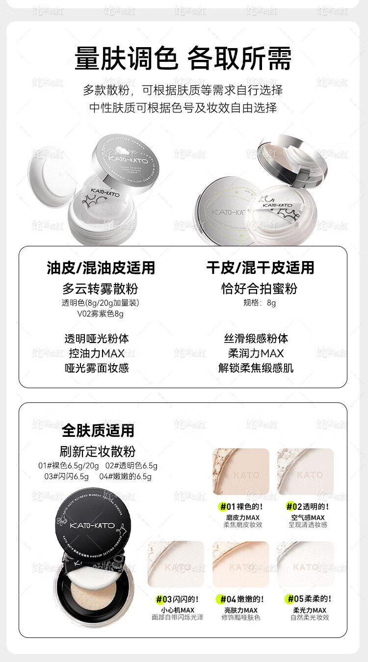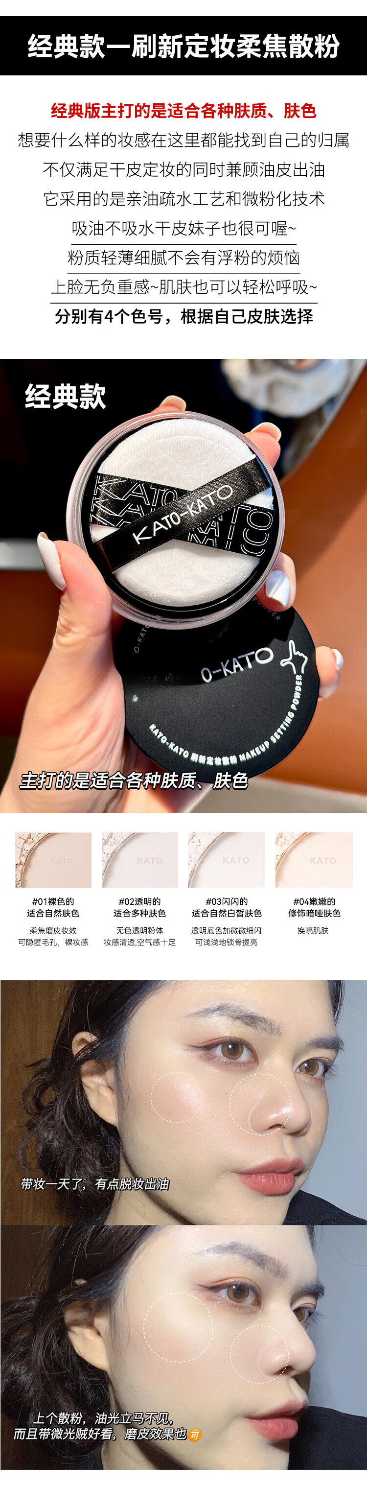 KATO散粉控油定妆持久koto新款散粉定妆粉防水防汗不脱妆蜜粉粉饼 01#裸色【升级 新视觉】所有肌肤适用 【送品牌粉