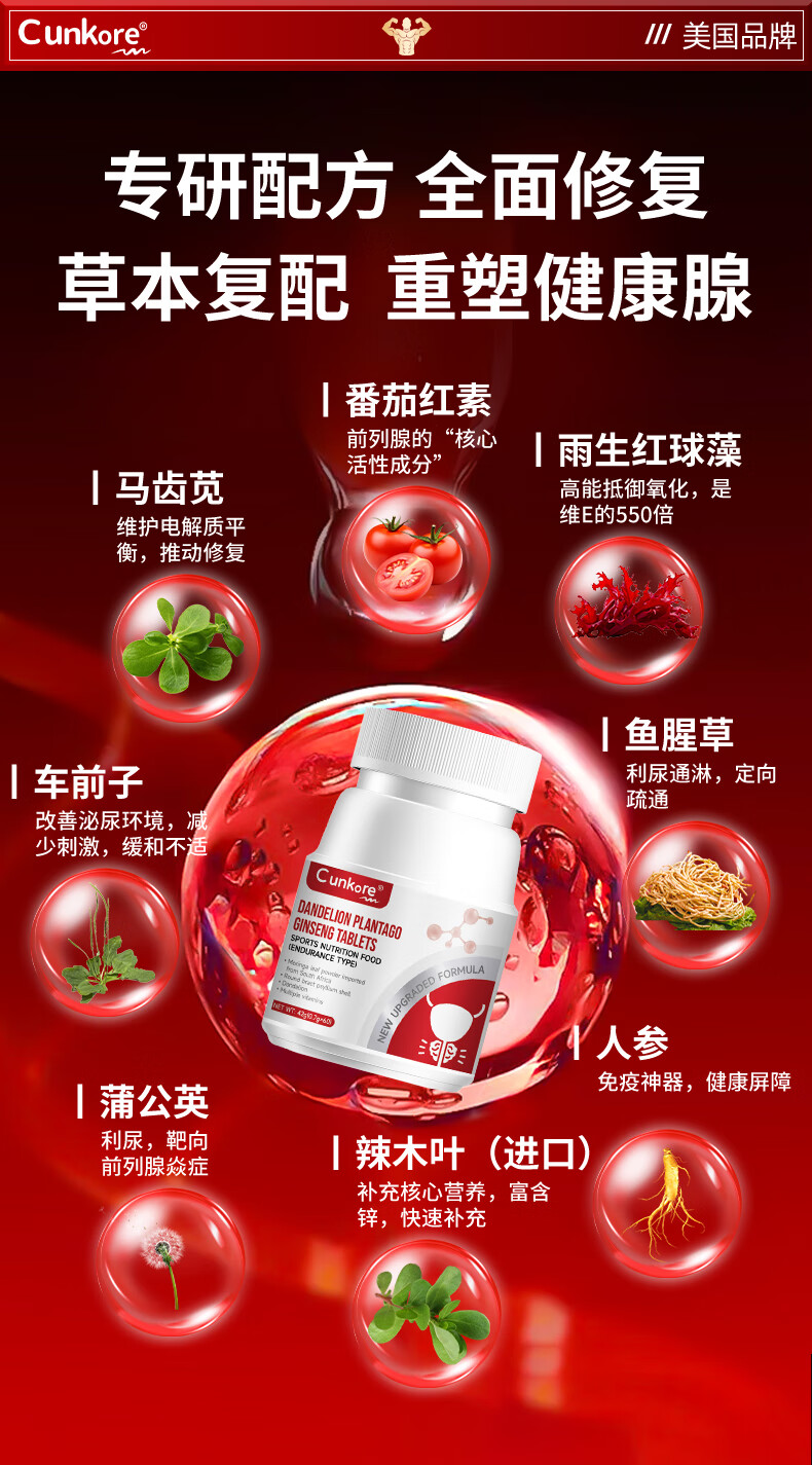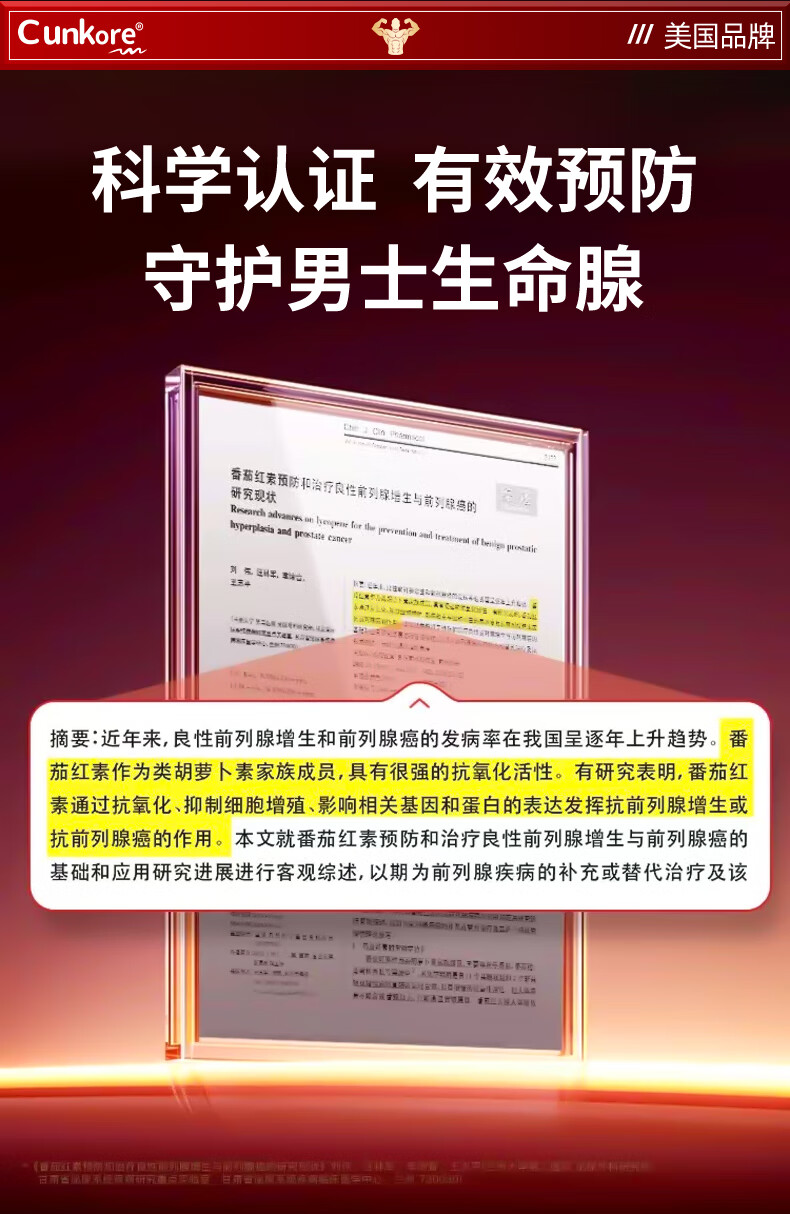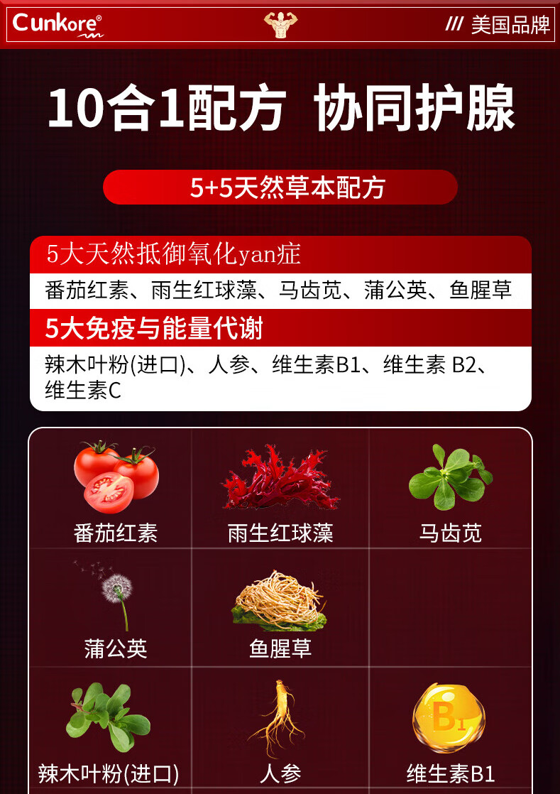 CUNKORE番茄红素男士补肾备孕前列腺炎增生肥大尿频尿急尿不尽保健品 1瓶