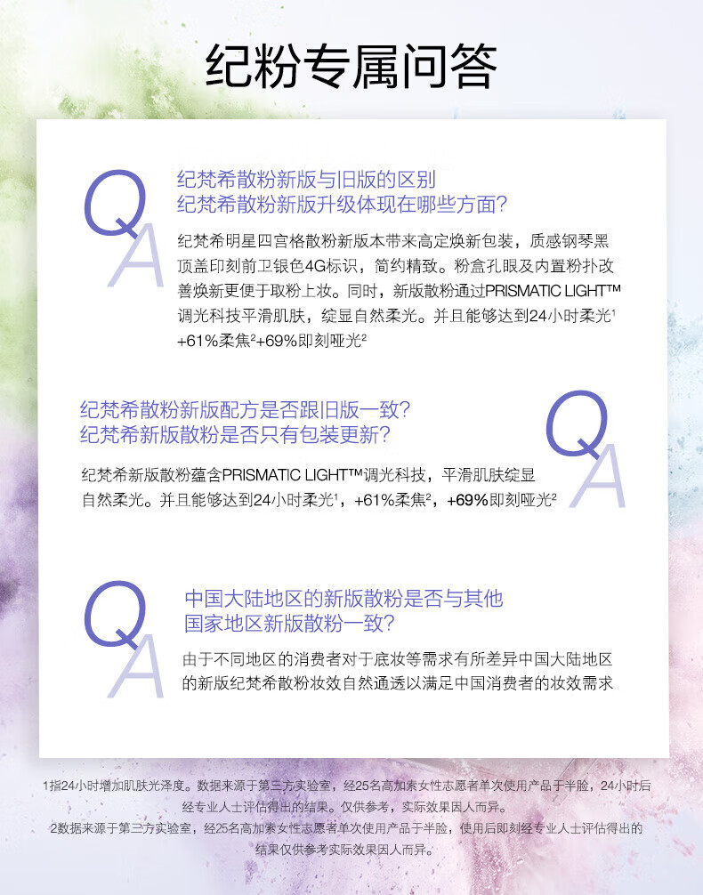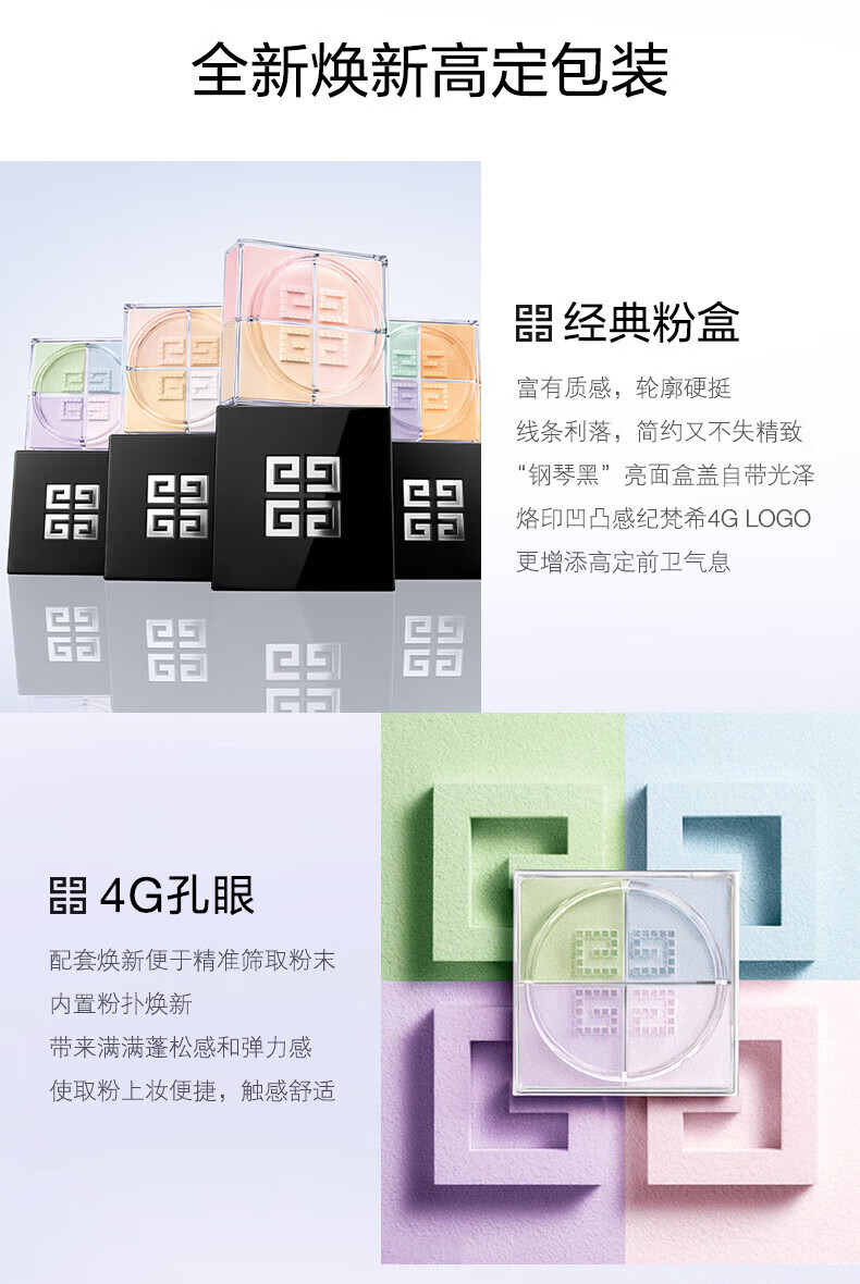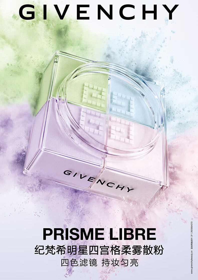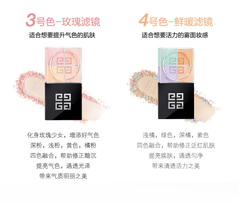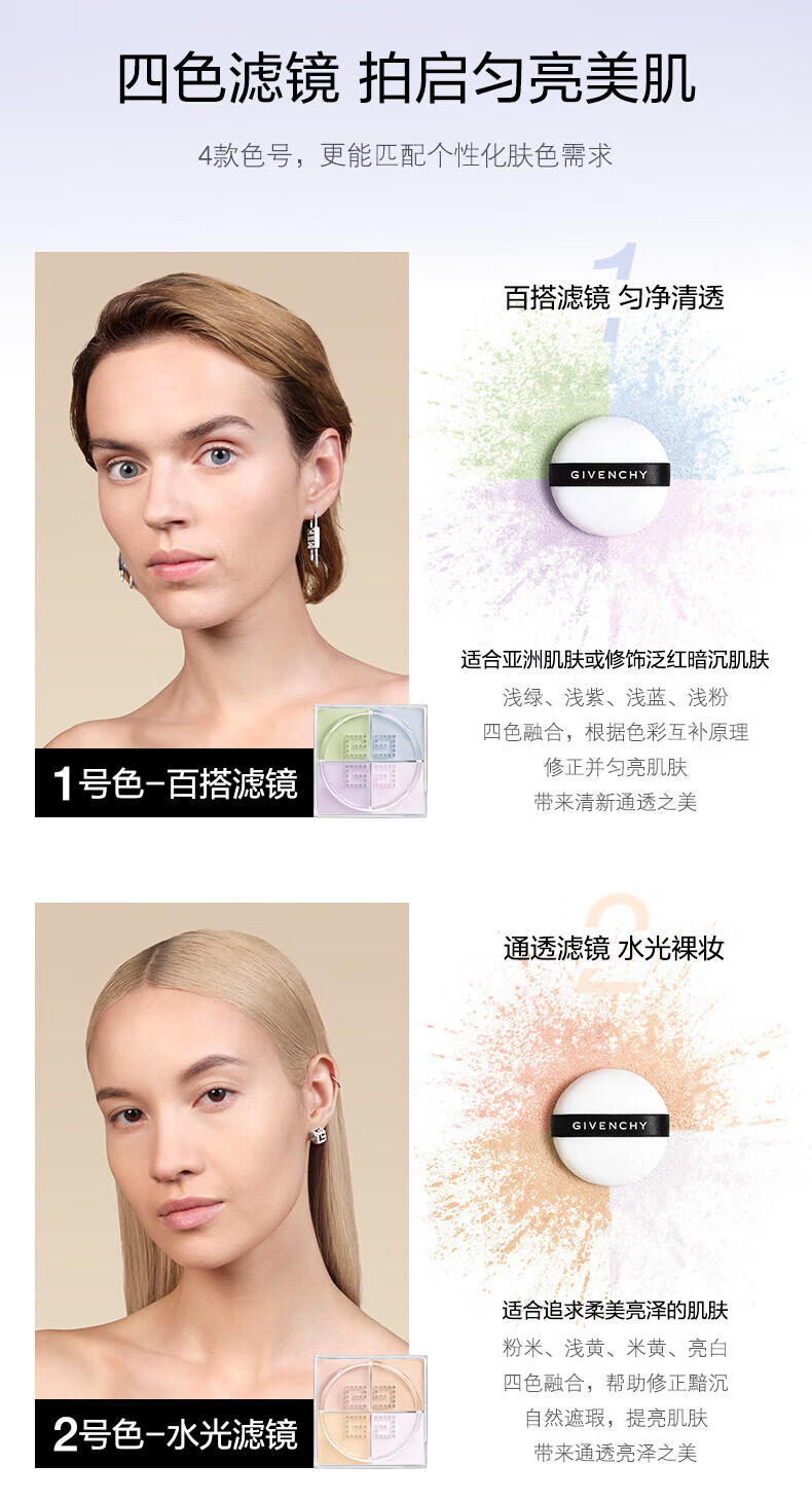 纪梵希(Givenchy)明星四宫格柔雾散粉1号哑光定妆蜜粉 12g生日礼物赠SUQQU洁面