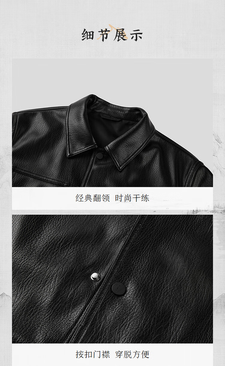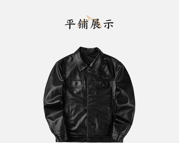 海澜之家(HLA)PU皮夹克男装春秋季山不在高系列翻领干练休闲时尚上衣服男士外套 黑色花纹2D L 175建议69-75kg