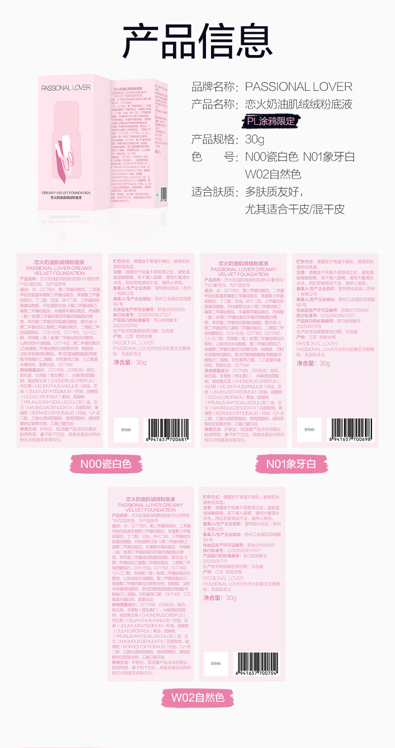 恋火(Passional Lover)PL看不见粉底液3.0象牙白30g 遮瑕持久不脱妆气垫bb霜水光粉底霜