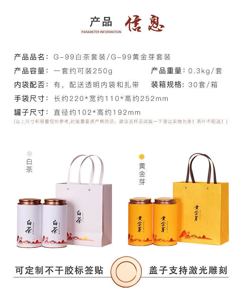 百春宝白茶包装盒空礼盒茶叶罐纸罐半斤装黄金芽圆筒茶叶密封罐空罐定制 G-99白茶套装12.5 G-99白茶套装1