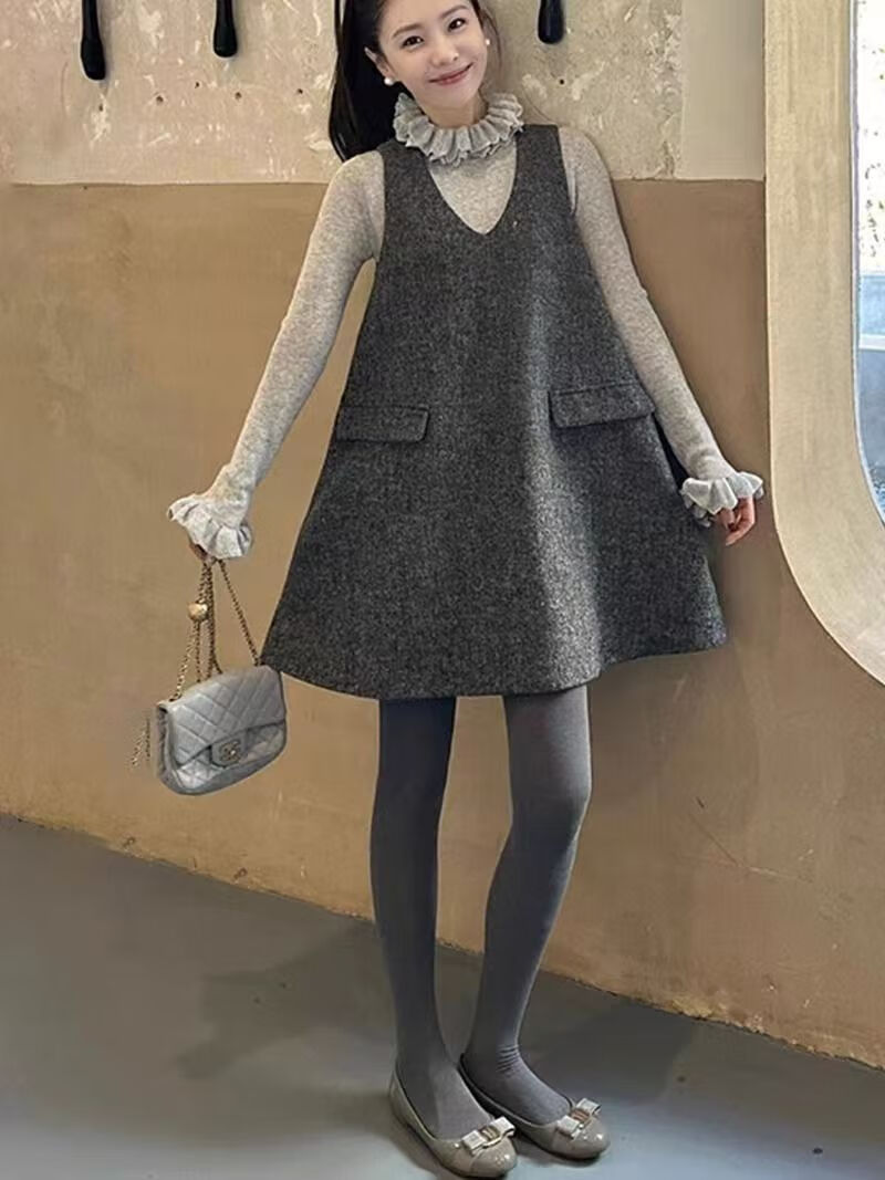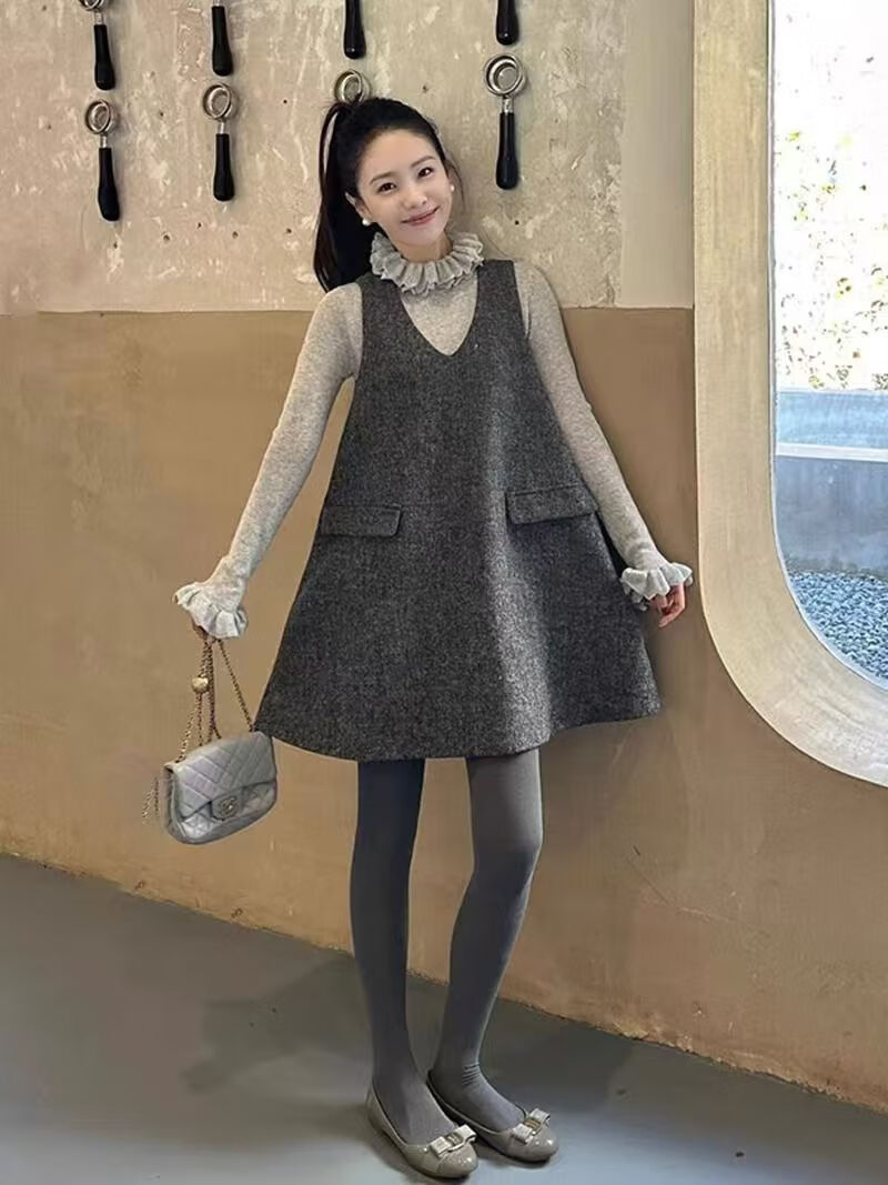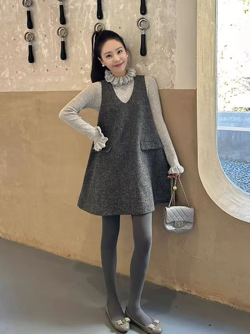 美安嘉减龄冬装灰色毛呢背心裙女气质洋气网红背带裙简约通勤风 灰色背心裙 S