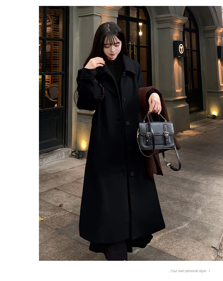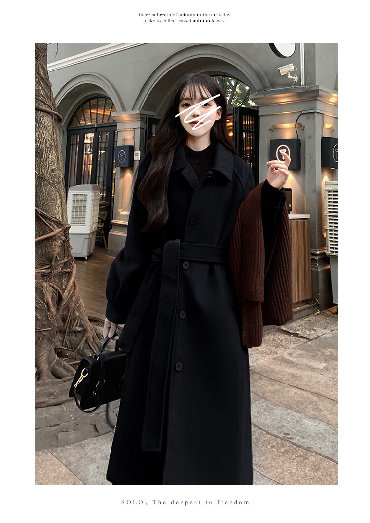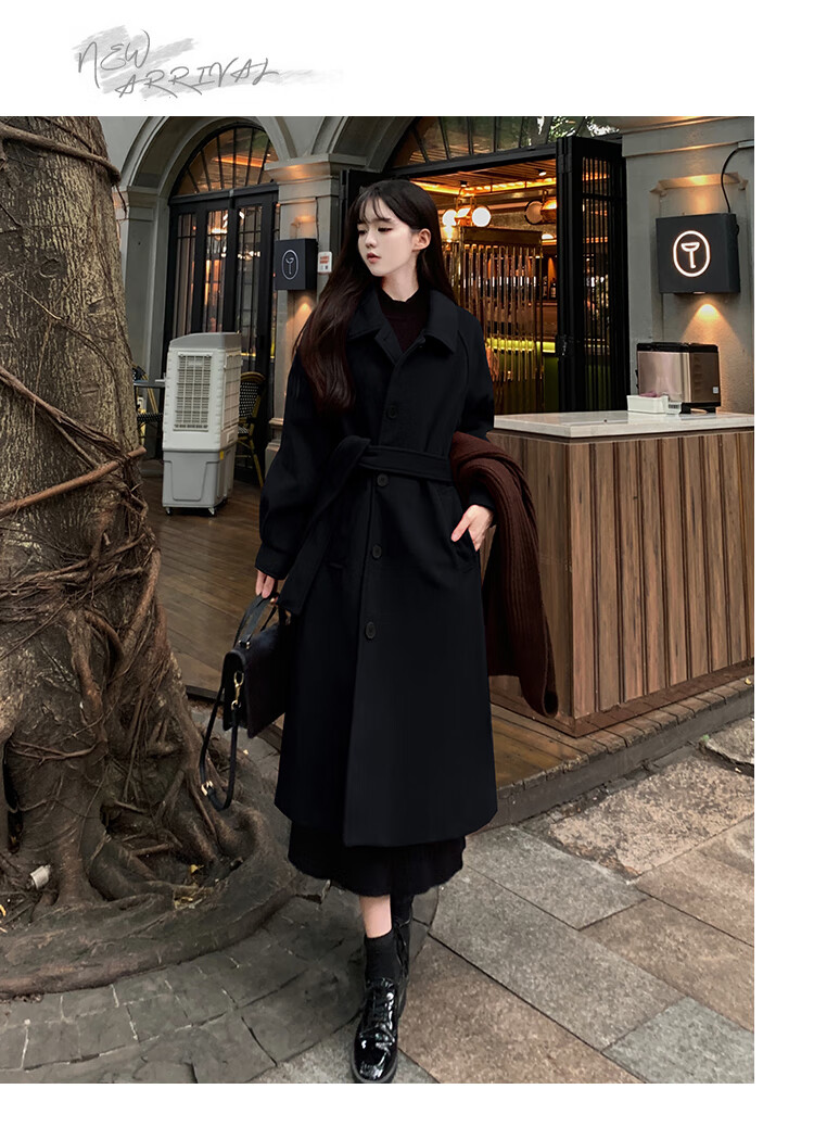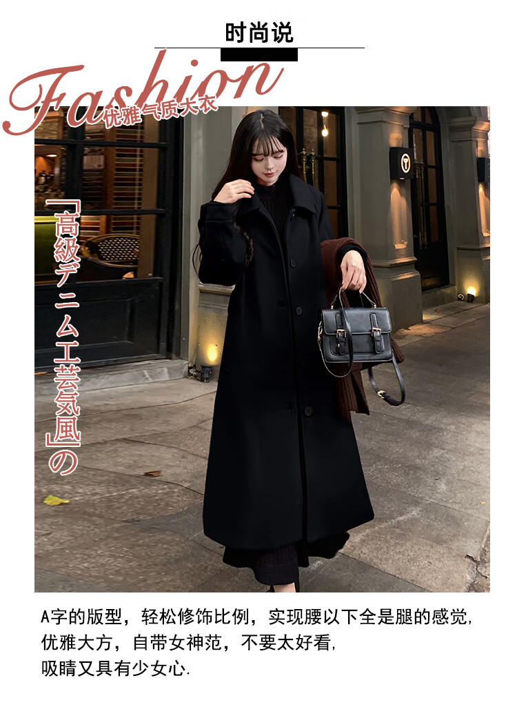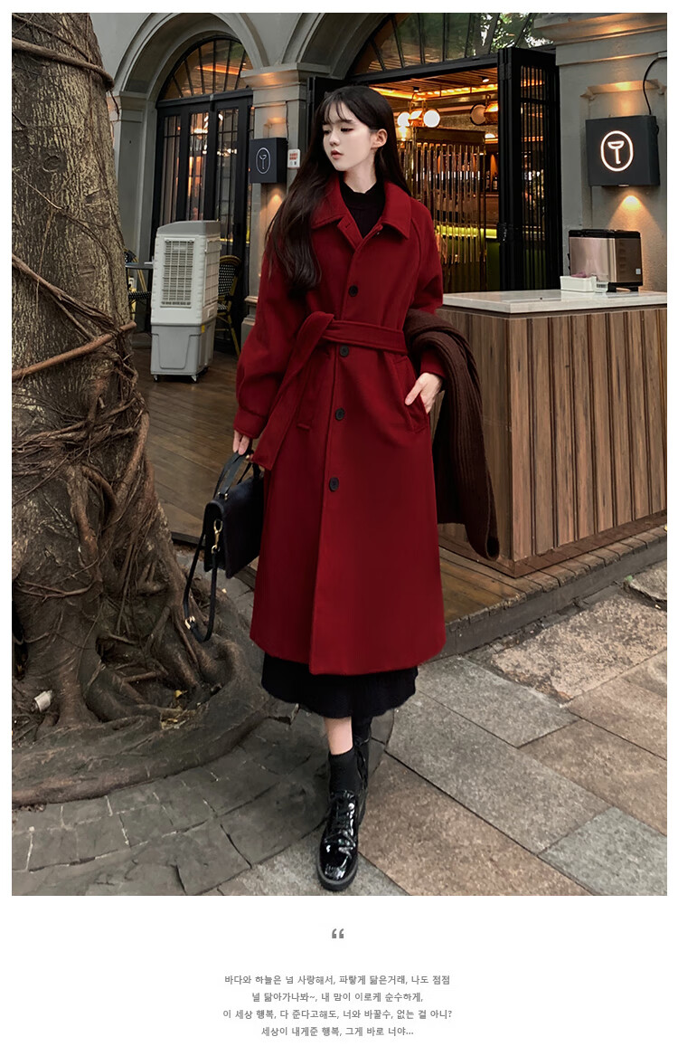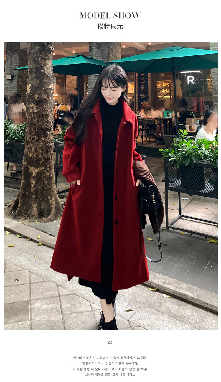 啄木鸟秋冬红色双面仿羊绒大衣女中长款加厚毛呢外套宽松过膝呢子大衣 酒红色 M 【90-120斤】