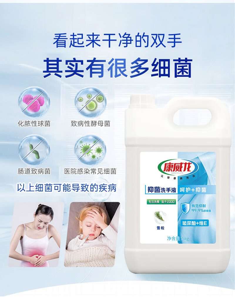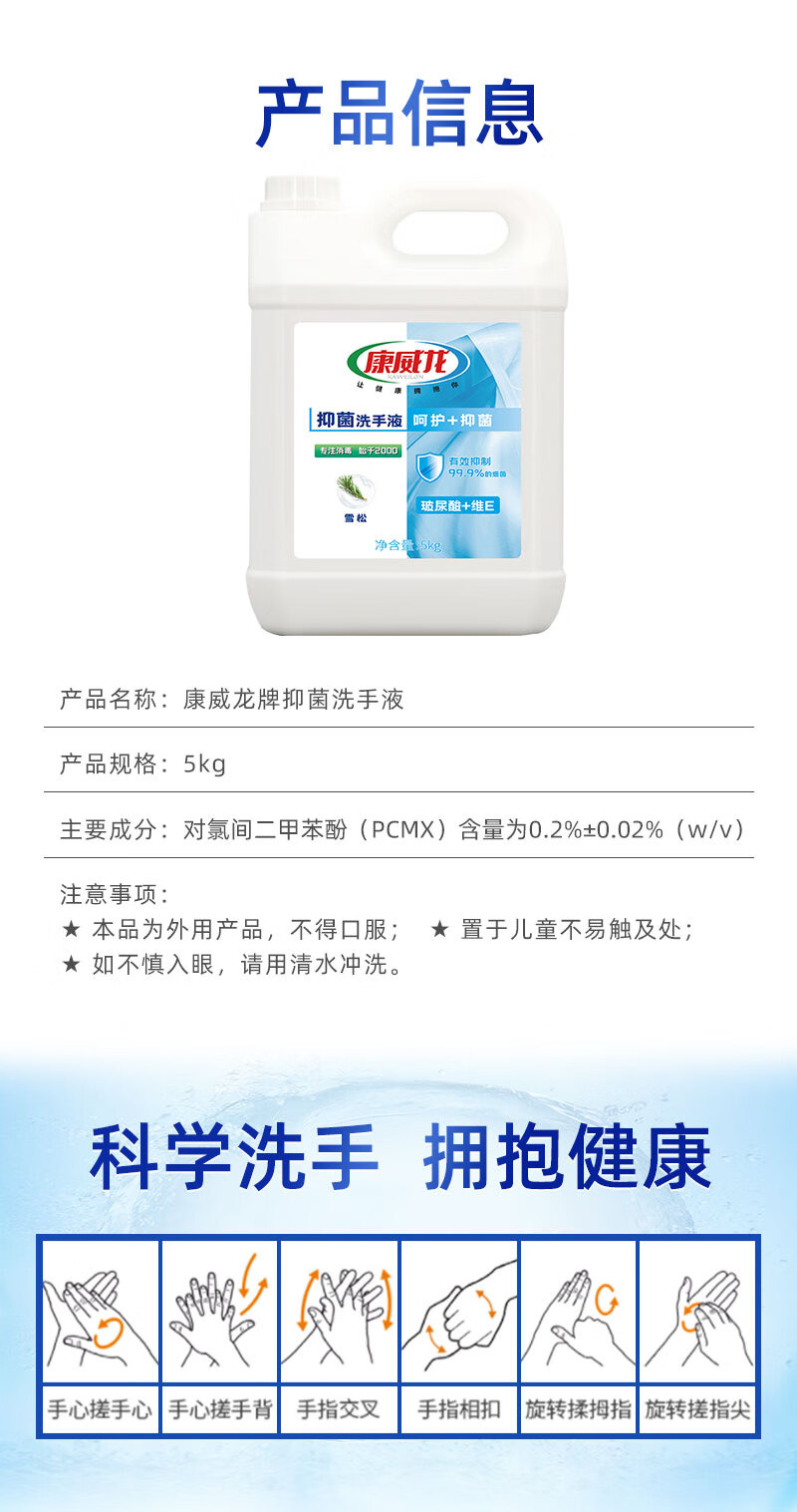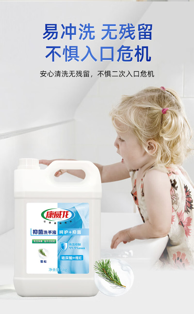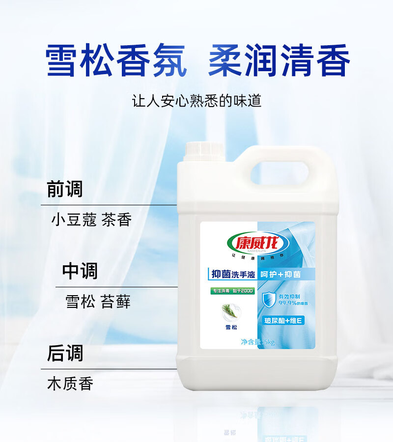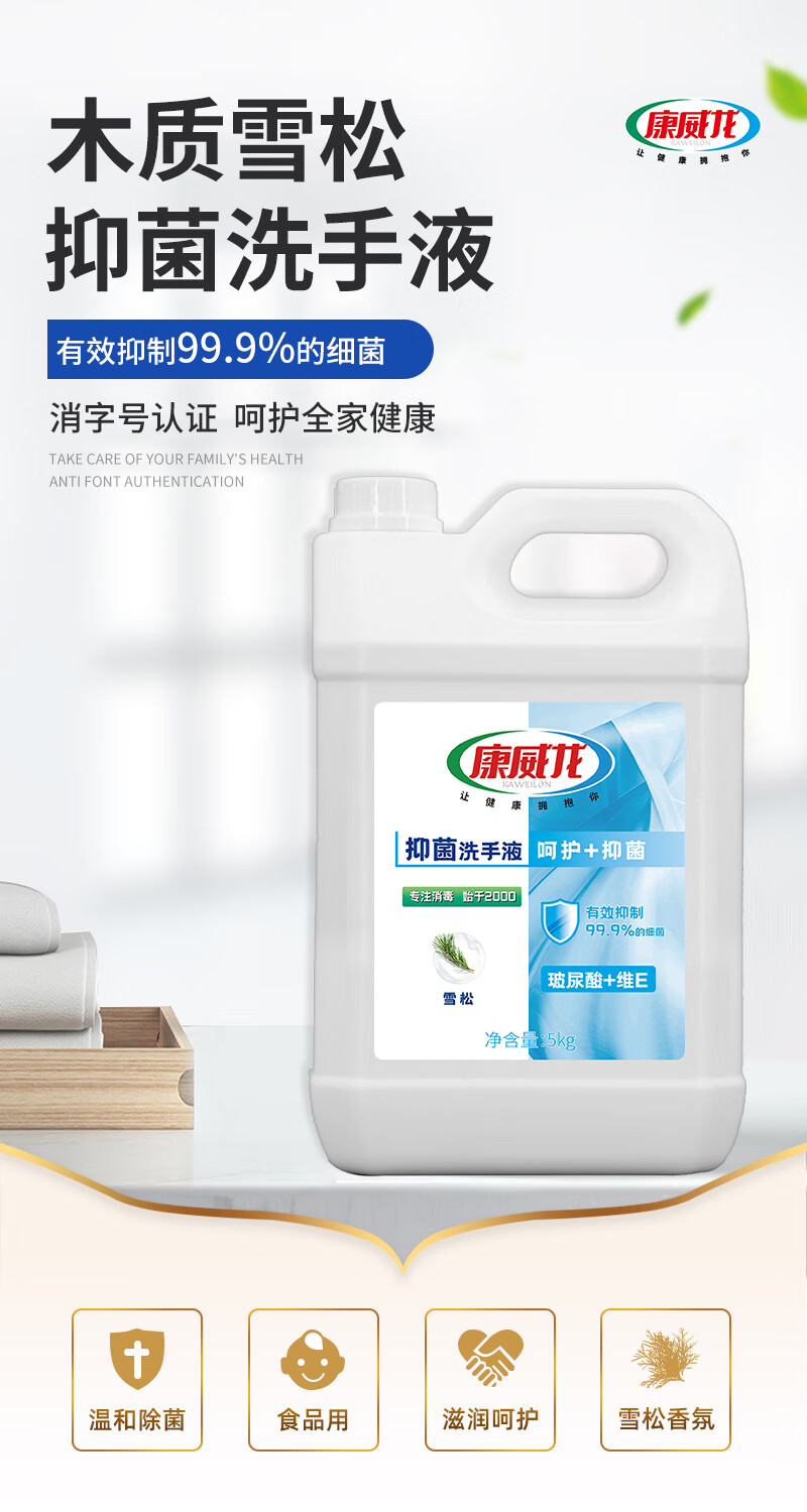 康威龙雪松洗手液12小时长效抑菌除菌商用大桶补充装母婴儿童适用无香精