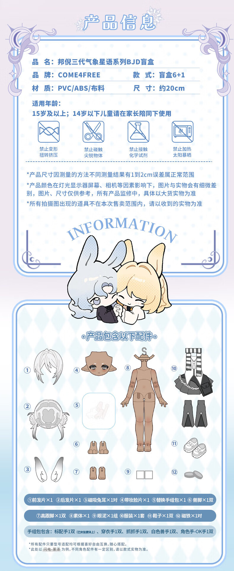 正版邦倪兔三代气象星语BJD盲盒12分可动人偶手办潮玩摆件礼物 气象星语BJD-全新端盒6个不重复
