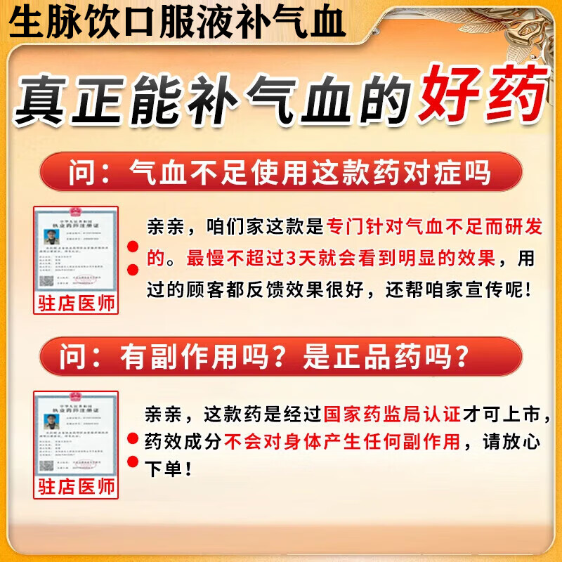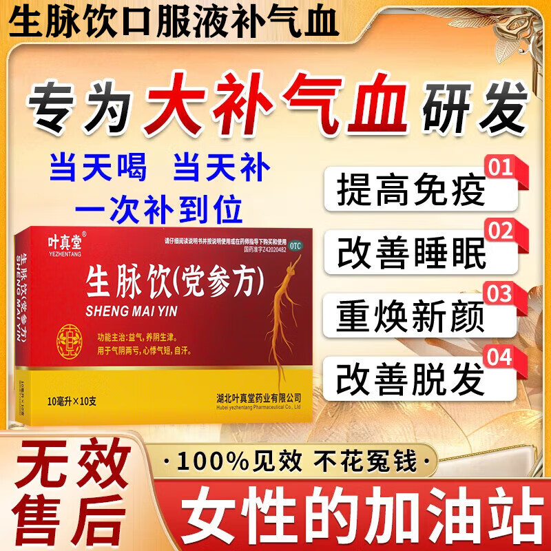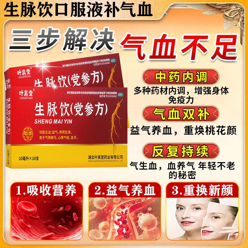生脉饮(党参方)口服液补气血女补气养血气血不足最好的药提高免疫力睡眠养血脱发掉发产后补气血营养品出汗多 3盒【免疫低失眠差掉头发】 中药内调滋阴补气