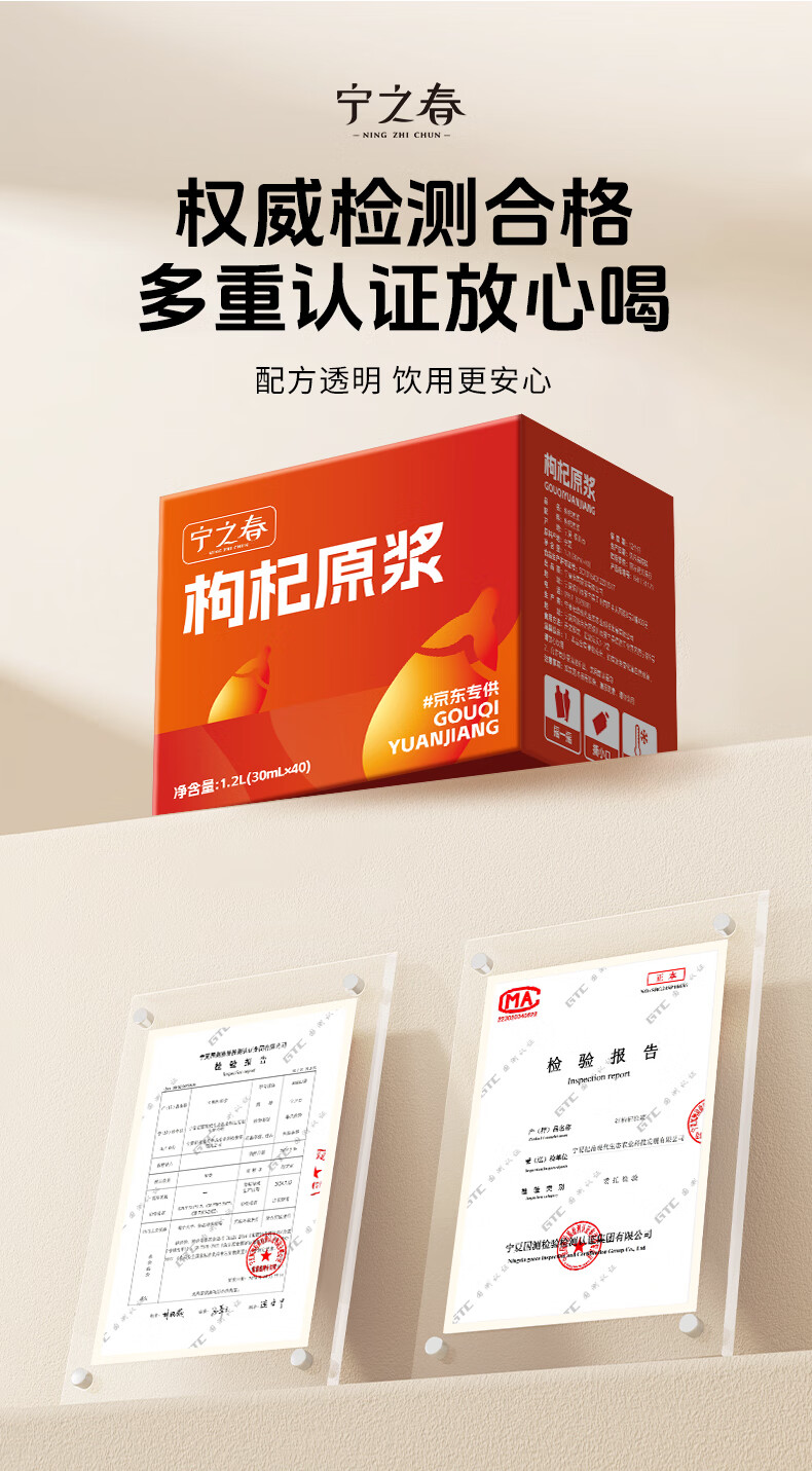 宁之春 枸杞原浆1200ml礼品盒 宁夏枸杞鲜果鲜榨不添加年货节送长辈礼物