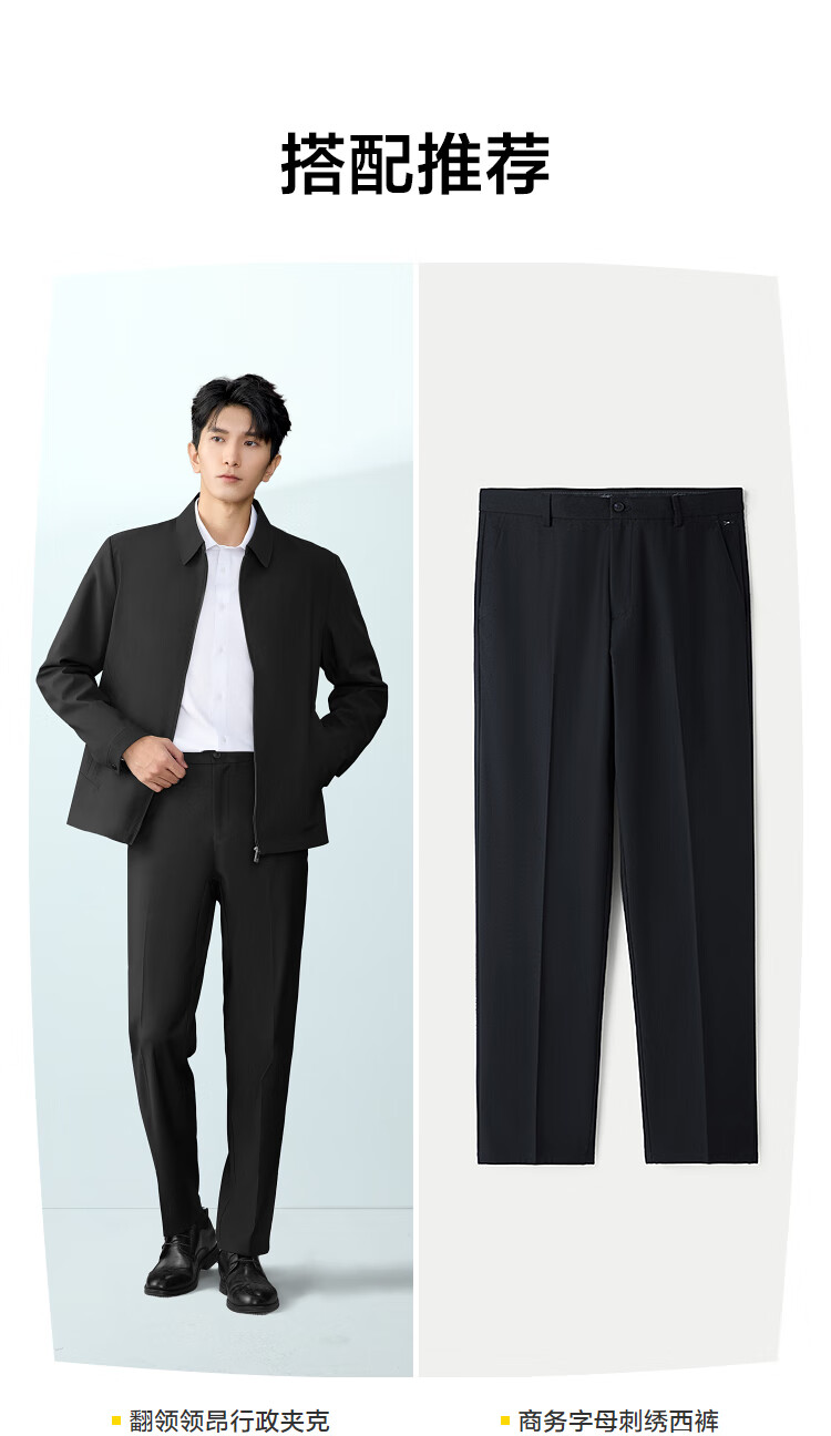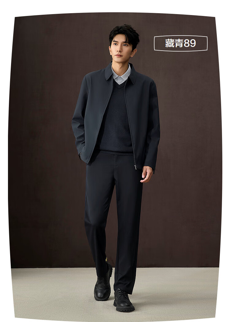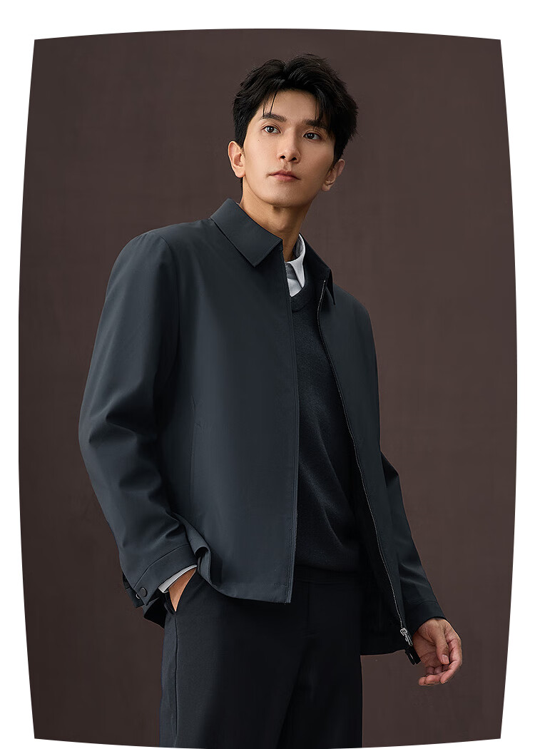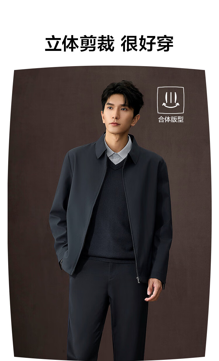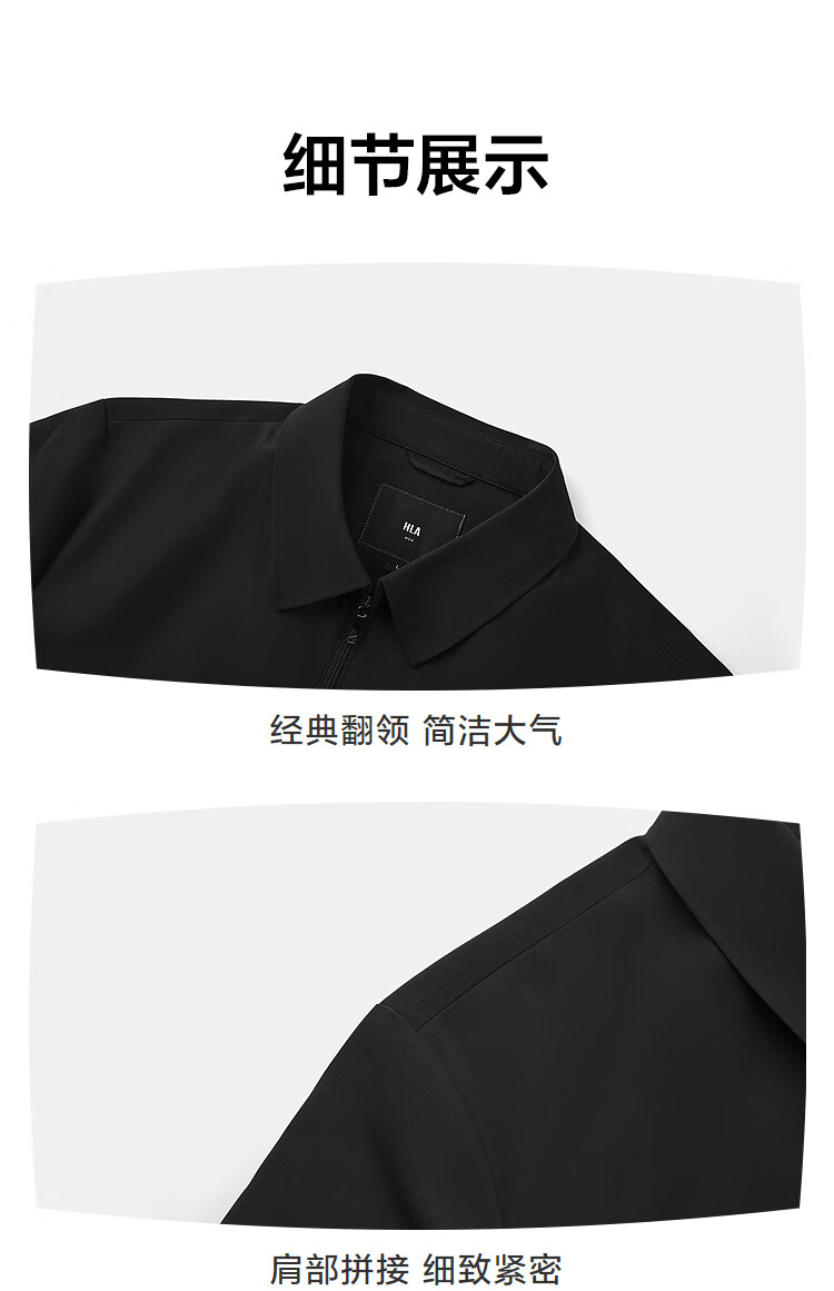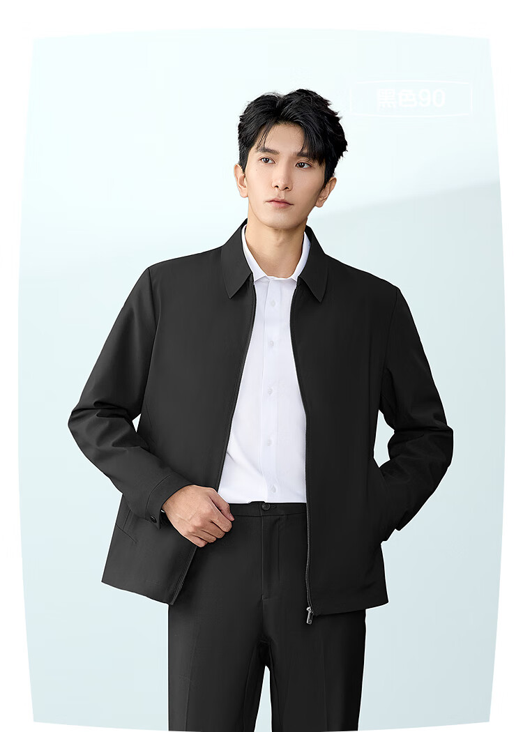 海澜之家(HLA)领昂行政夹克男装25春秋季轻商务翻领挺括有型保暖上衣服男士外套 黑色90 L /175推荐69~75kg