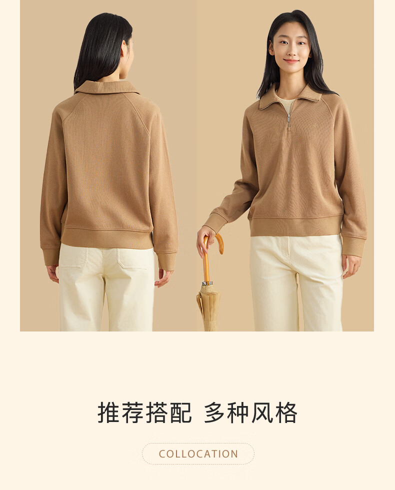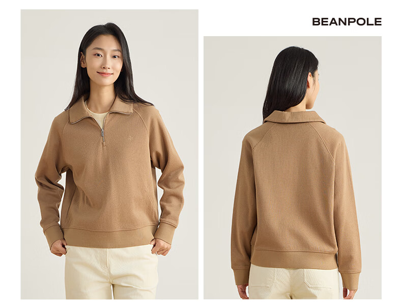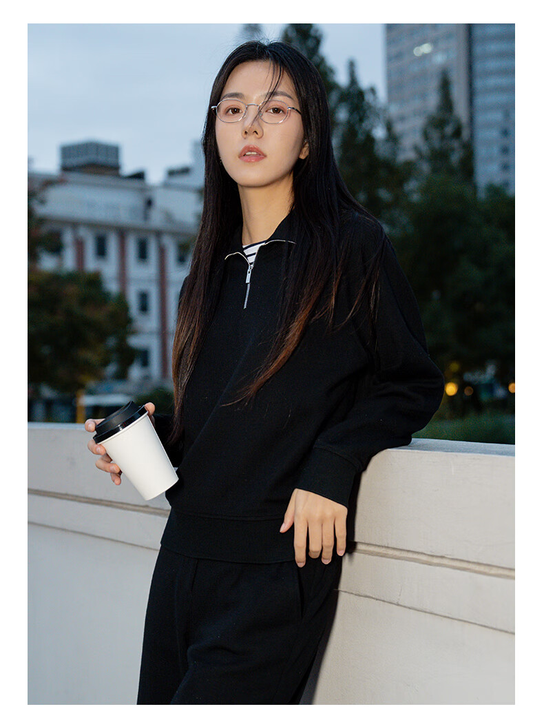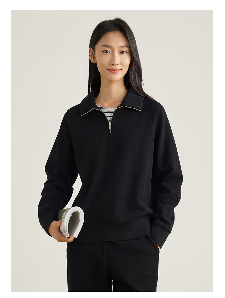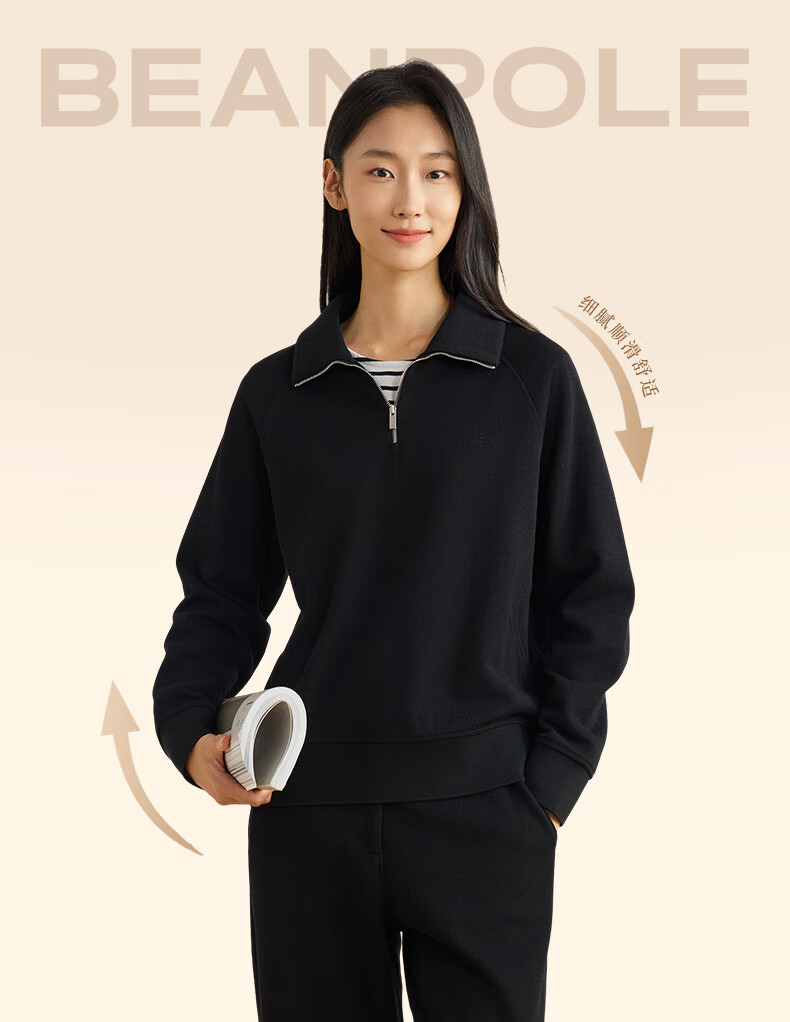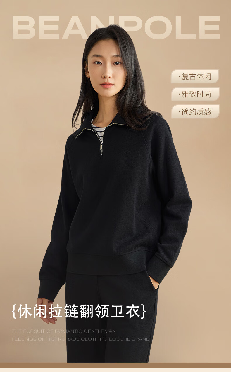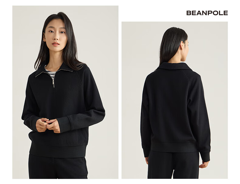 beanpole【新年礼物】【含绵羊毛】女士美拉德时尚翻领松弛感休闲拉链卫衣 黑色 M 165/88A