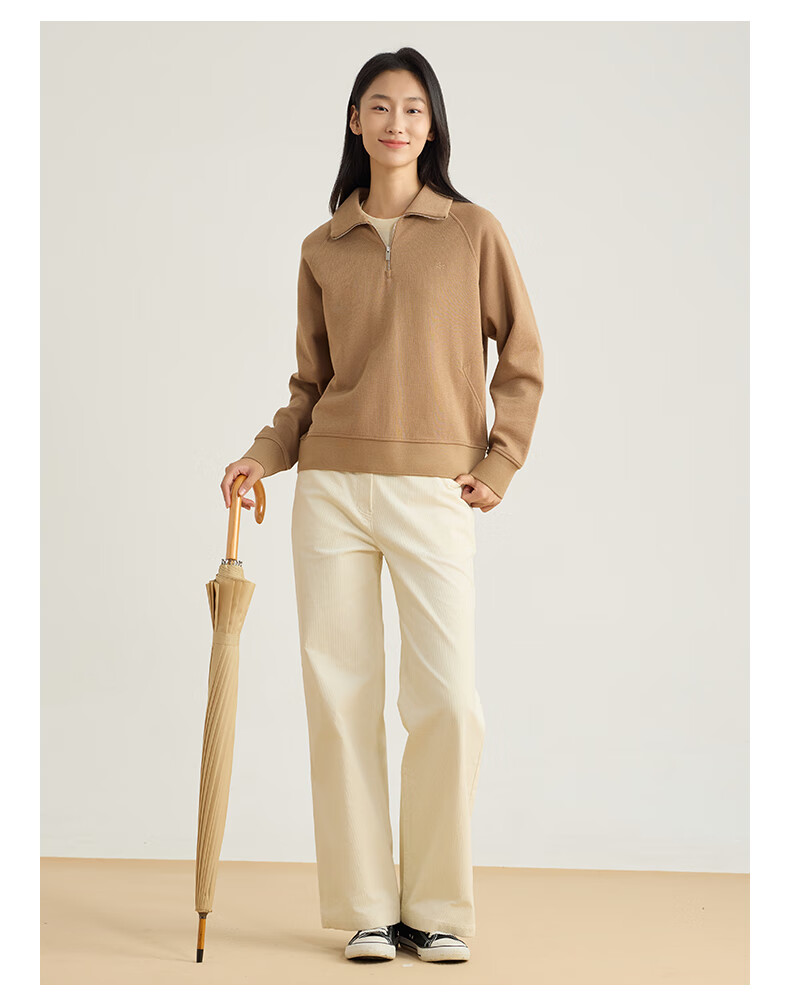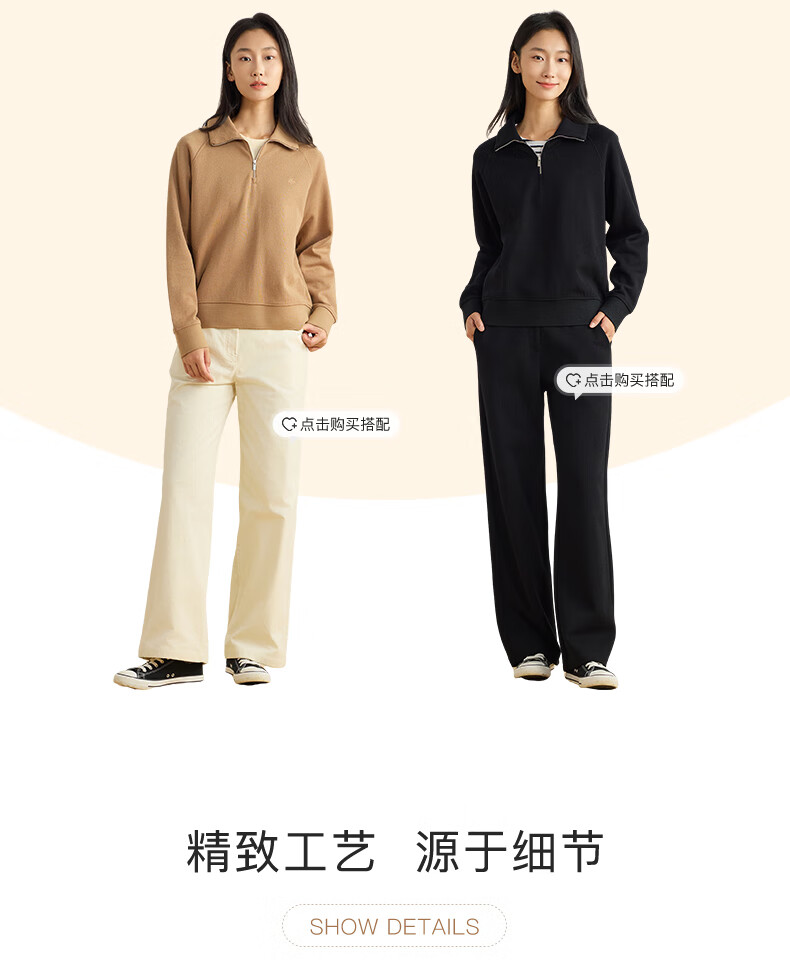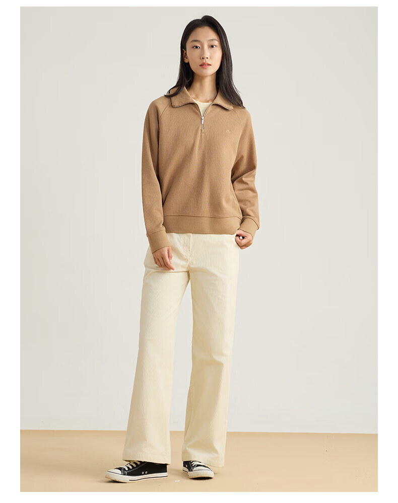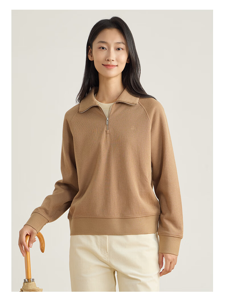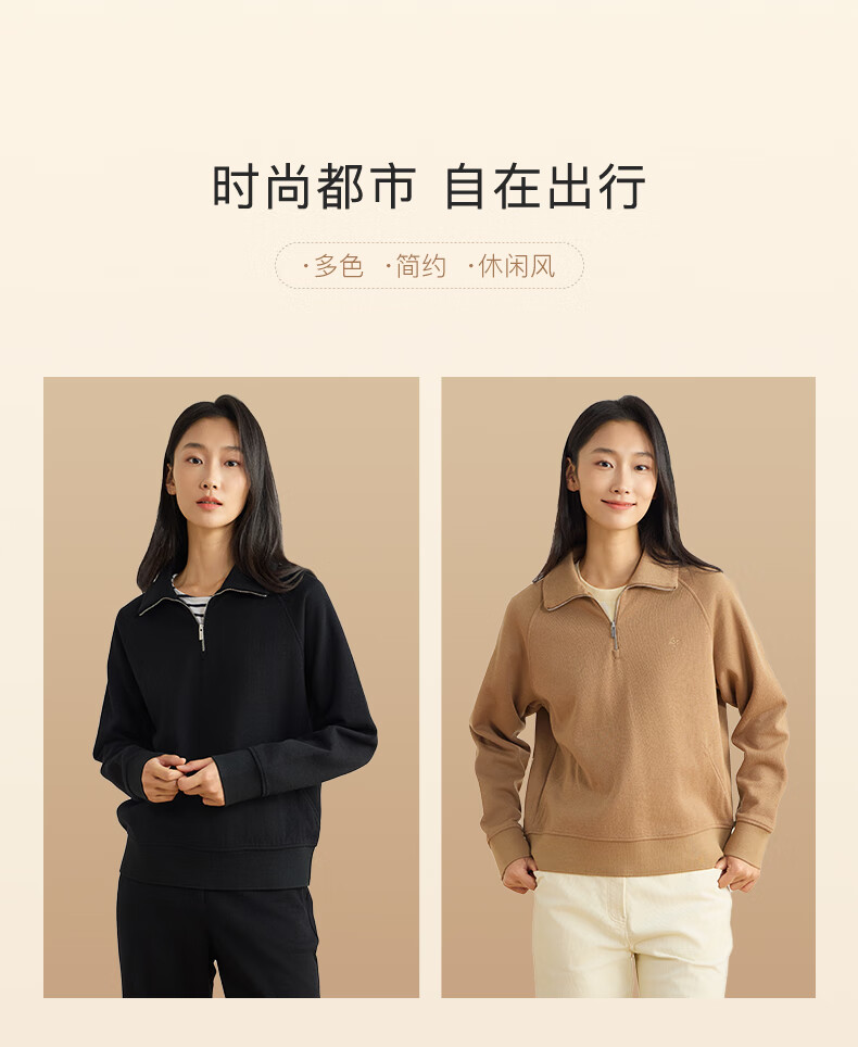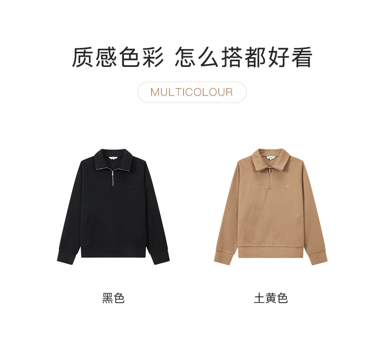 beanpole【新年礼物】【含绵羊毛】女士美拉德时尚翻领松弛感休闲拉链卫衣 黑色 M 165/88A