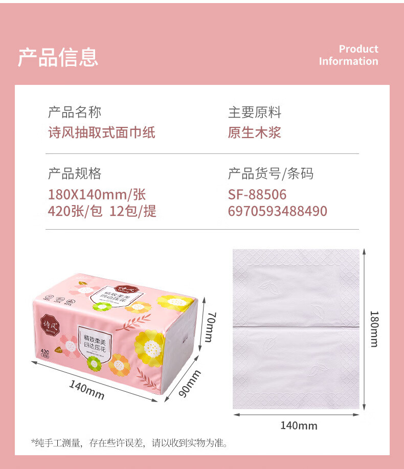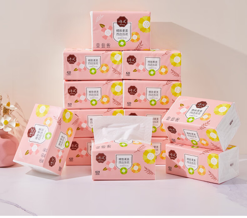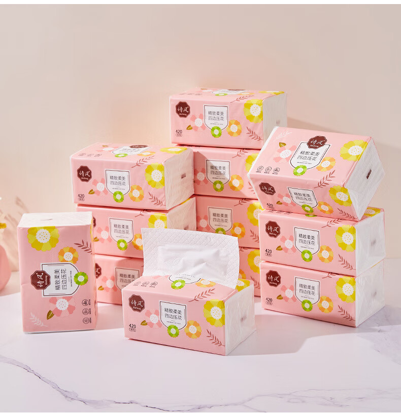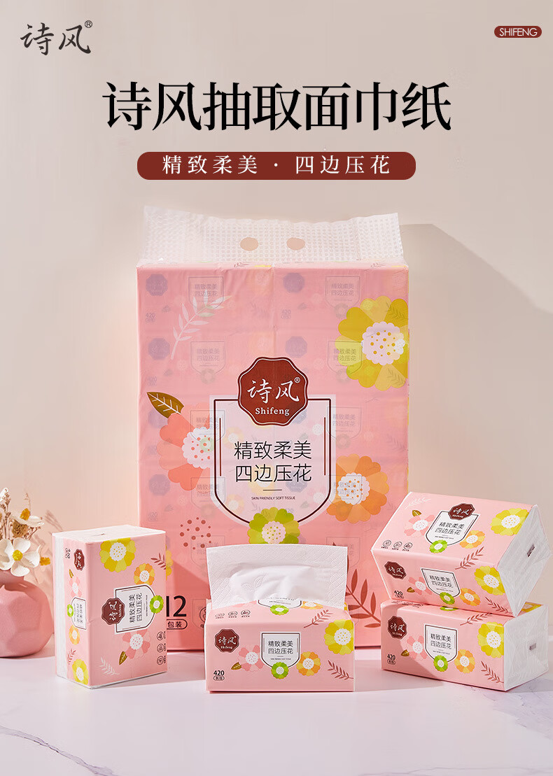 诗风抽纸纸巾抽取式柔软420张12包大包实惠装可湿水加厚面巾纸 1层 1g*1包 默认