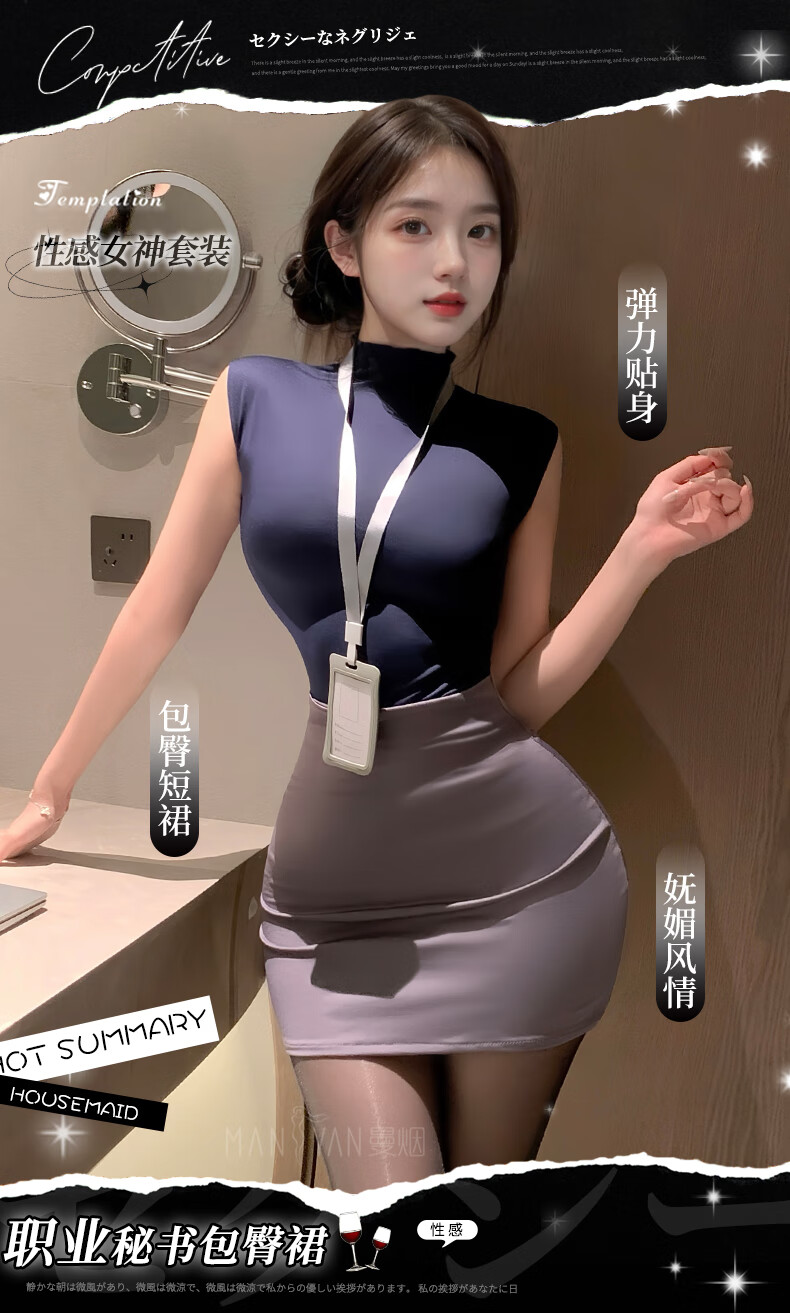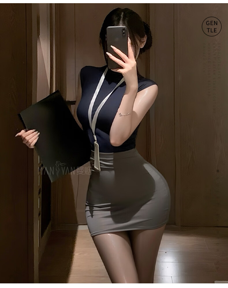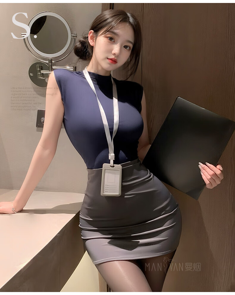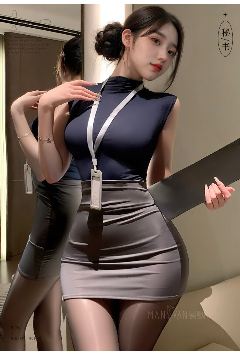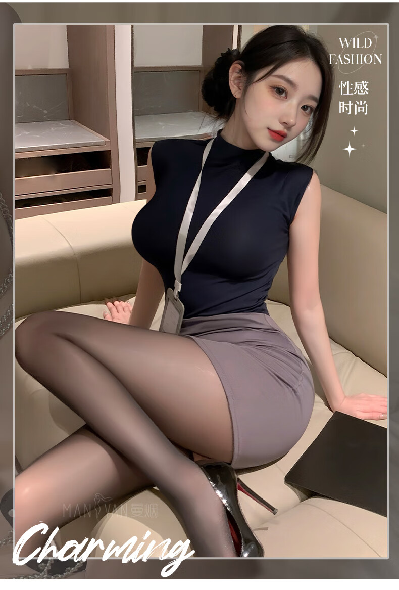 曼烟情趣内衣用品秘书包臀裙丁字裤sm羞耻夫妻刺激调情制服 深灰 0524