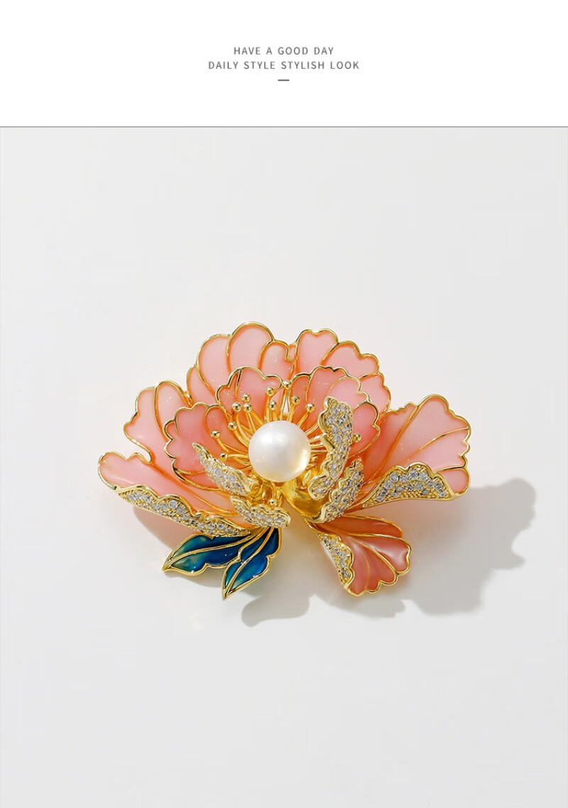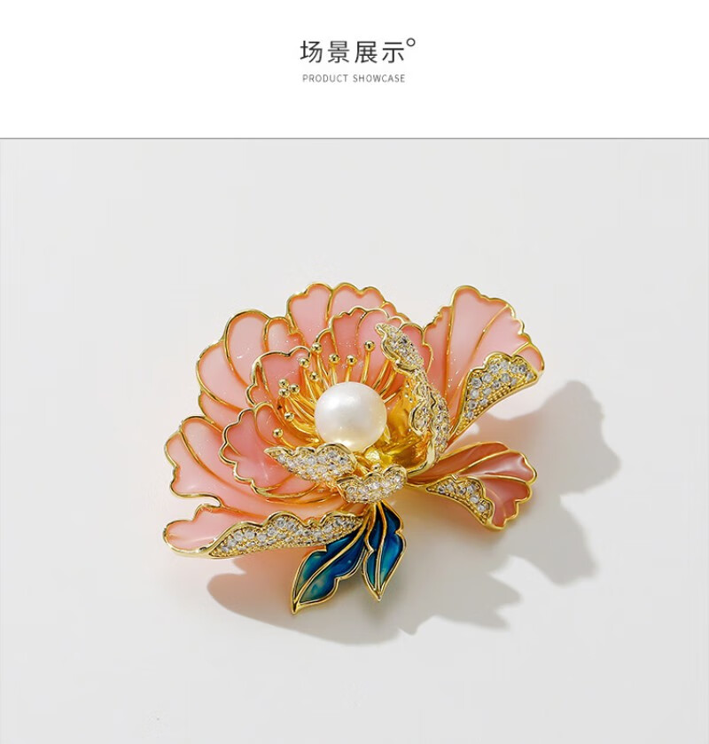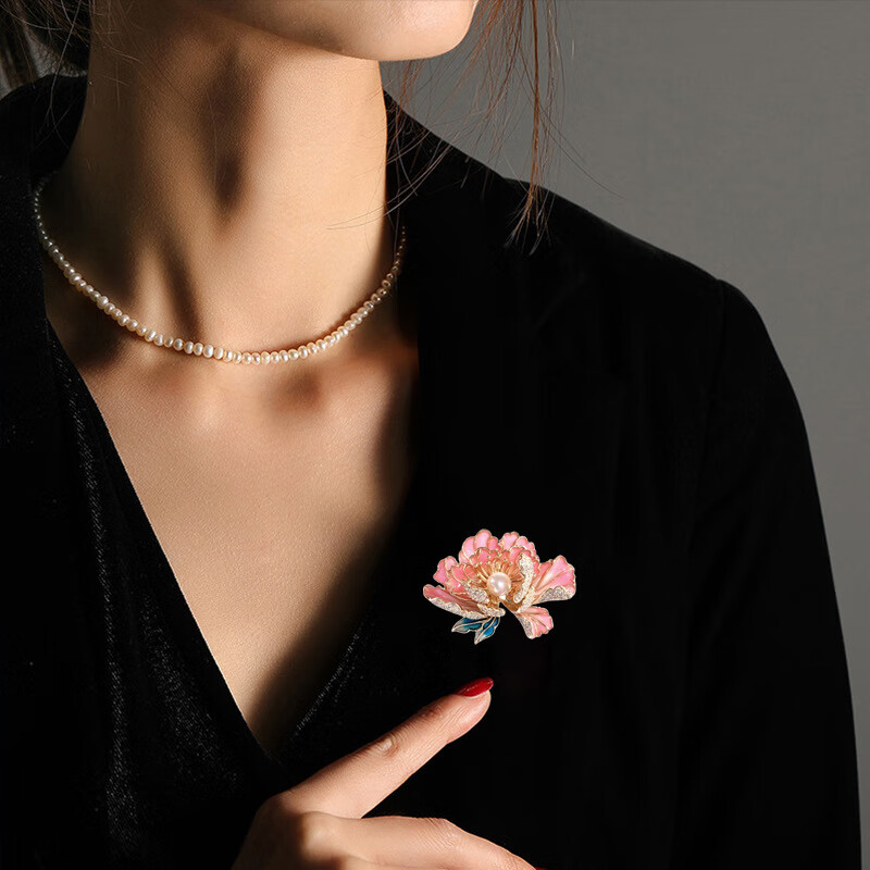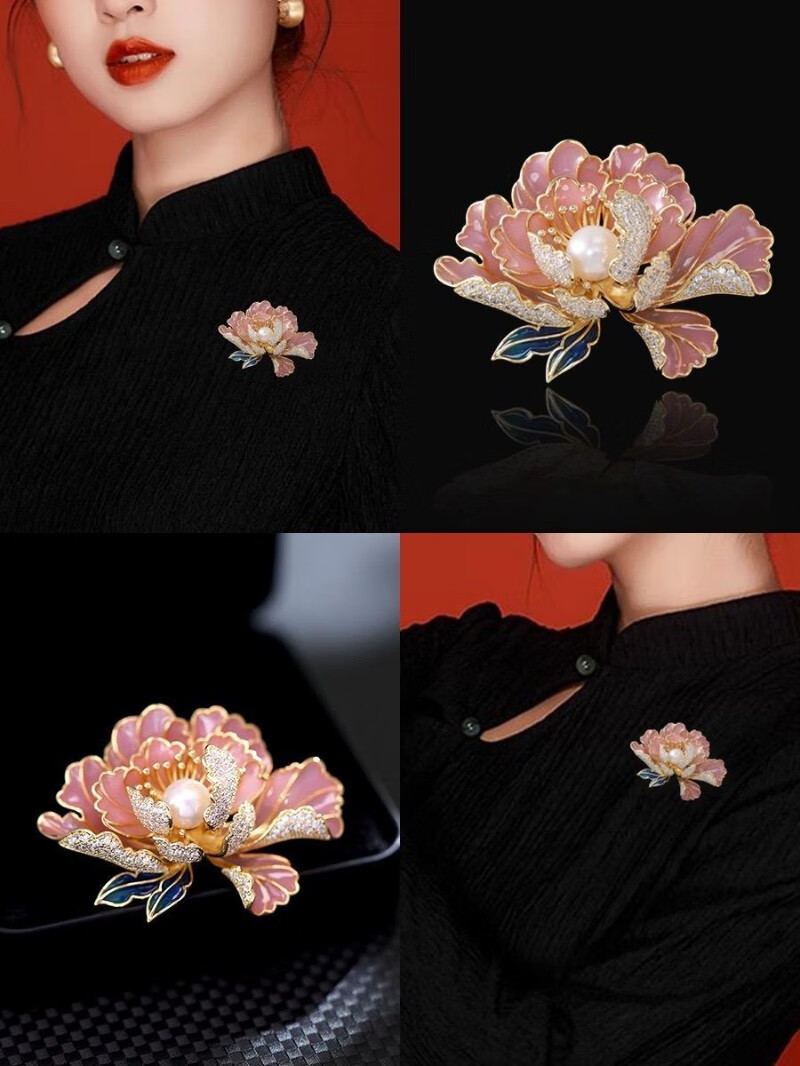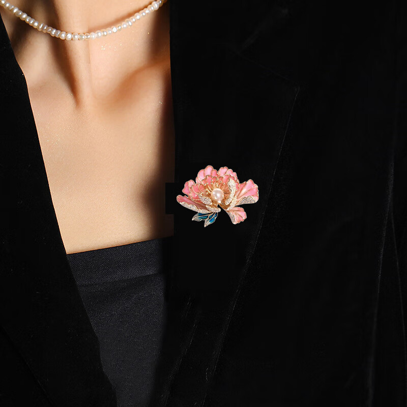 牡丹花胸针高档女精致中国风珍珠胸花气质花朵旗袍汉服别针配饰QC 粉色宫廷牡丹