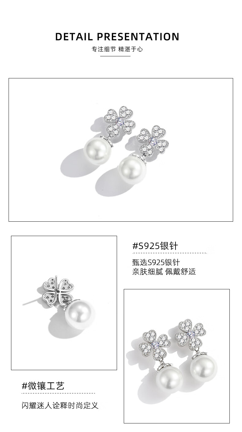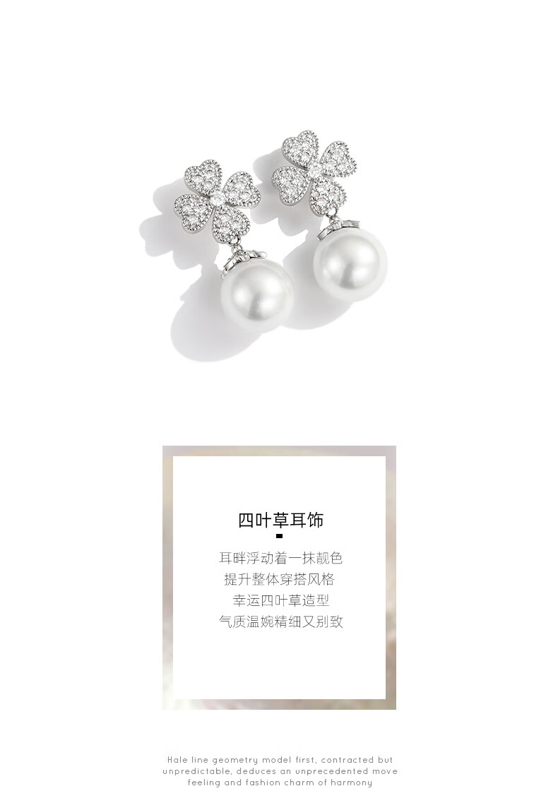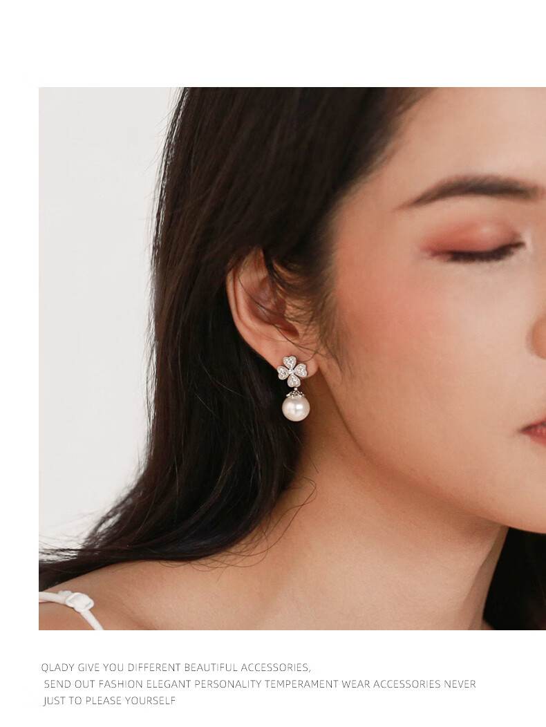 Qlady四叶草仿珍珠耳环女气质高级感银针耳坠轻奢耳钉耳饰生日新年礼物