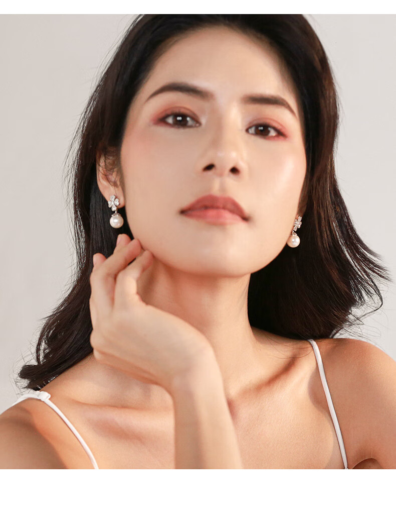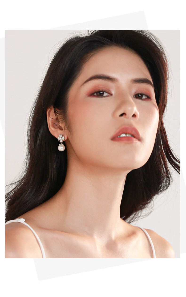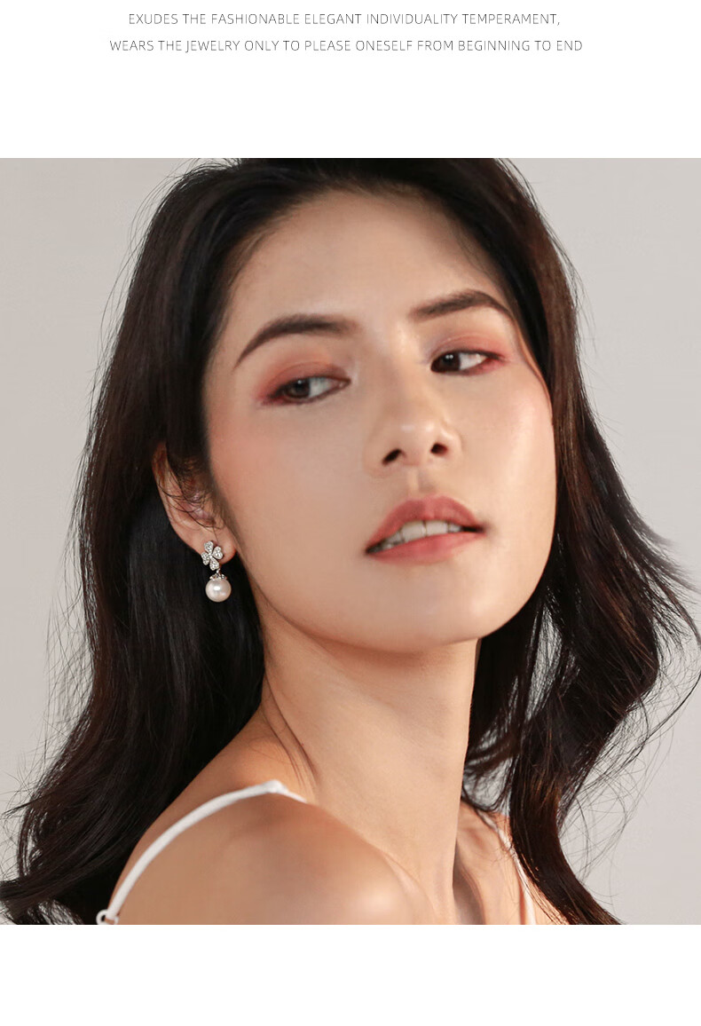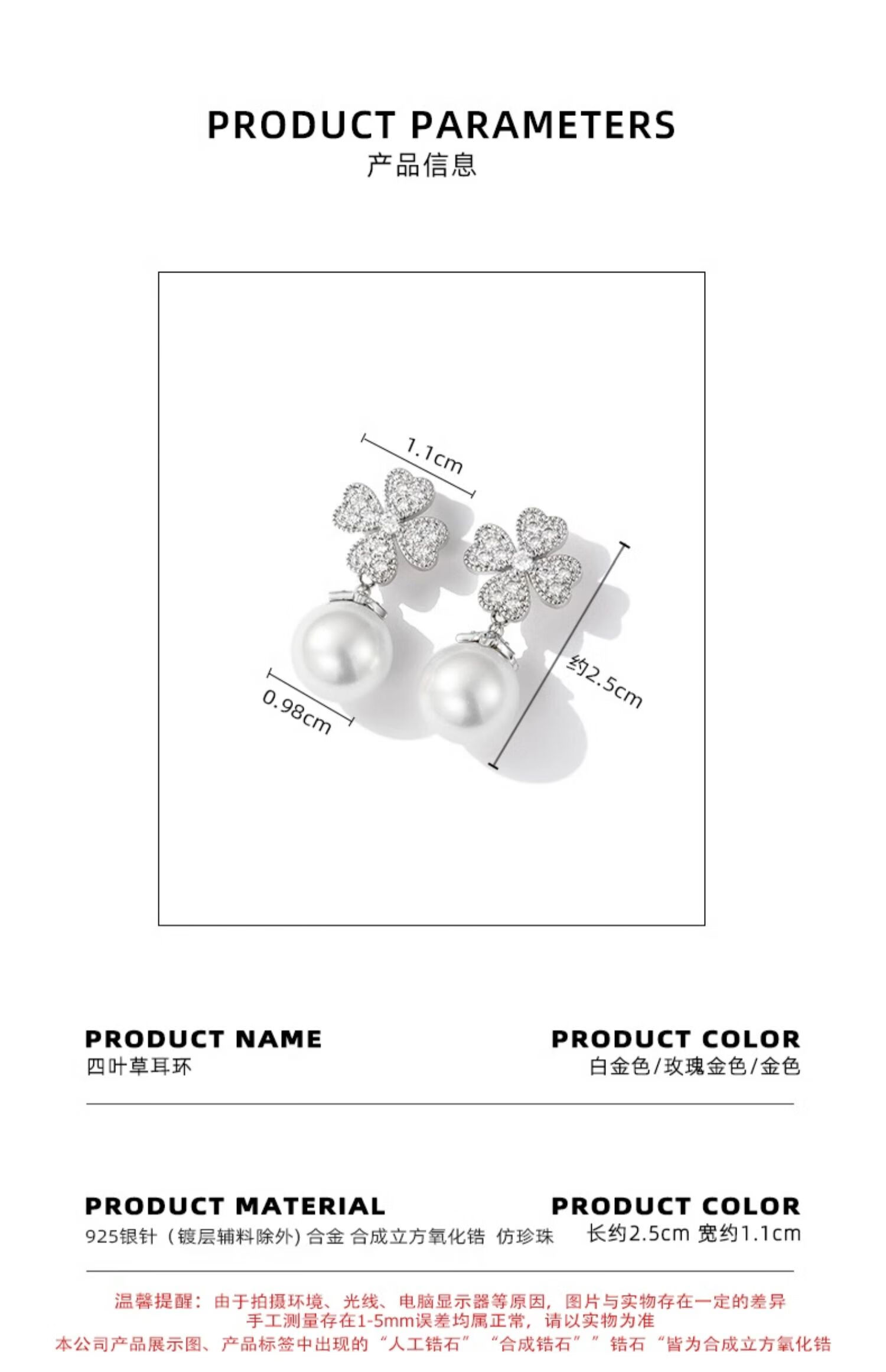 Qlady四叶草仿珍珠耳环女气质高级感银针耳坠轻奢耳钉耳饰生日新年礼物
