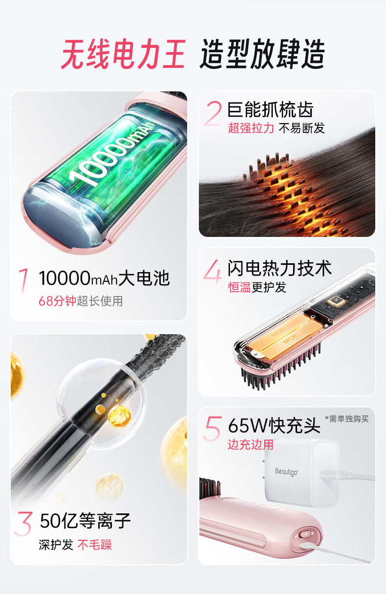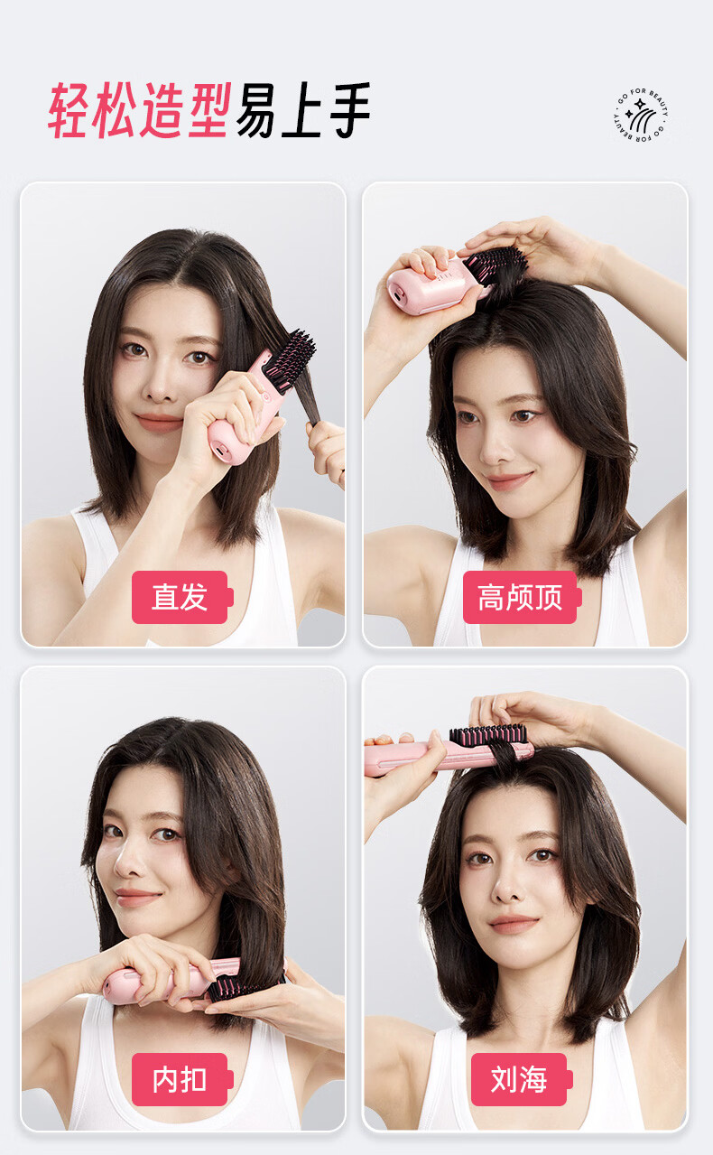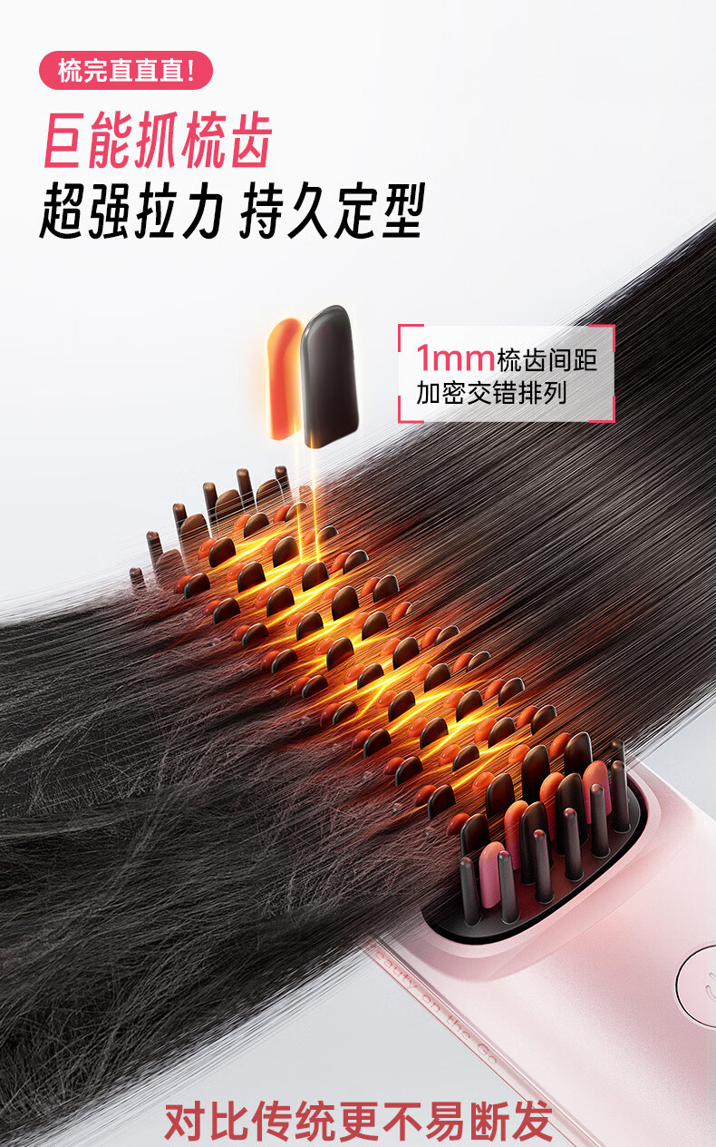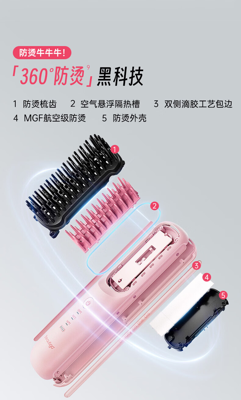 beautigo直发梳负离子护发 拉直夹板内扣电梳子蓬松神器便携造型美发梳直板夹生日跨年礼物 护发精油