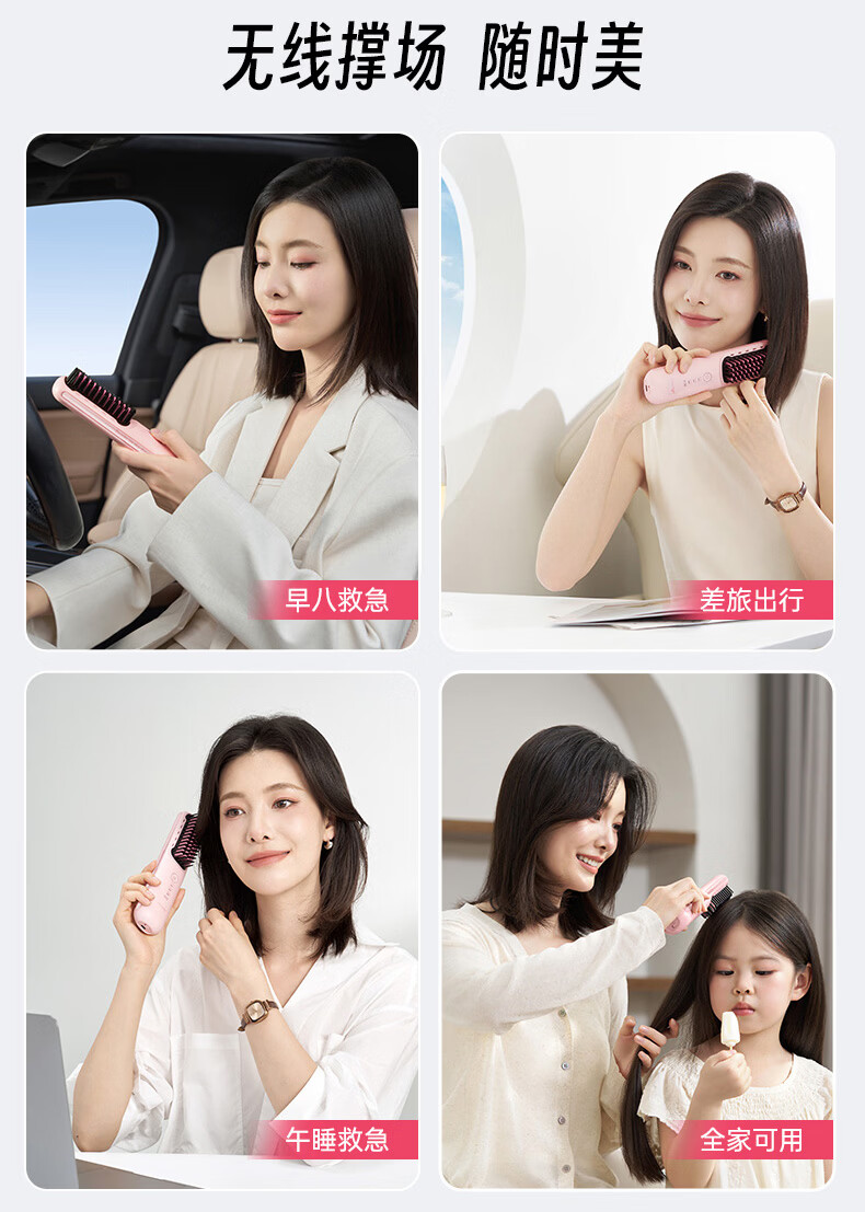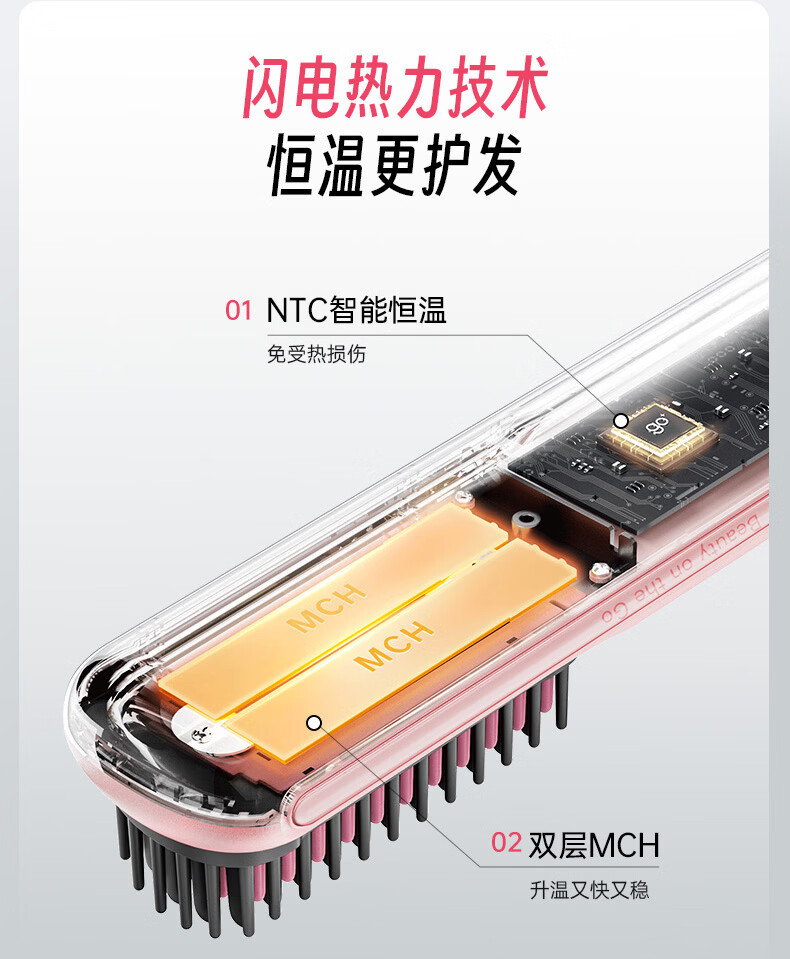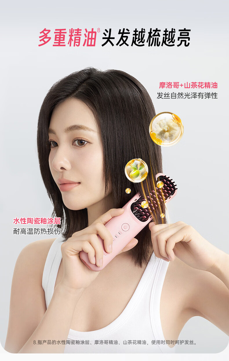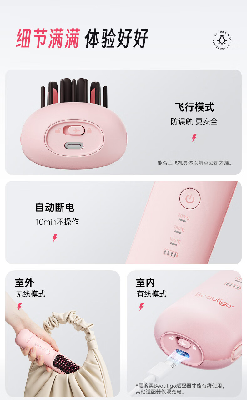 beautigo直发梳负离子护发 拉直夹板内扣电梳子蓬松神器便携造型美发梳直板夹生日跨年礼物 护发精油