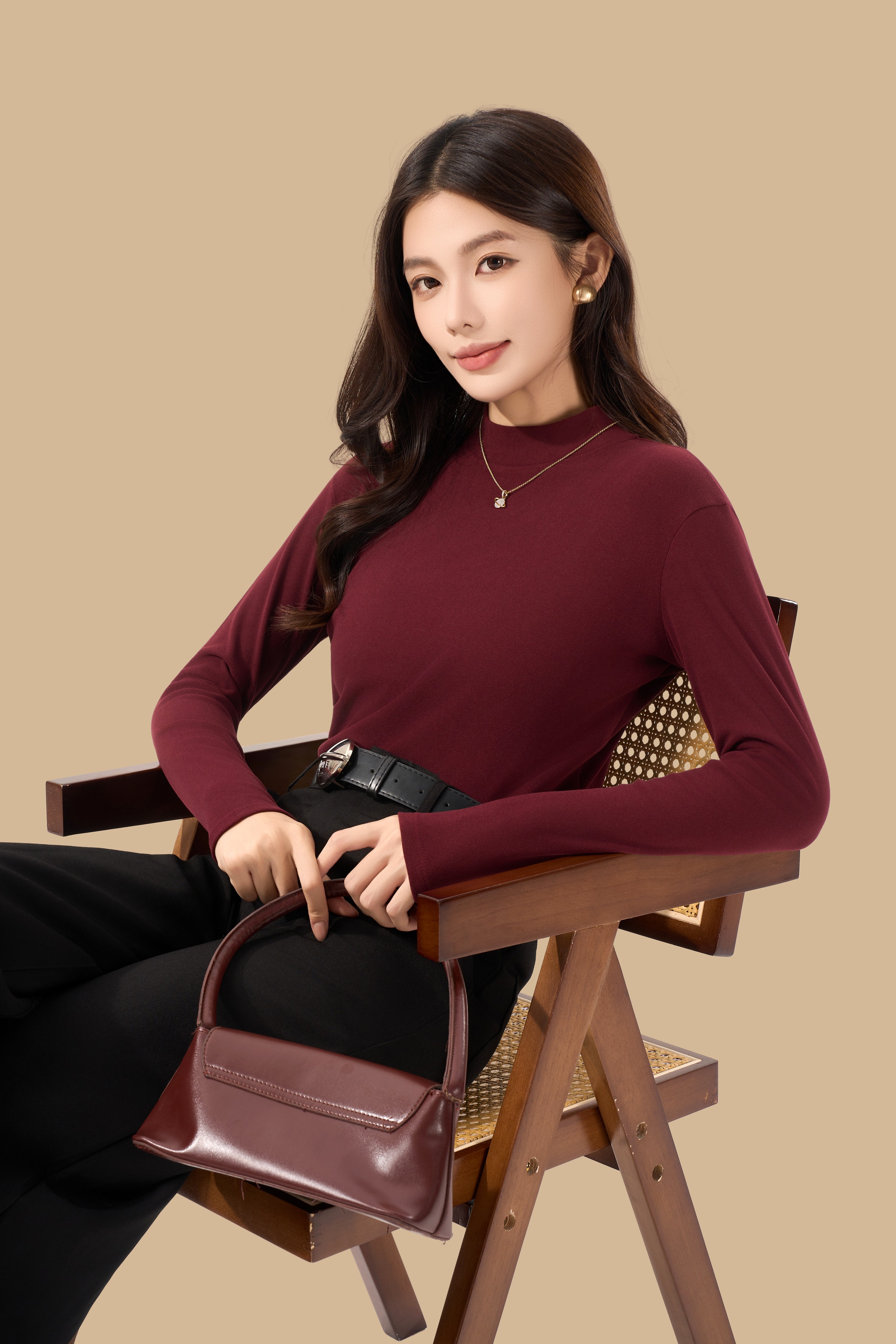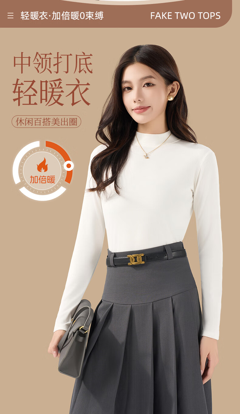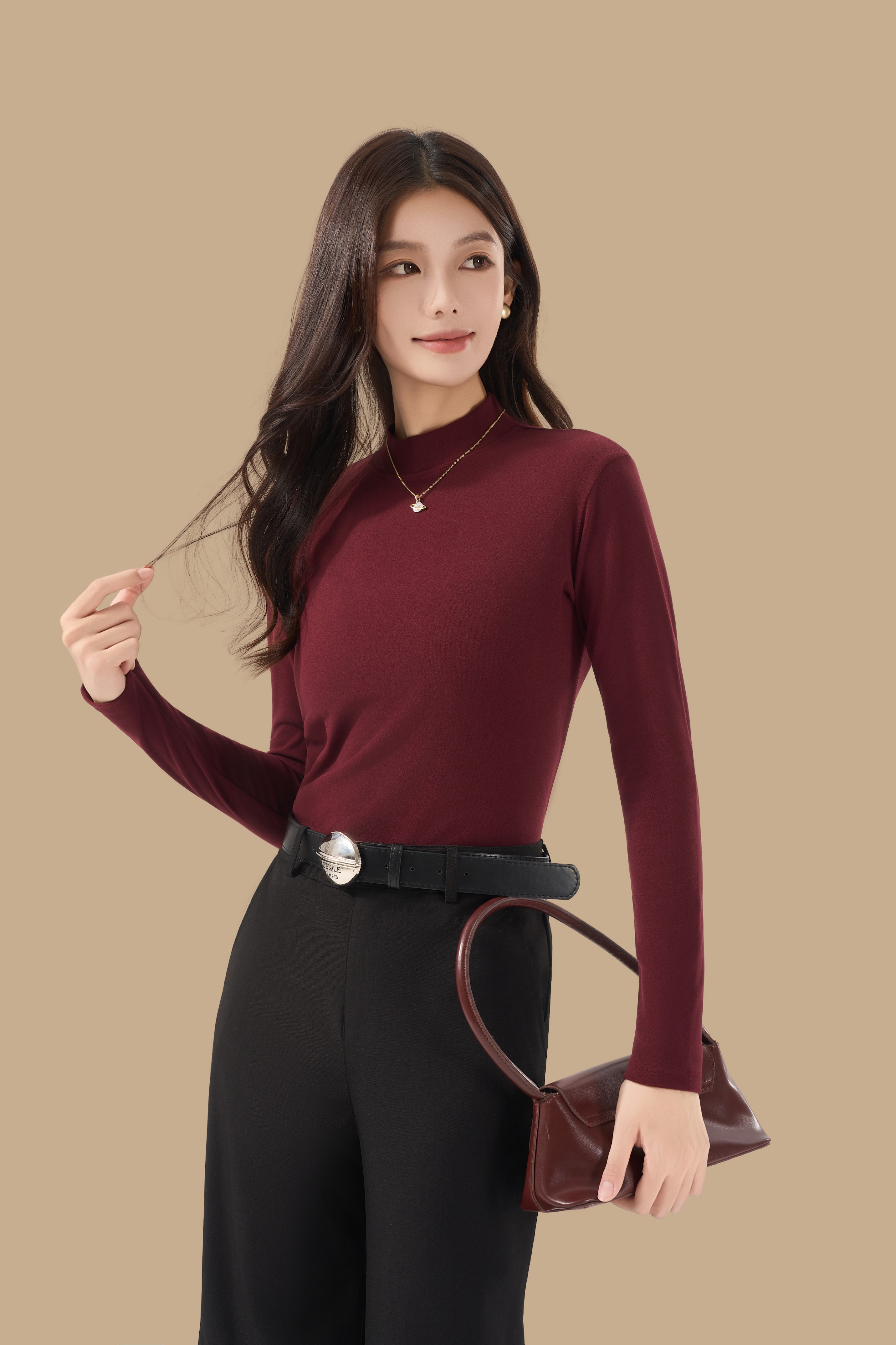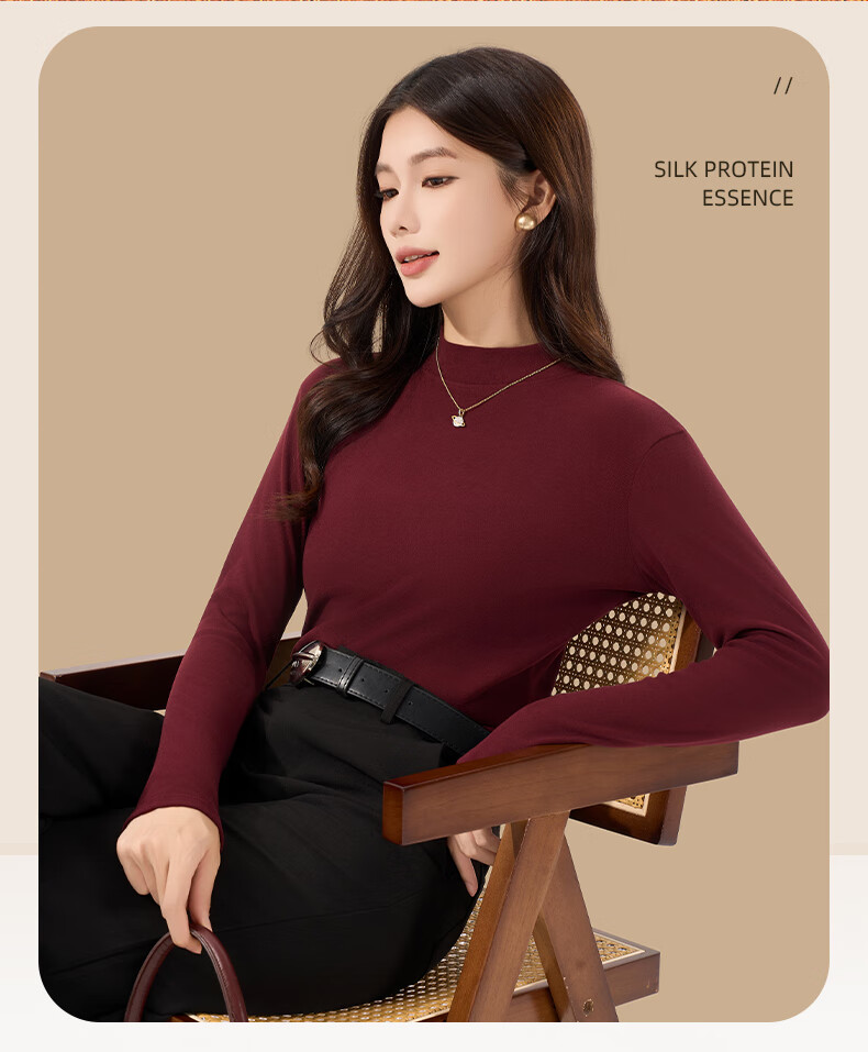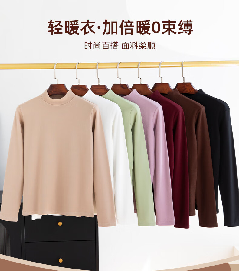 2025新款轻暖衣打底衫秋冬季卫衣宽松女款半高领上衣内搭百搭休闲 酒红色 XL 【120斤-160斤】