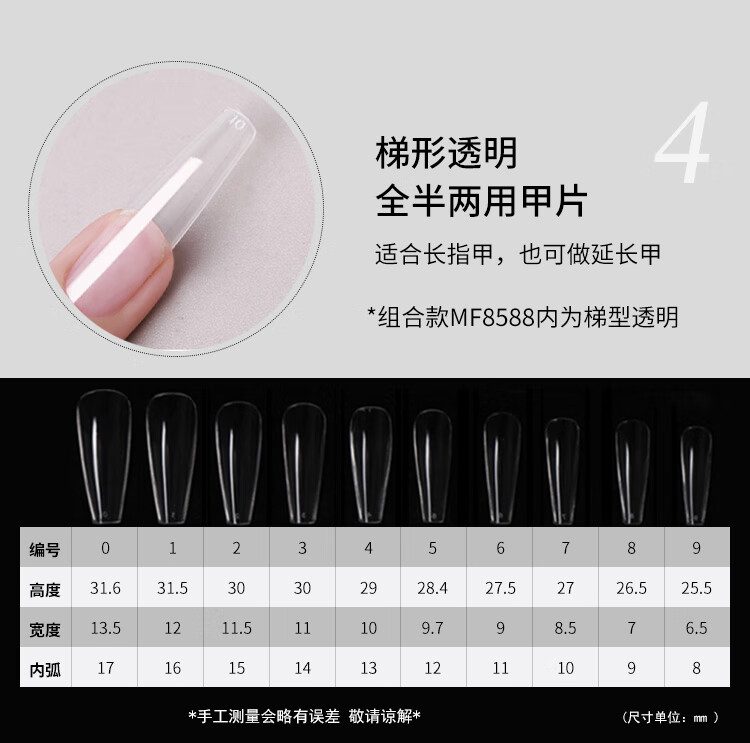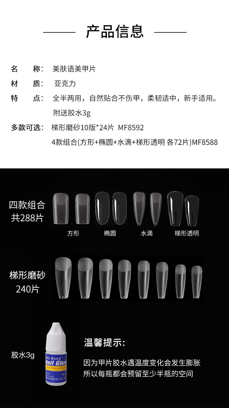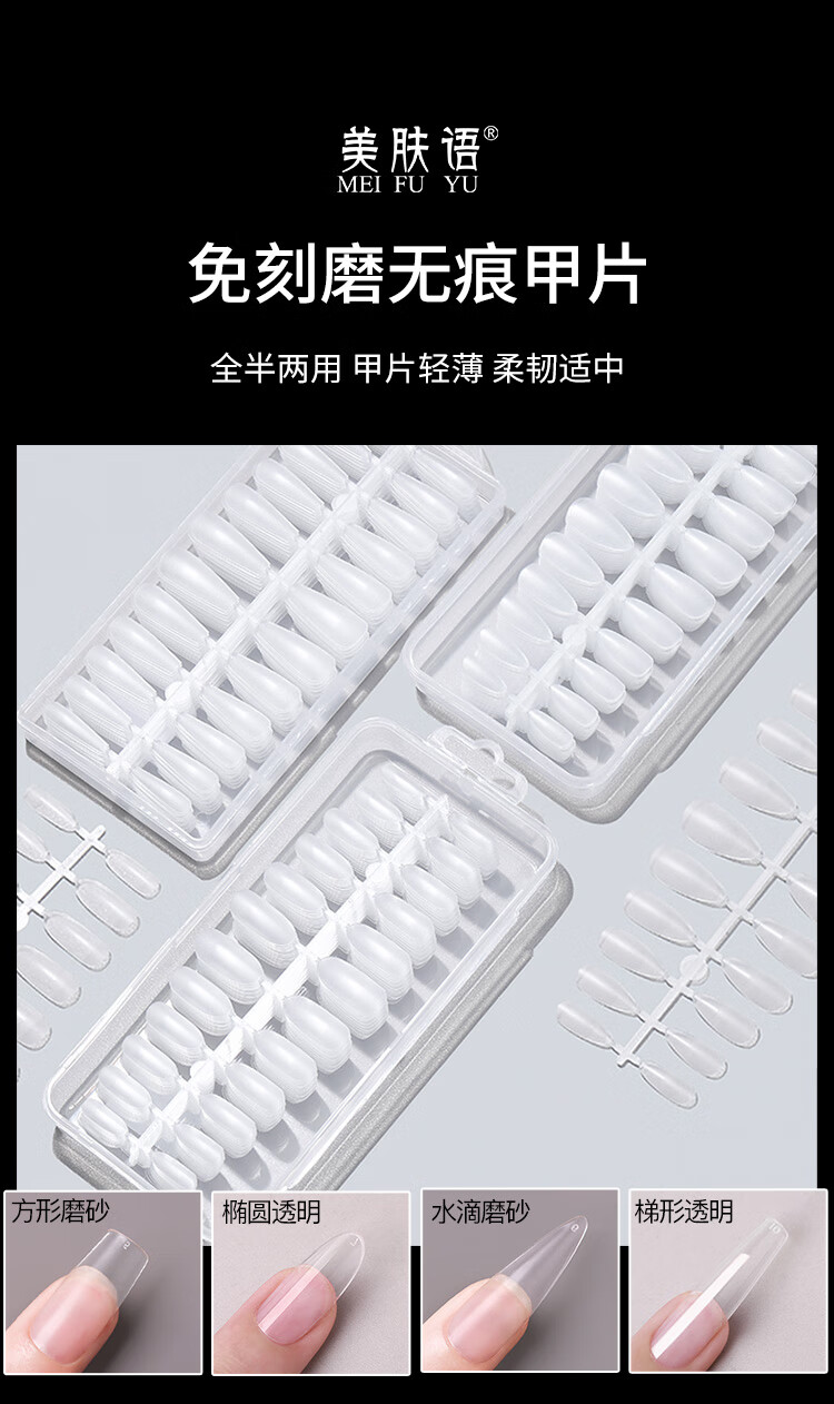 美肤语美甲指甲贴片延长甲(4款混合装) 免刻磨透明超薄无痕全贴MF8588