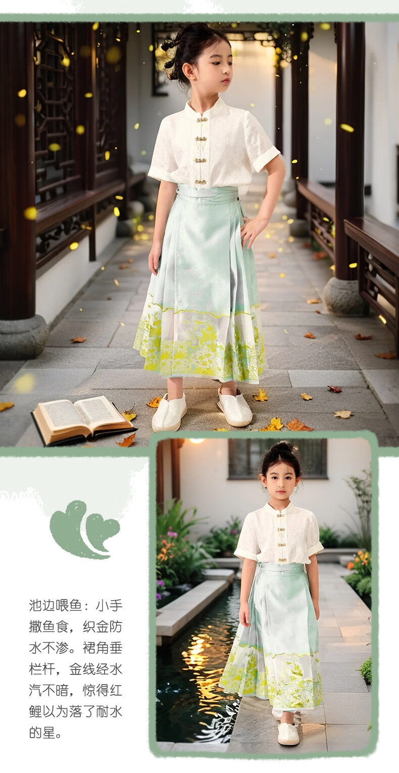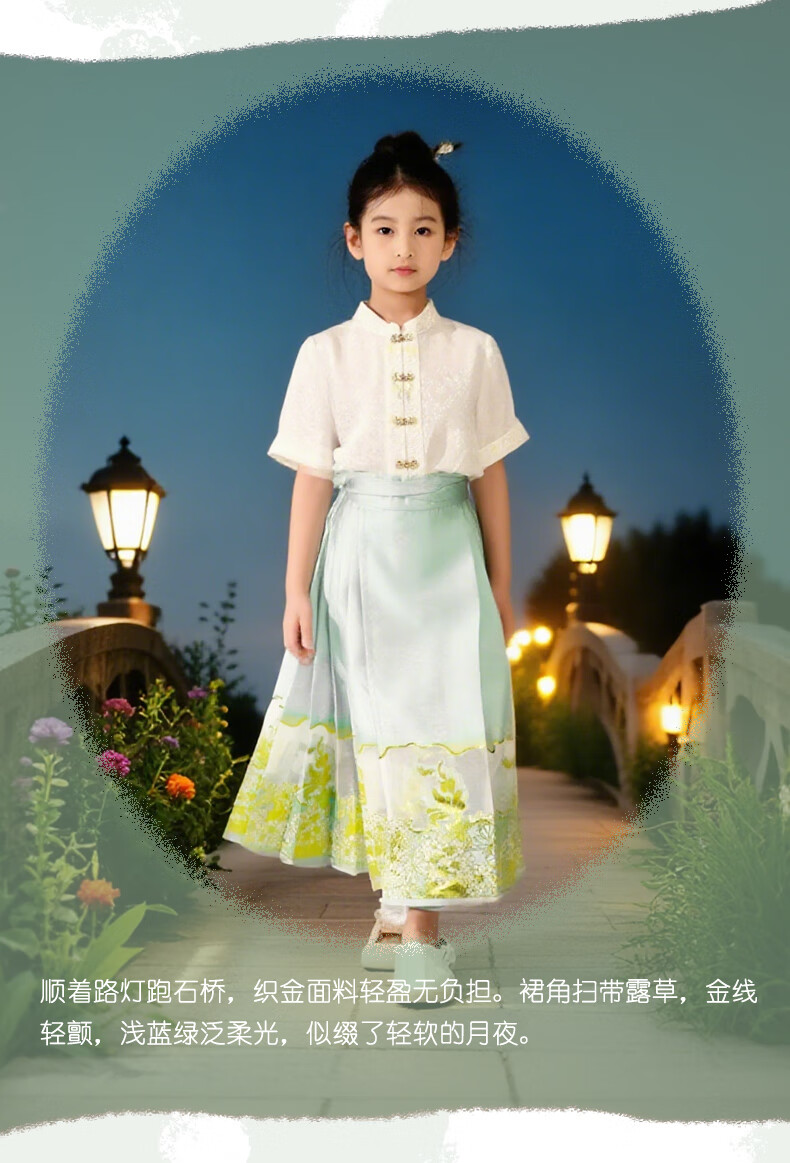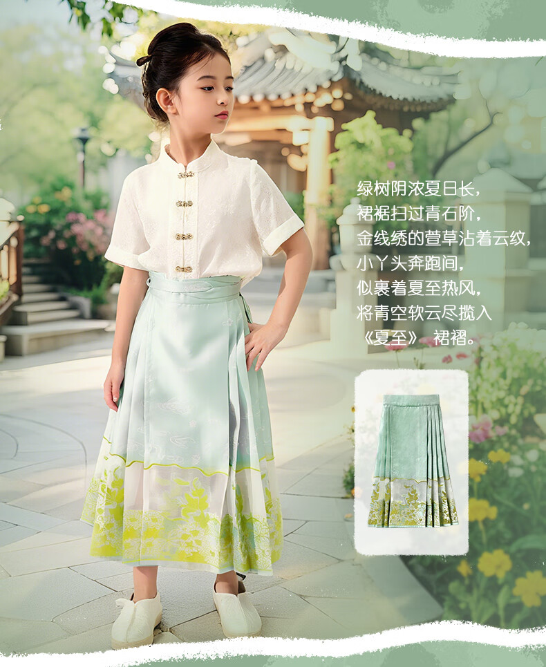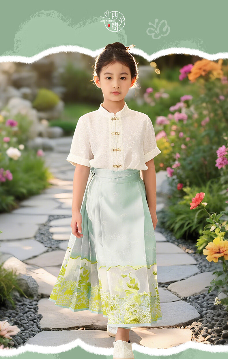 西子问女童汉服【夏至】秋季新款儿童明制改良中国风马面裙 夏至-浅绿色 110