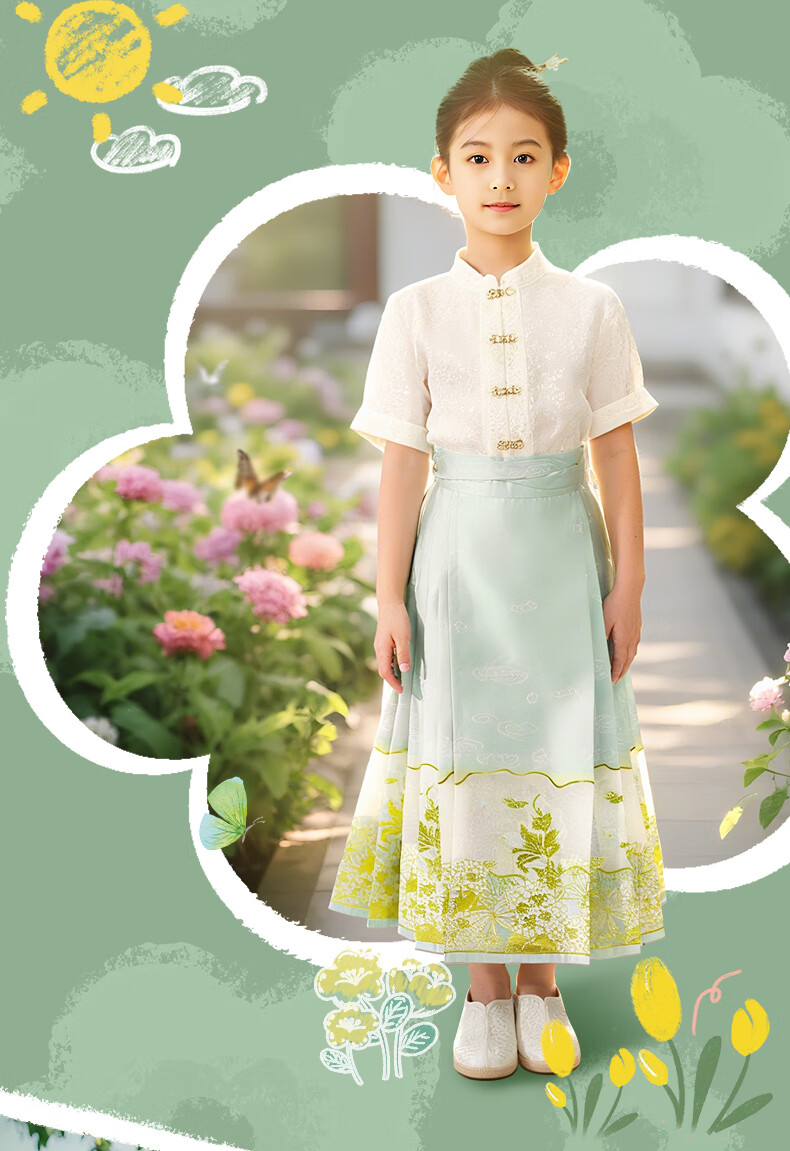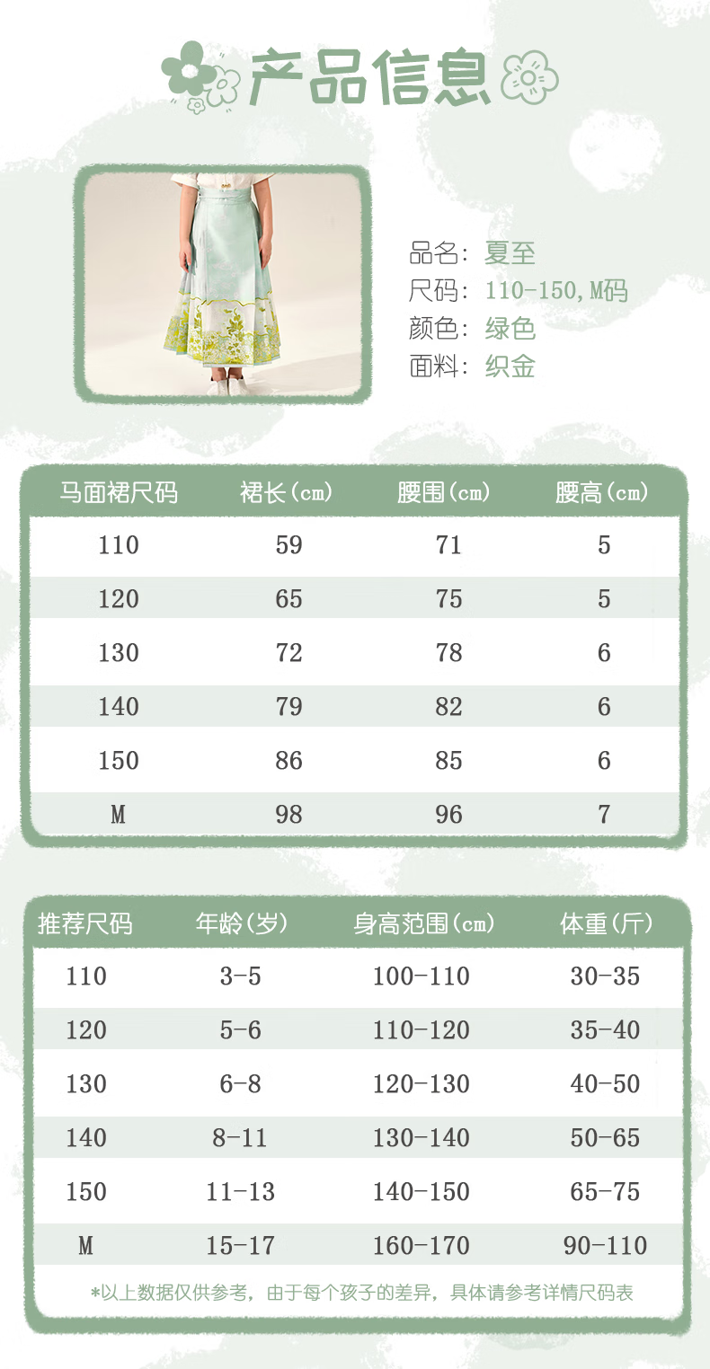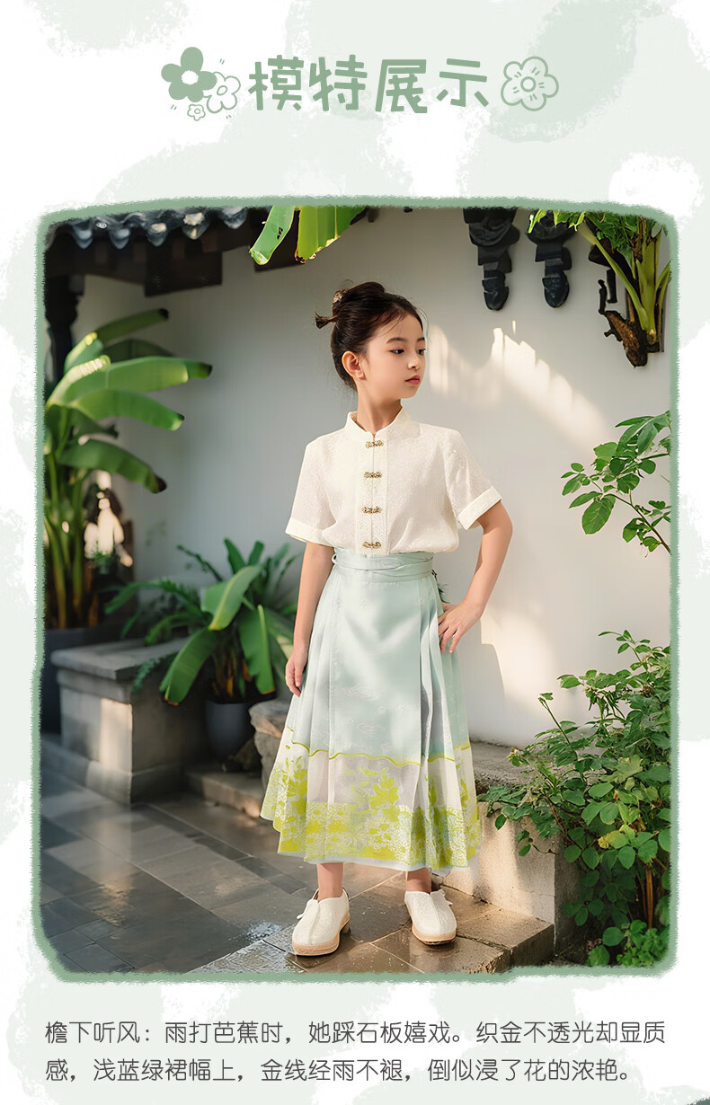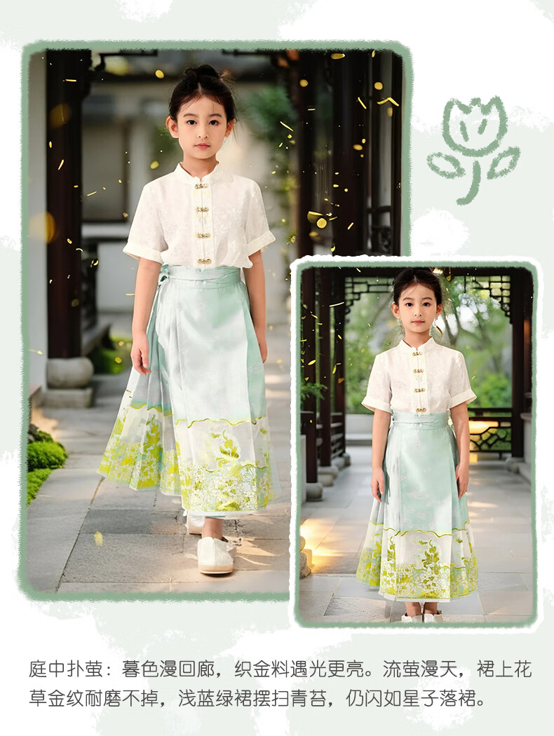 西子问女童汉服【夏至】秋季新款儿童明制改良中国风马面裙 夏至-浅绿色 110