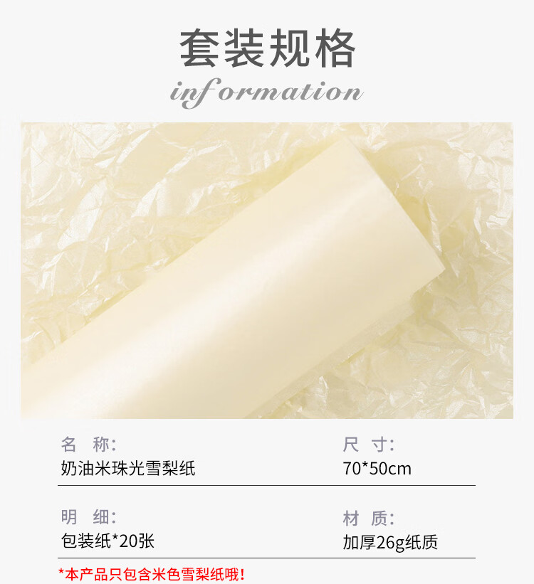 巧心师 珠光雪梨纸20张 鲜花包装纸diy材料水果礼盒内衬纸包装垫纸褶皱