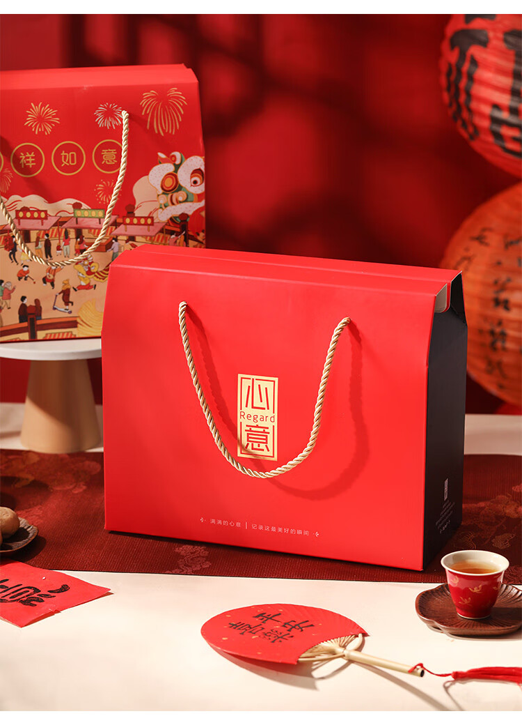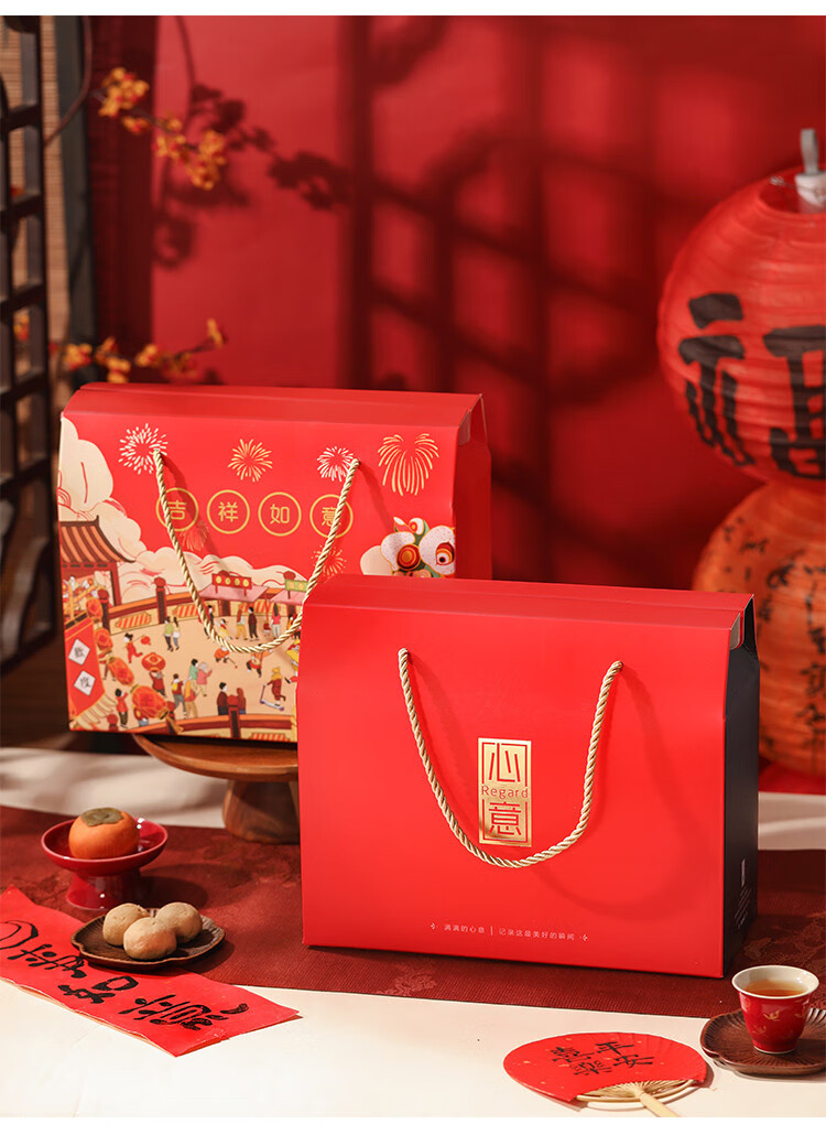 咏幻2026马年礼盒包装盒空盒春节年货礼品盒手提盒子过年大礼包盒 发大财大号盒