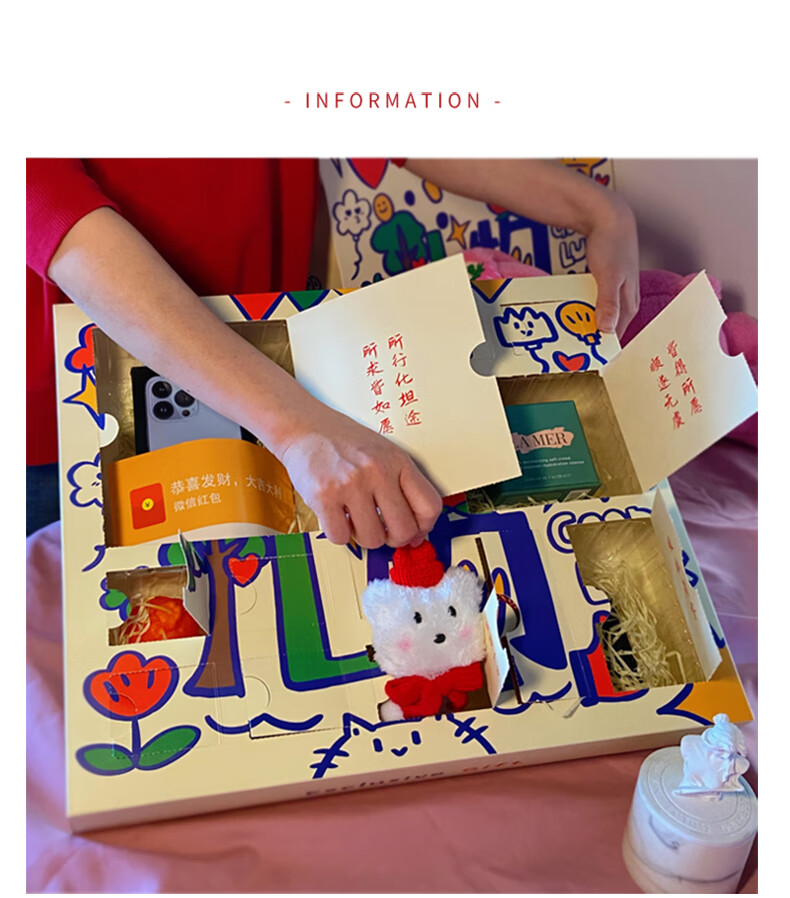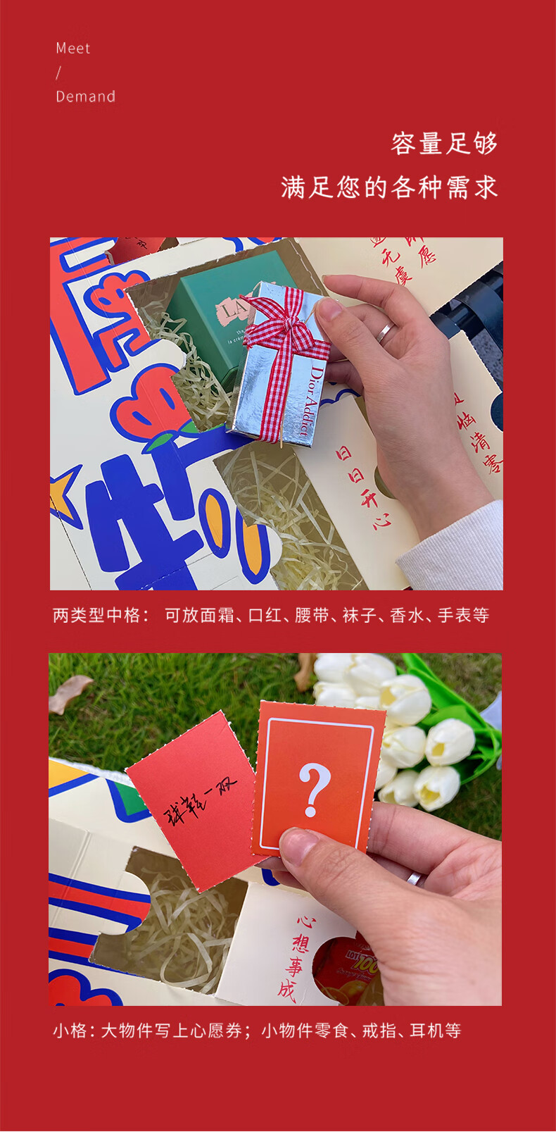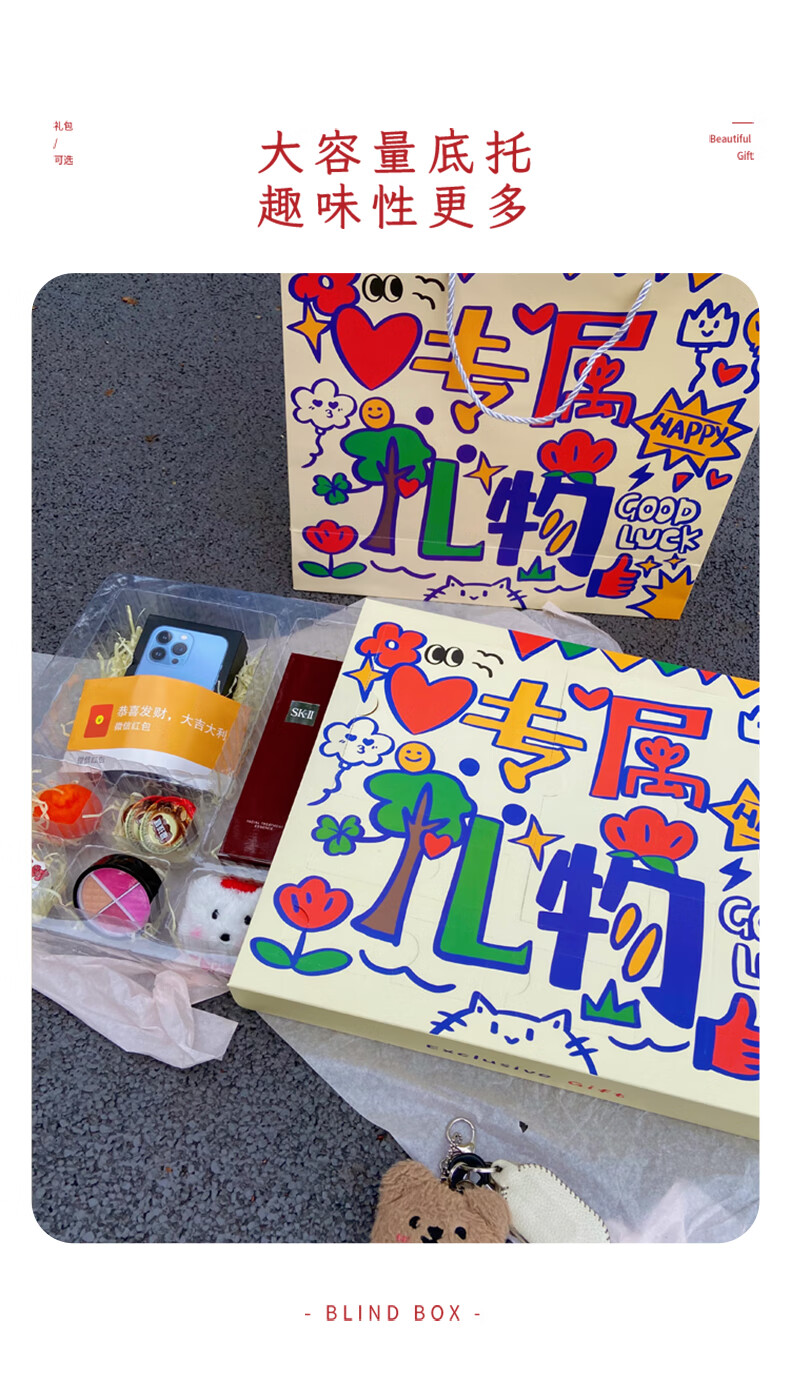 收纳盒专属礼物洞洞乐自制盲盒礼盒空盒戳戳乐圣诞儿童生日diy盒 5格快乐时光[单独礼盒+大礼包]
