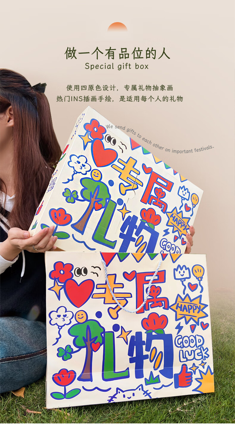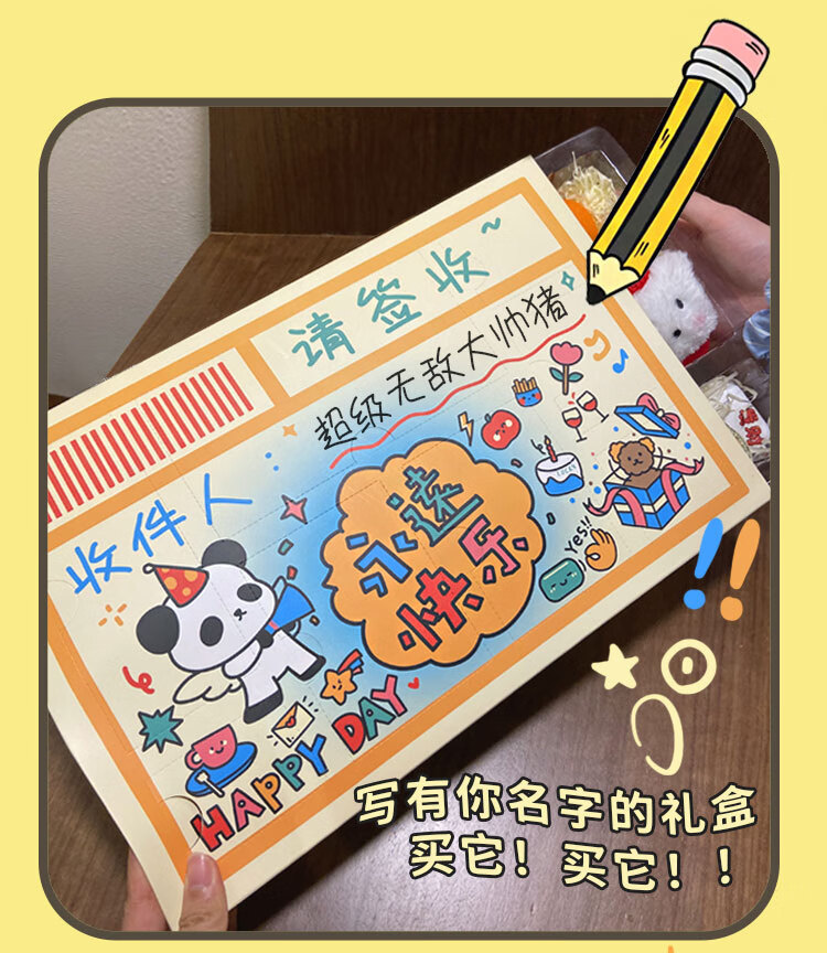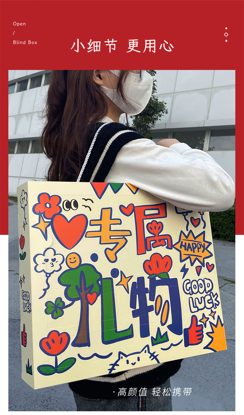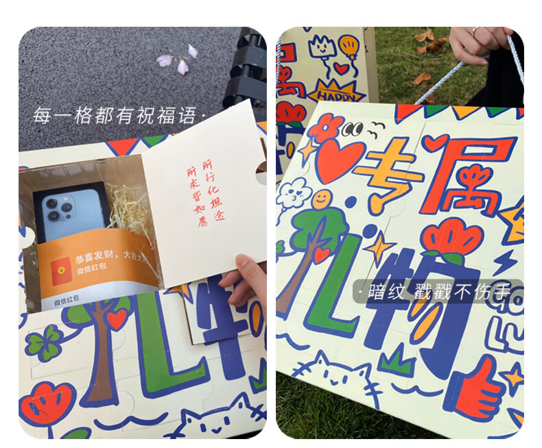 收纳盒专属礼物洞洞乐自制盲盒礼盒空盒戳戳乐圣诞儿童生日diy盒 5格快乐时光[单独礼盒+大礼包]