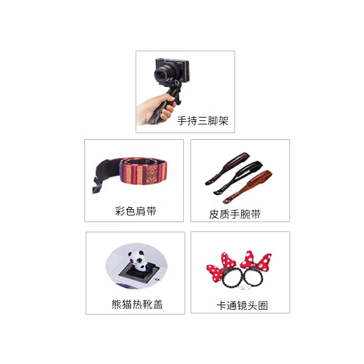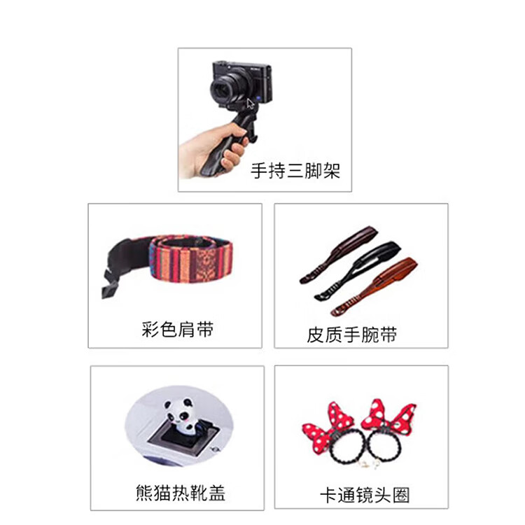佳能(Canon)相机定制微单礼包 含手持三脚架+肩带+热靴+腕带+镜头圈 卡通镜头盖套装-JC