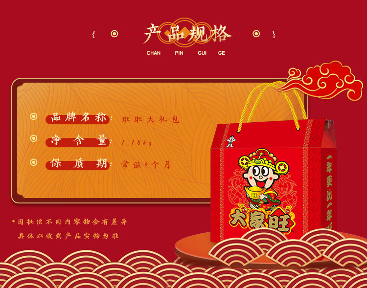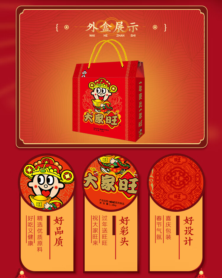 旺旺 零食大礼包 大家旺 1.18kg 礼盒装 休闲食品 团购送礼 新春贺礼