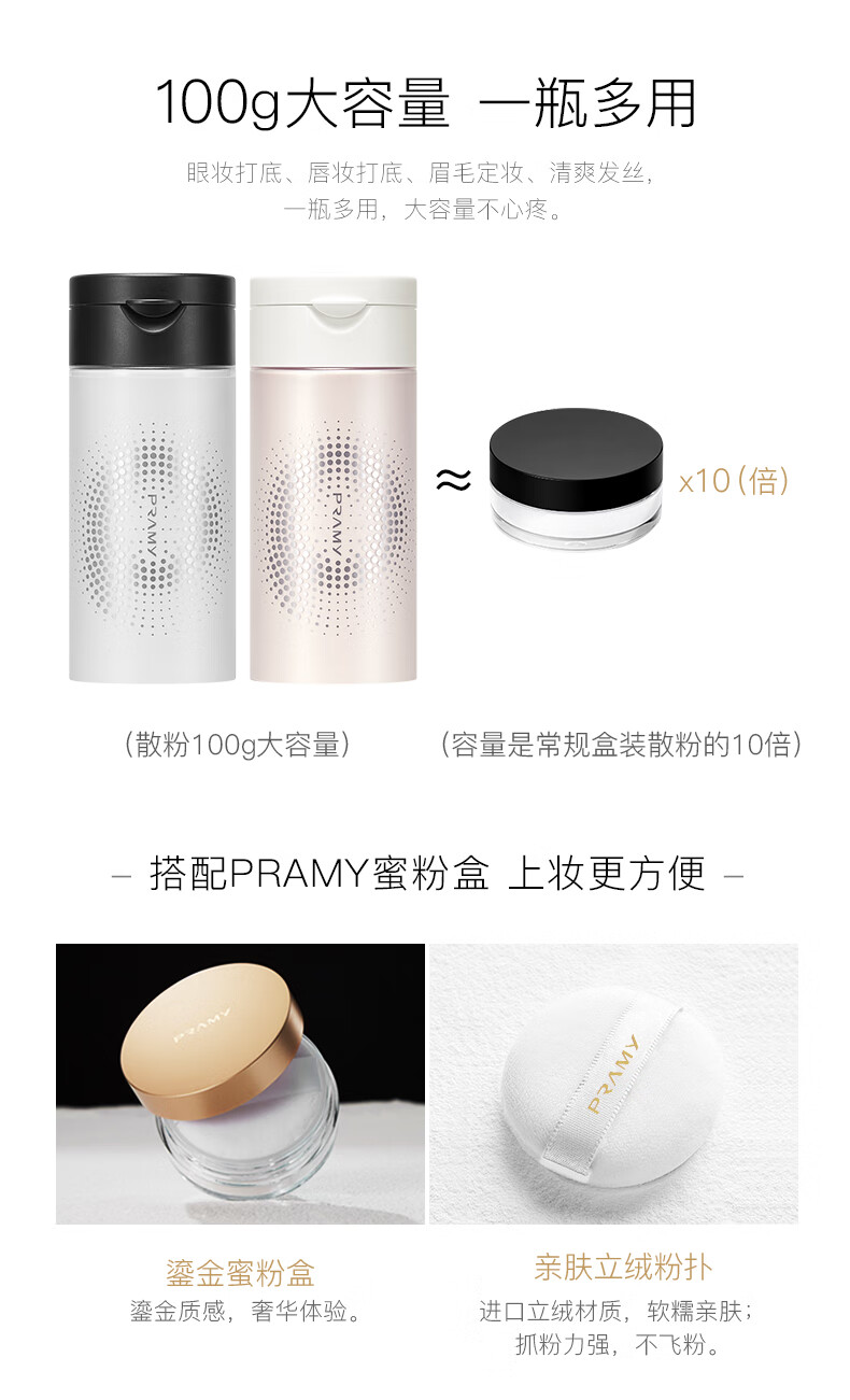 柏瑞美【官方旗舰】柏瑞美散粉黑胡椒博瑞美控油持久定妆粉防水油 ----100g大容量送分装盒----