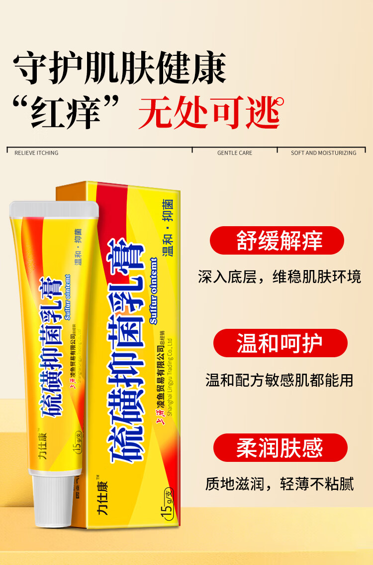 力仕康硫磺软膏阴虱疥虫私处止痒阴囊湿潮红痒女男人专用抑菌硫磺乳膏