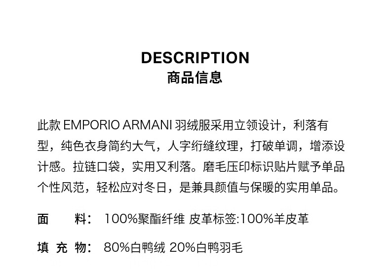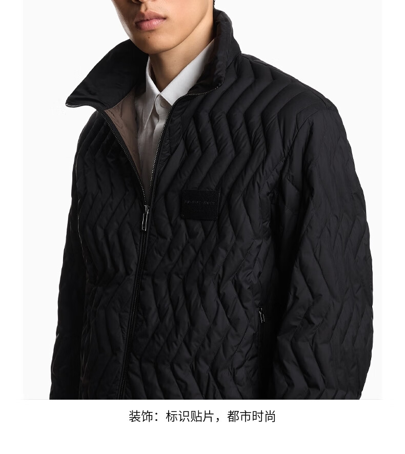 EMPORIO ARMANI/阿玛尼官方旗舰新款男士80白鸭绒短款轻薄羽绒服外套冬季 UC001-黑色 52 (XL) (推荐:165-180斤)