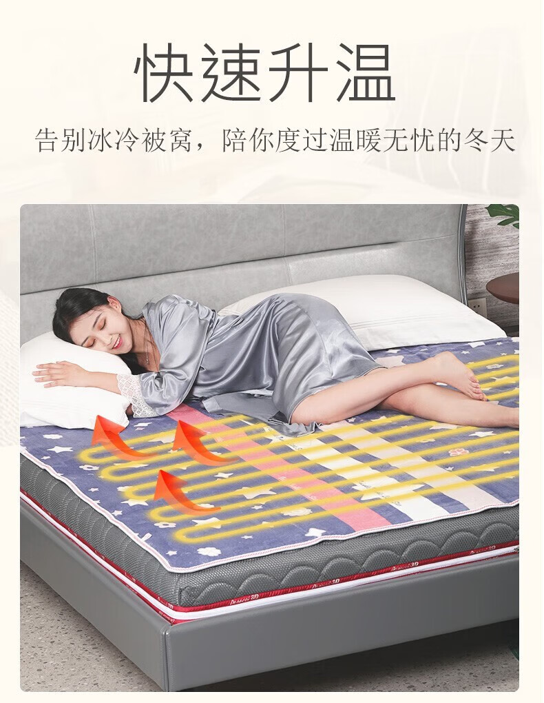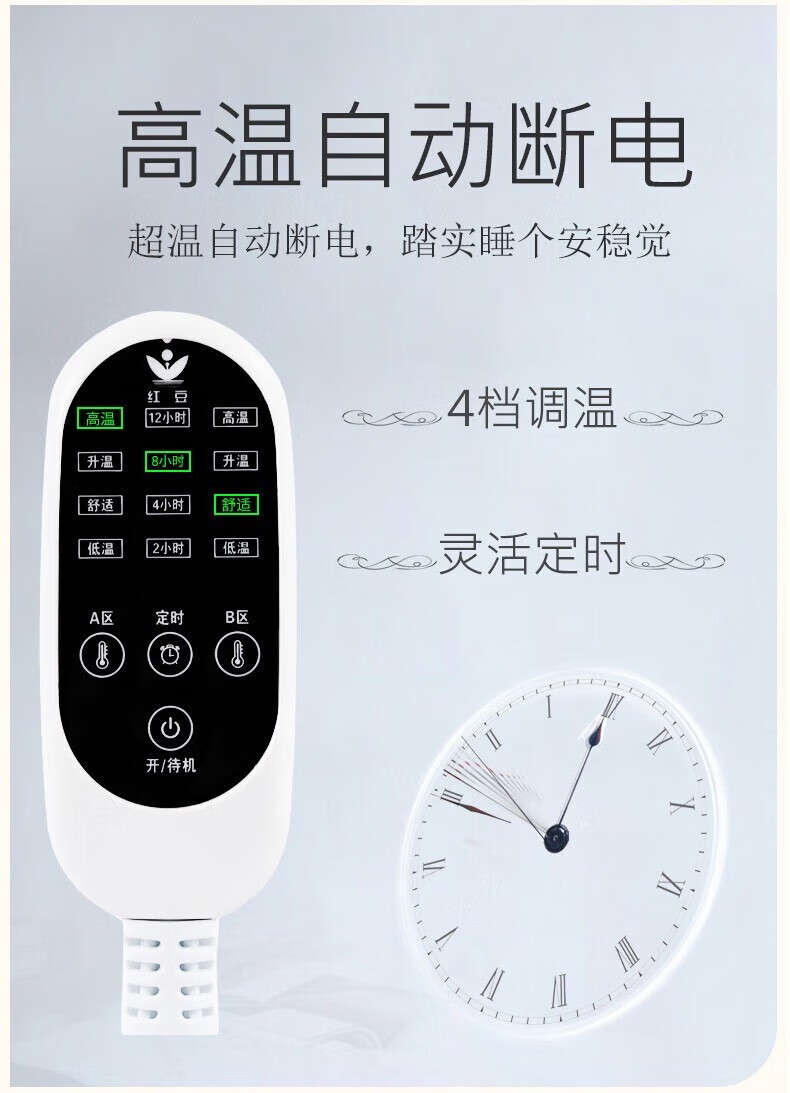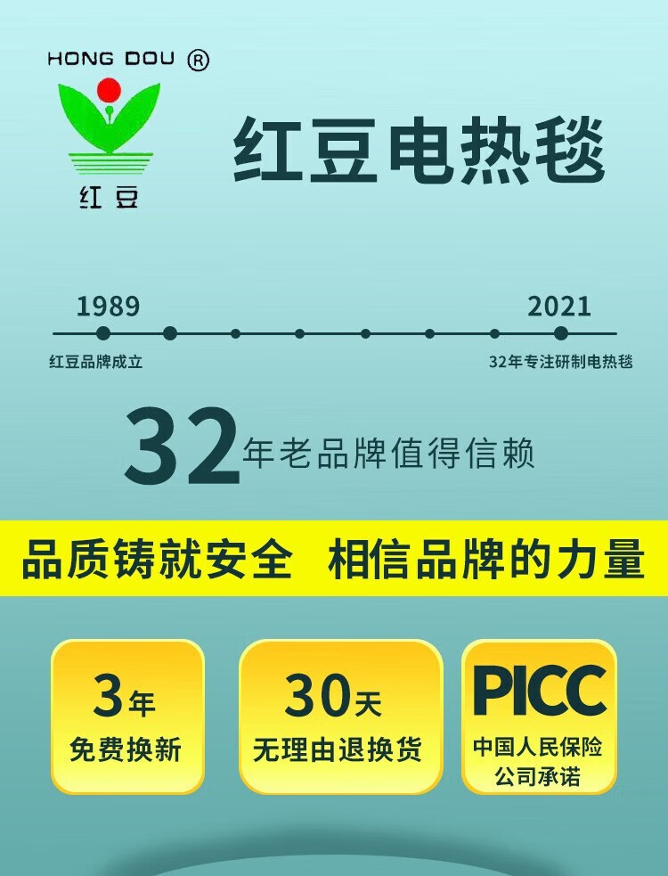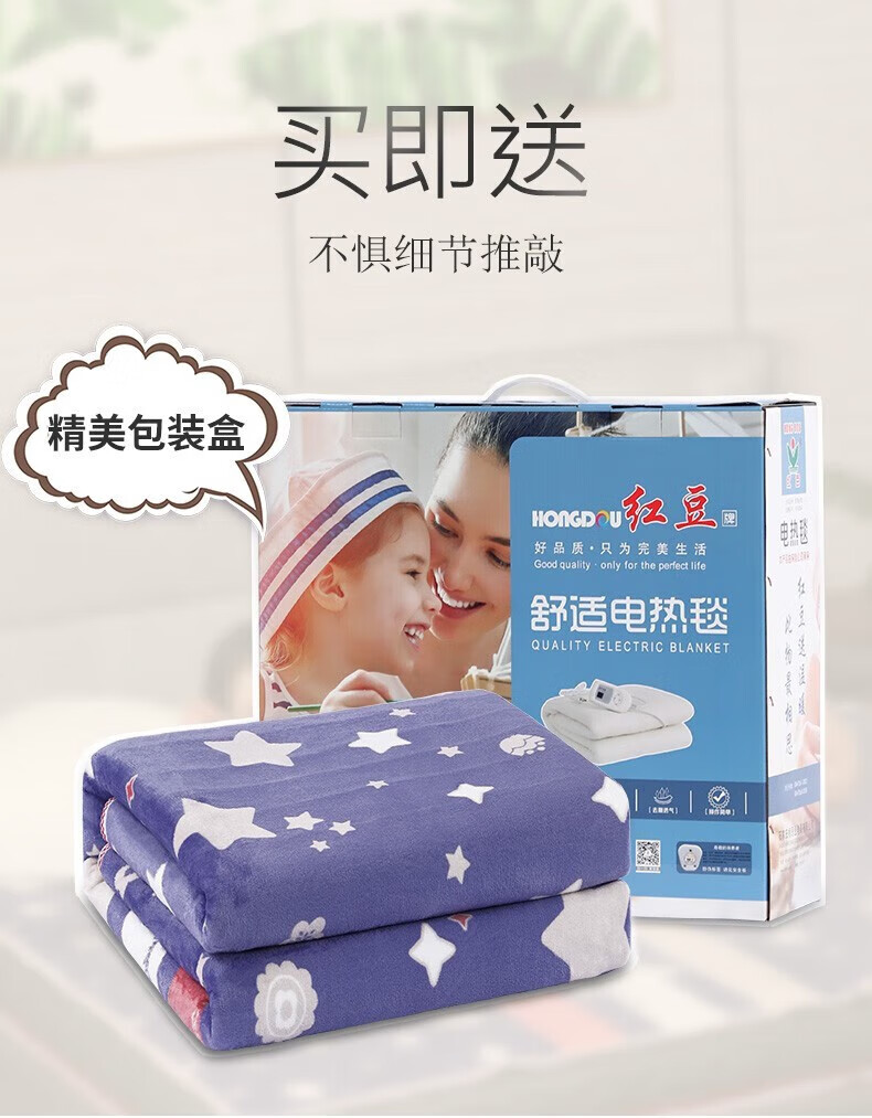 红豆电热毯1.5米x1.8米双温双控单双人电褥子除螨防水自动断电发热垫 普通款-单人1.5*0.7cm【配限定礼品袋】