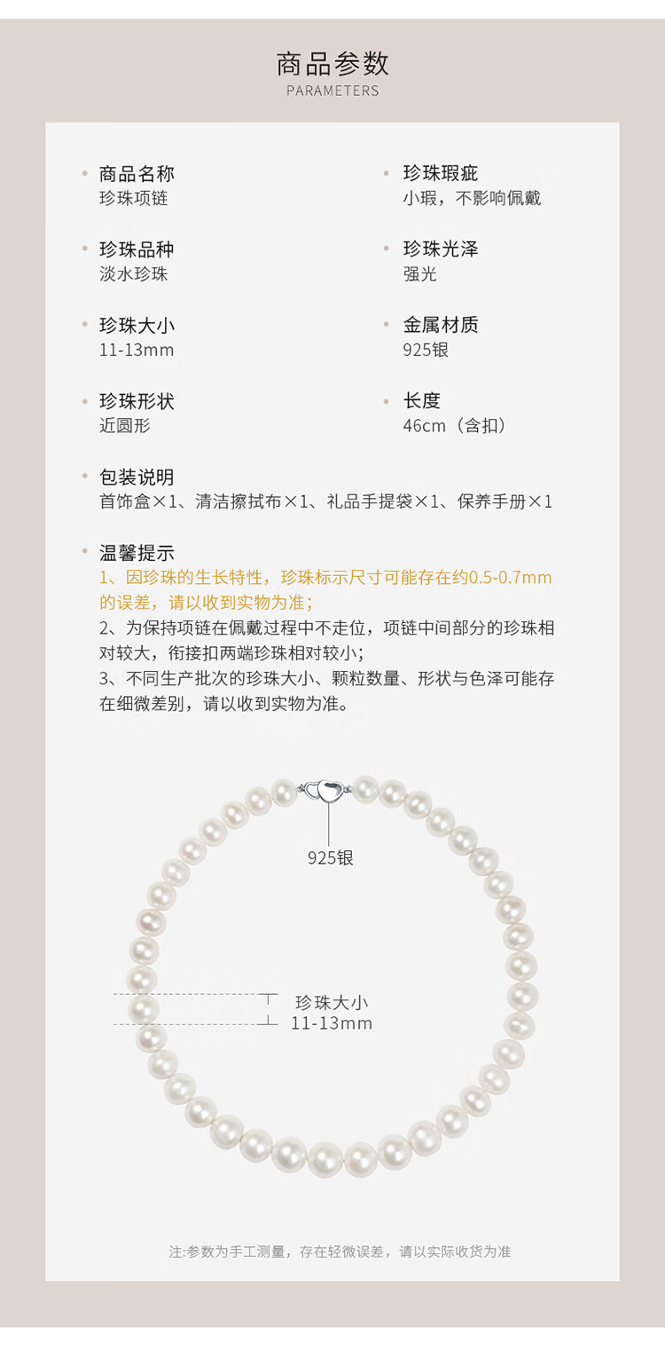 京润珍珠项链女925银如盼淡水珍珠项链全珠链高级感珠宝自戴新年礼物