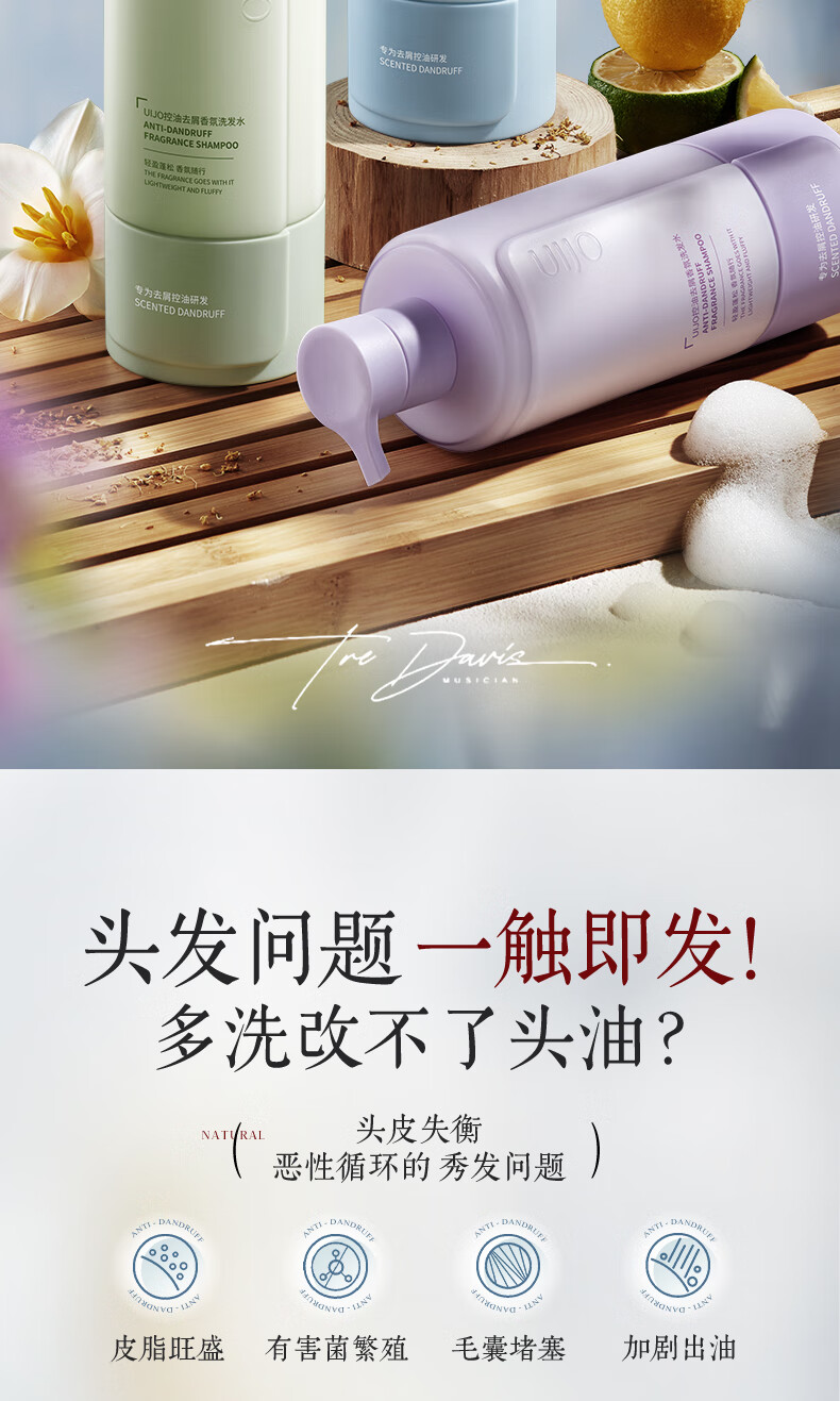 UIJO有觉控油蓬松洗发水去屑止痒持久留香柔顺男女洗头膏露洗发液金榜第1