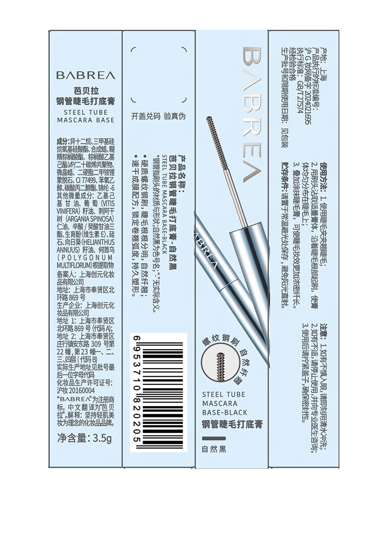 芭贝拉睫毛膏打底膏防水纤长卷翘睫毛膏伪素颜自然妆感巴贝拉学生平价 自然黑
