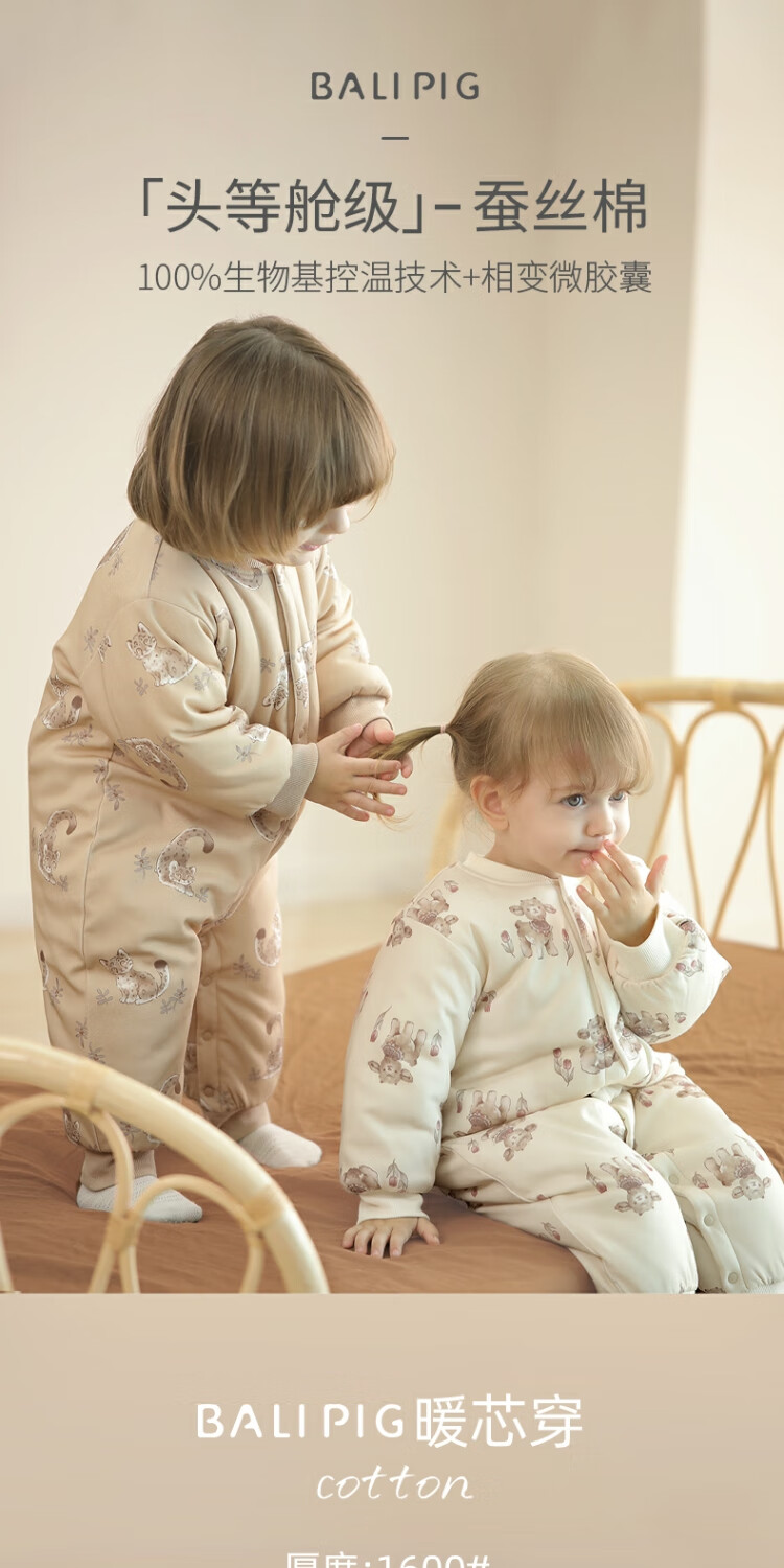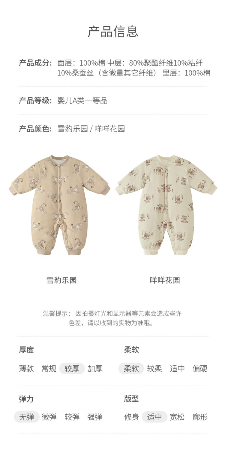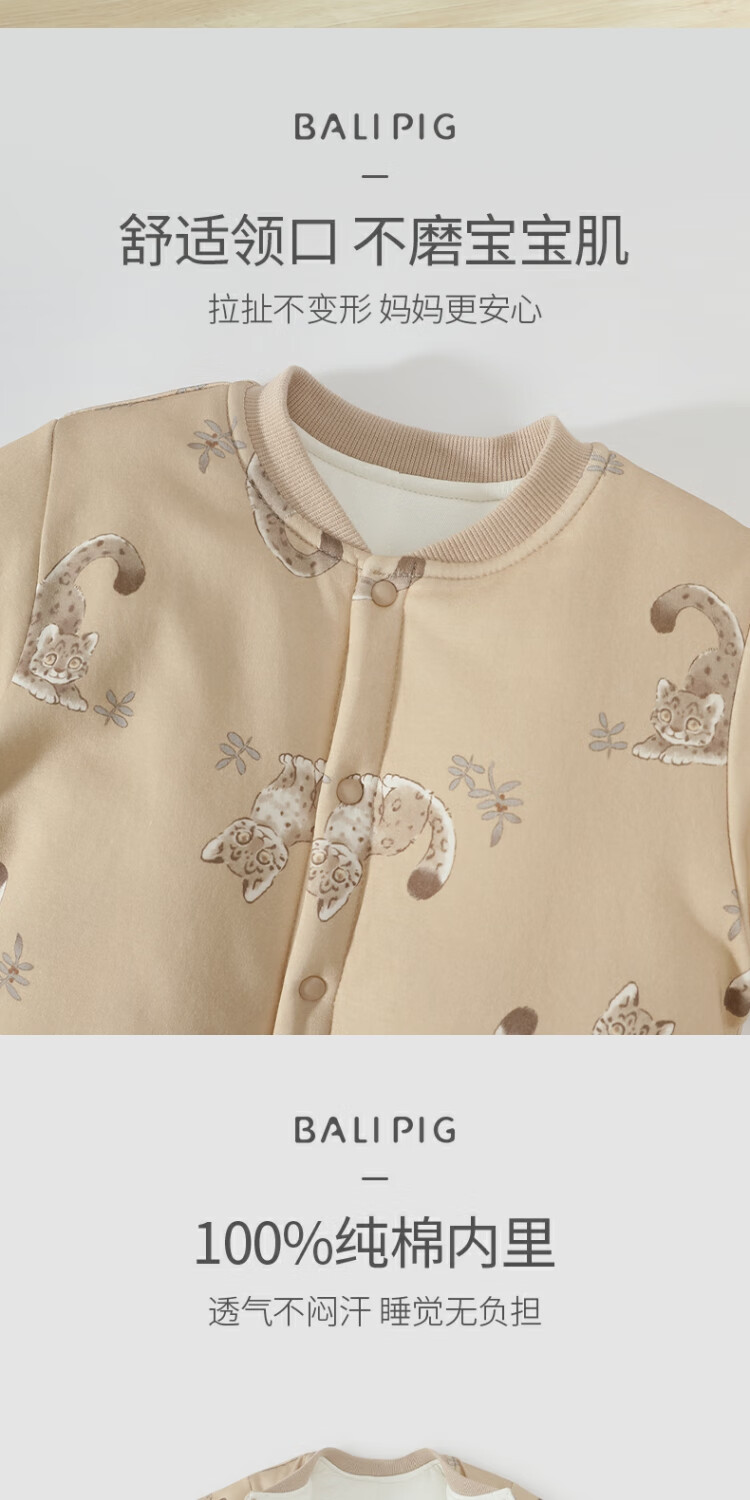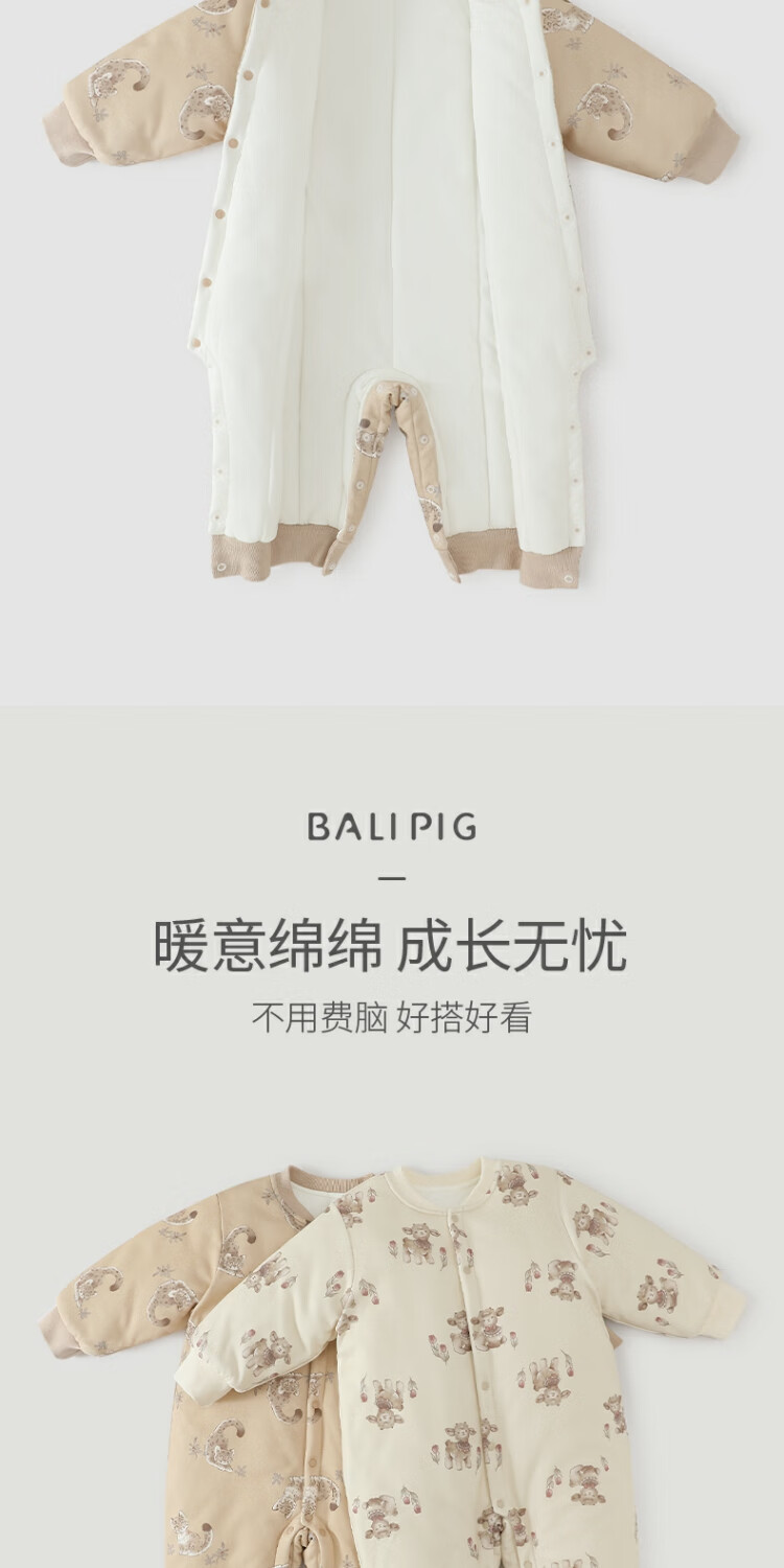 巴厘小猪新生婴儿棉服秋冬加厚保暖恒温连体衣初生儿夹棉蚕丝哈衣宝宝冬装 咩咩花园 73cm