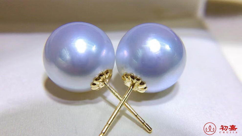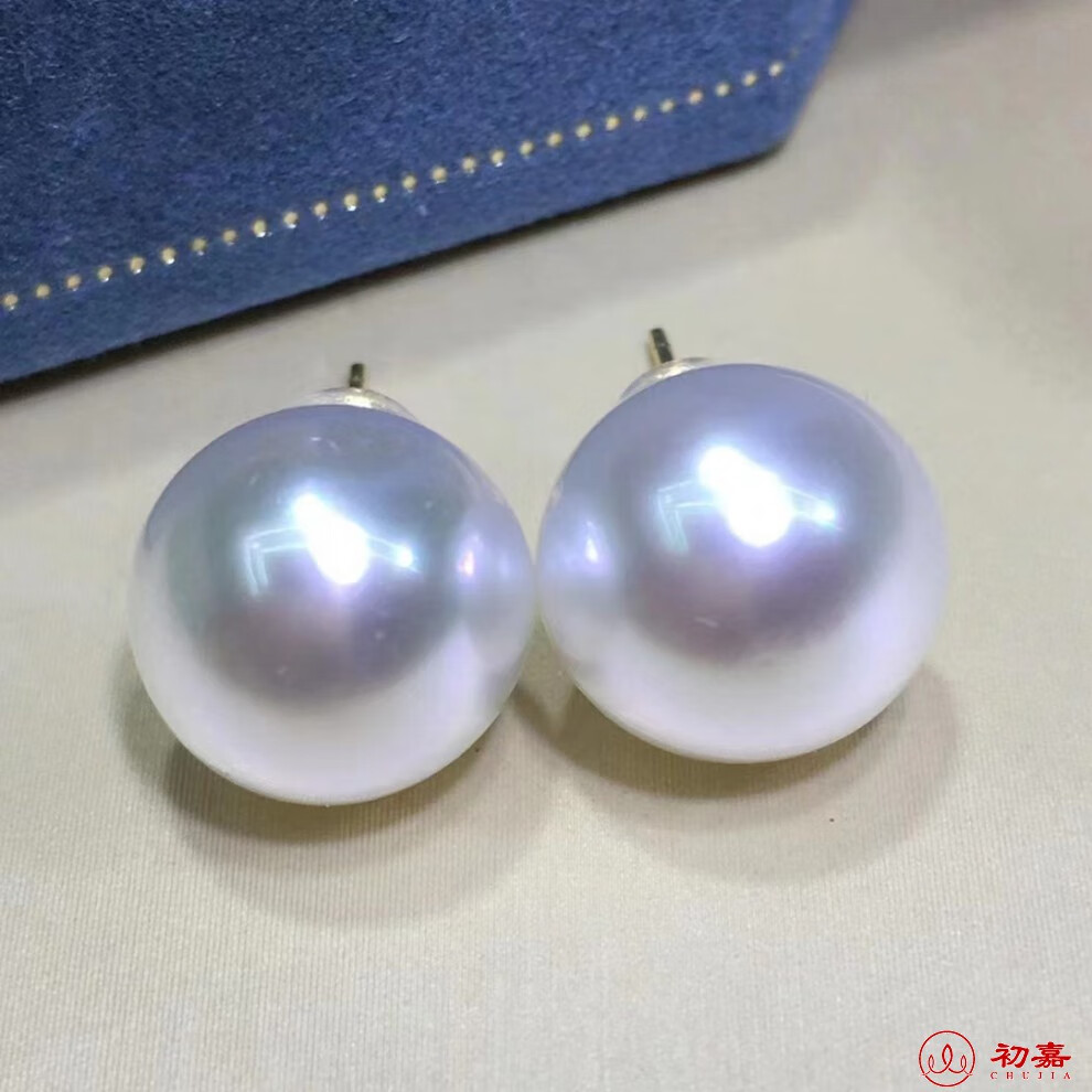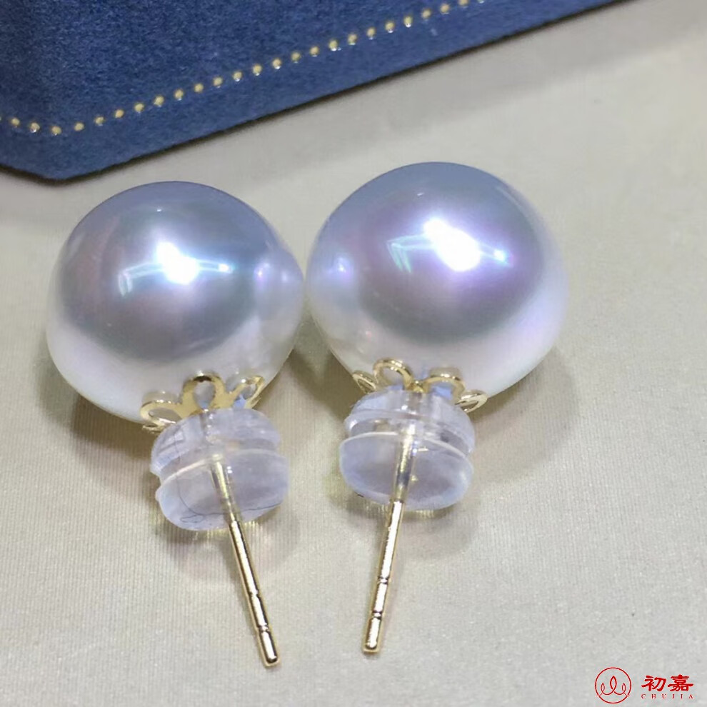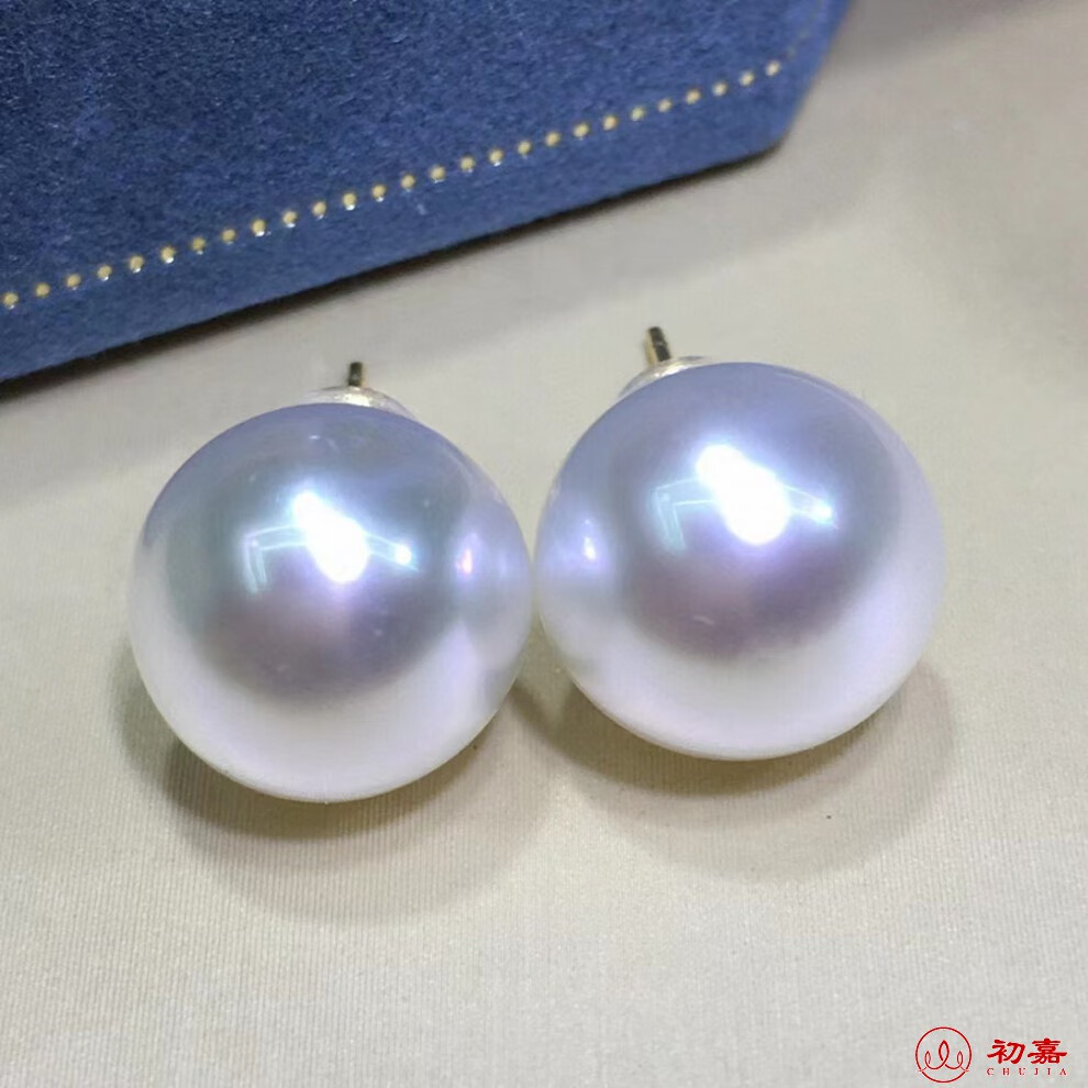 初嘉 冷光澳白海水珍珠耳钉 耳环耳坠强光 18K金南洋白珠经典百搭 白色 佩戴无暇品质 8-8.5mm