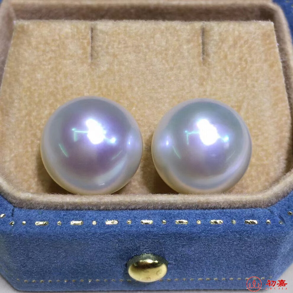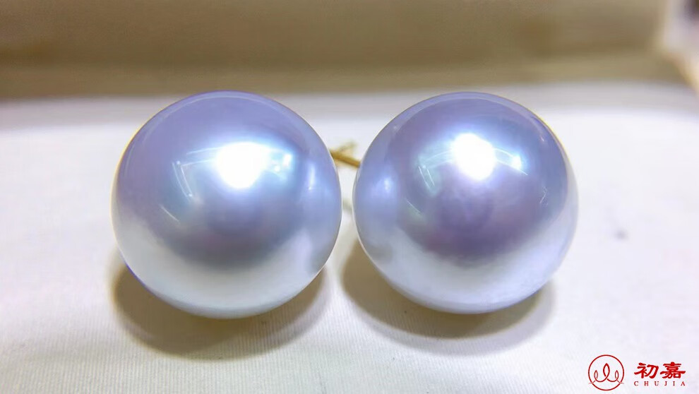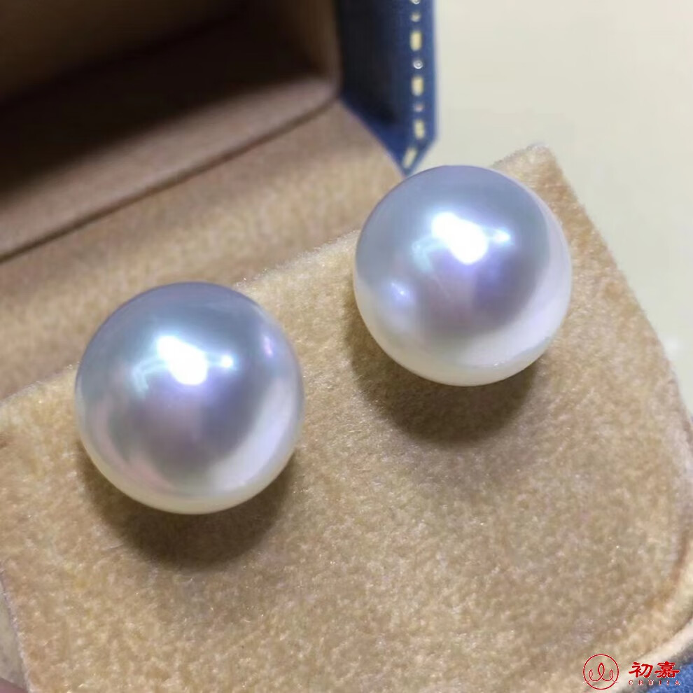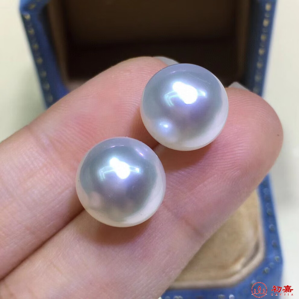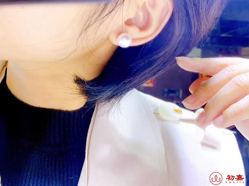 初嘉 冷光澳白海水珍珠耳钉 耳环耳坠强光 18K金南洋白珠经典百搭 白色 佩戴无暇品质 8-8.5mm