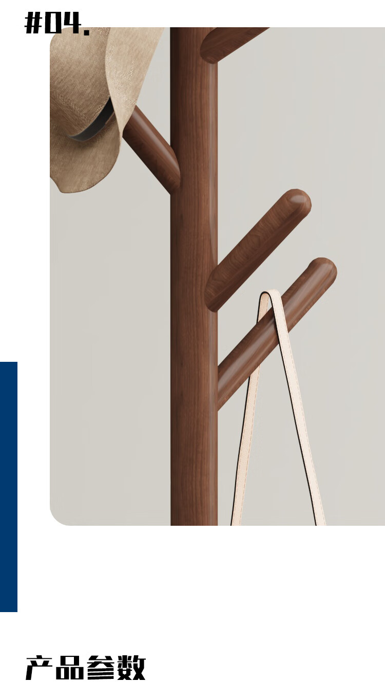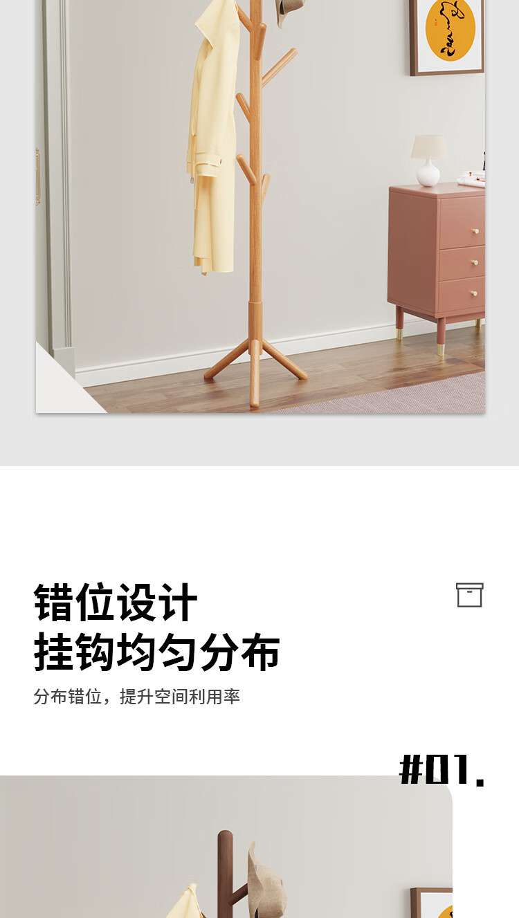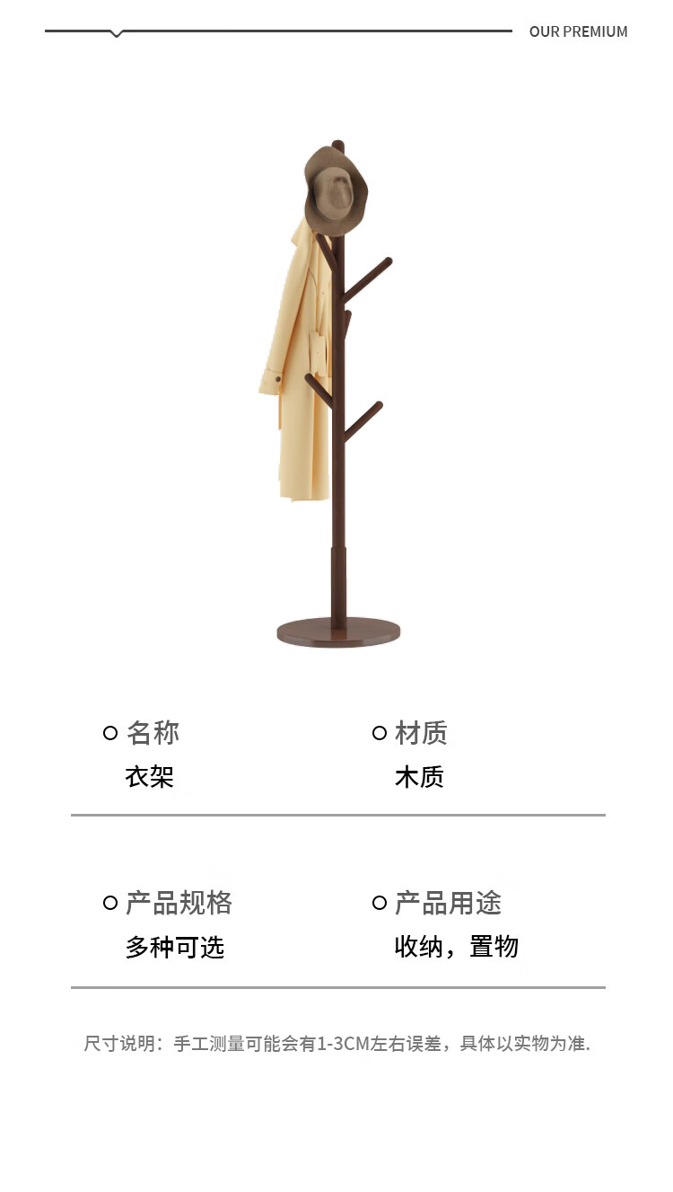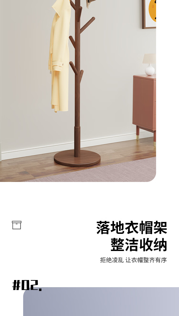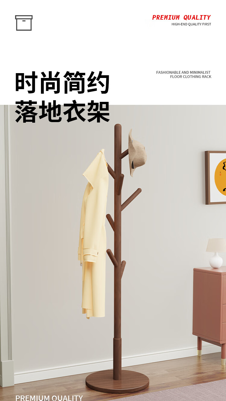 霓峰实木衣帽架卧室落地床尾挂衣架入户门不占空间立衣架挂包包置物架 【十字款】胡桃色-实木底座【榉木覆膜】