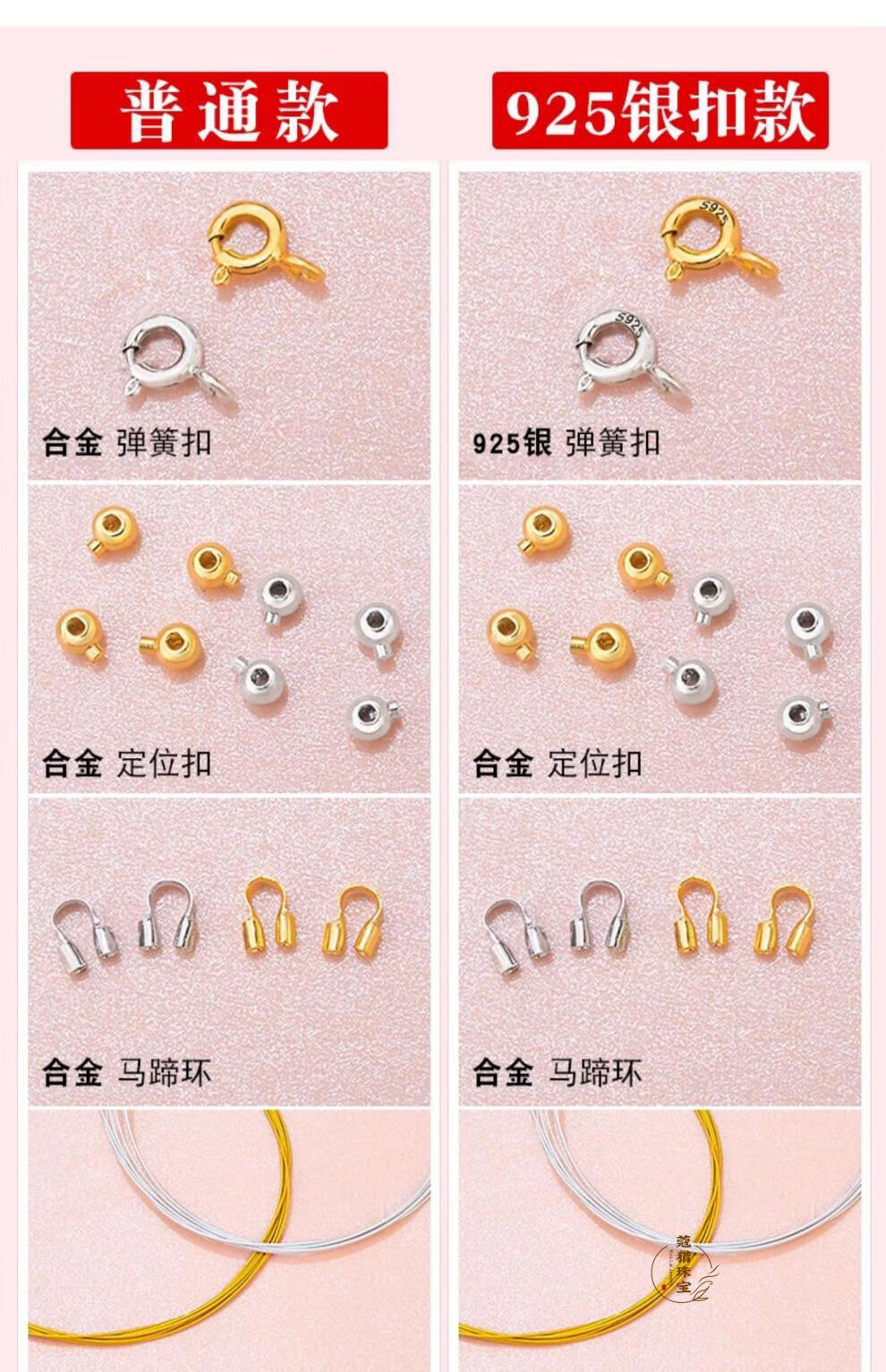珍珠项链扣头配件穿珍珠专用线和扣头手工配件diy串小 金色款材料包无钳子