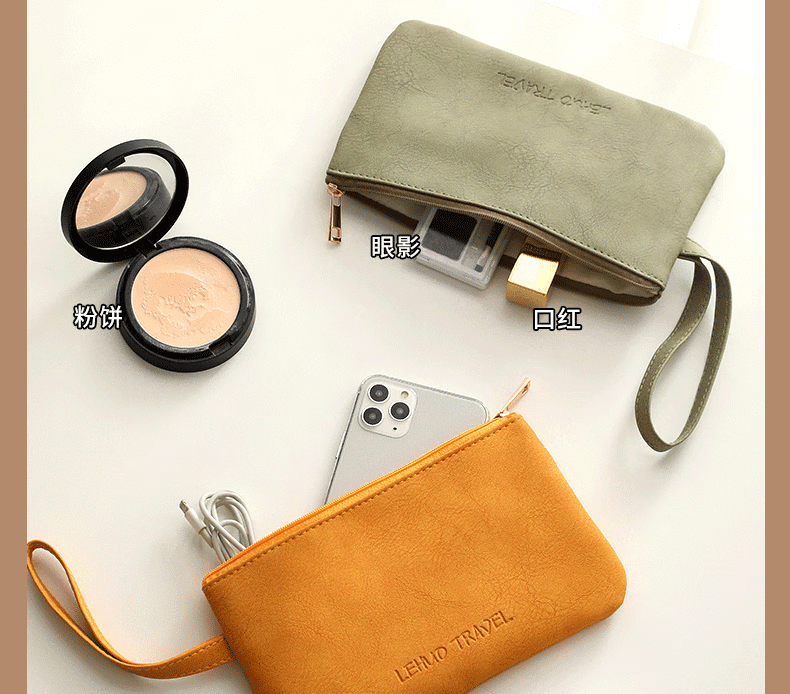 乐活旅行手机包化妆包零钱证件口红收纳包随身便携手提手机袋女迷你小包 蓝色