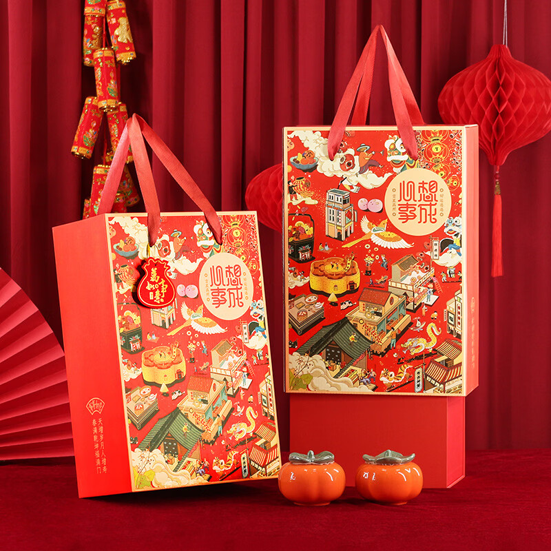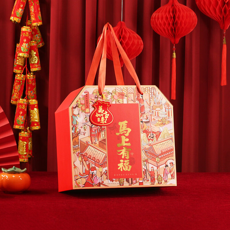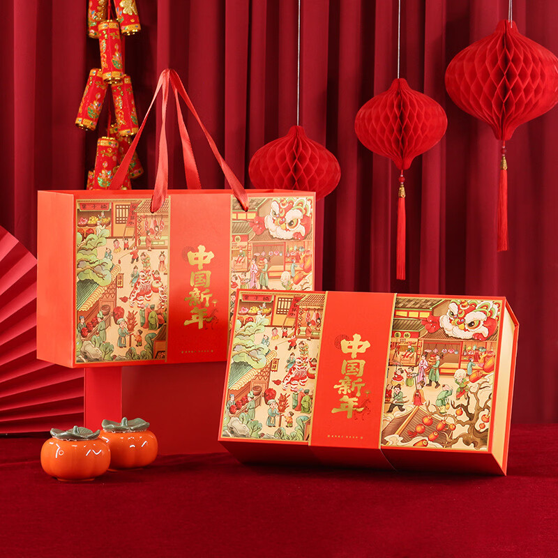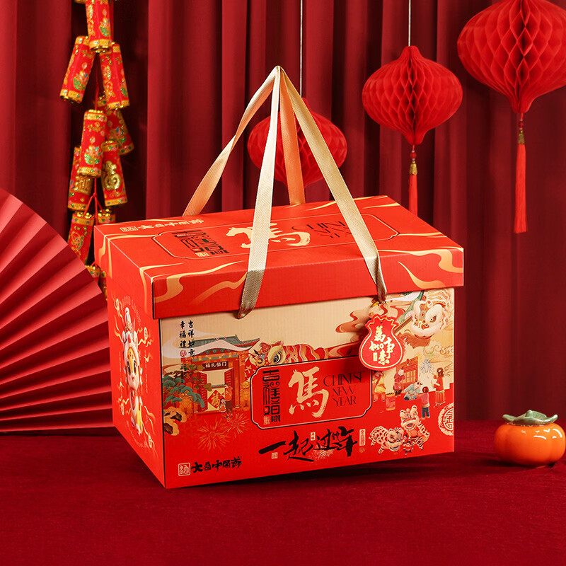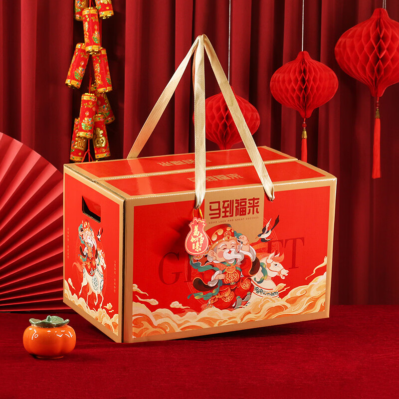 2026年马年礼盒空盒 年货礼盒定制手提包装礼品盒节日礼空盒 转盘盒 35*14*23cm