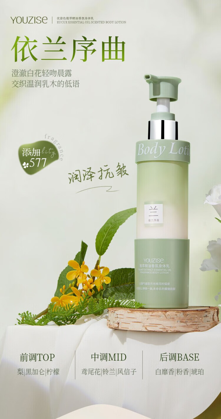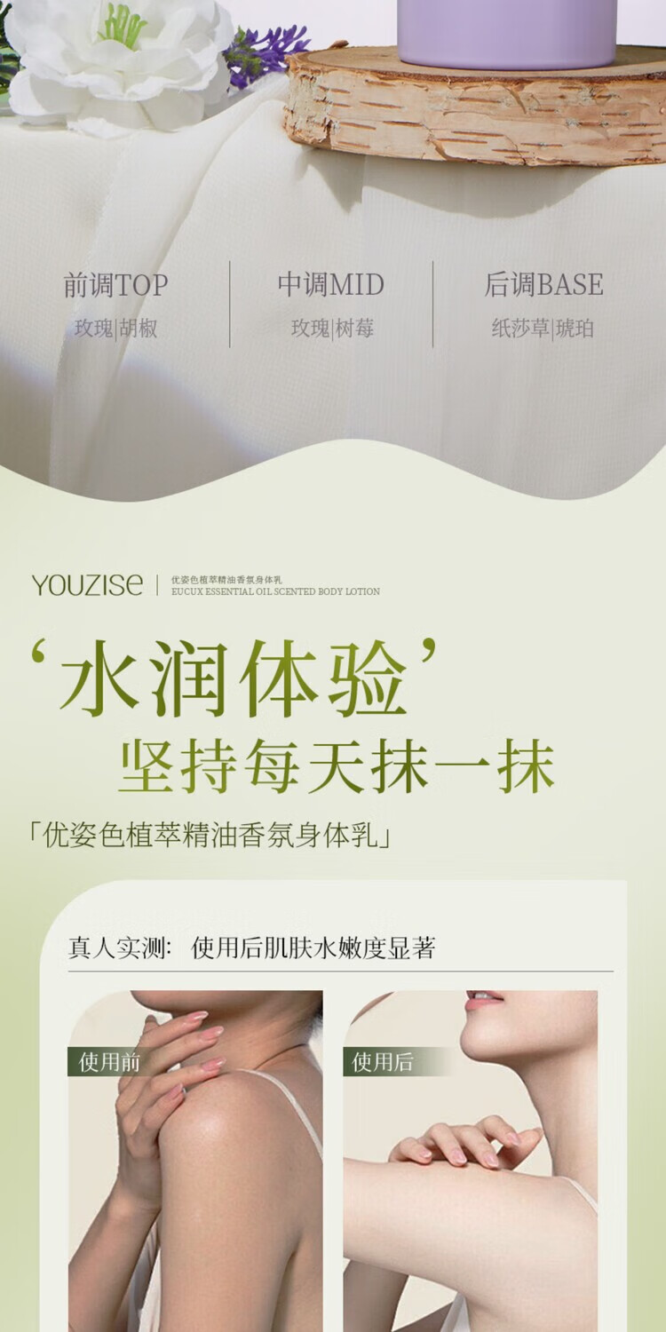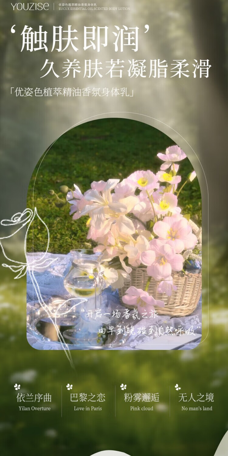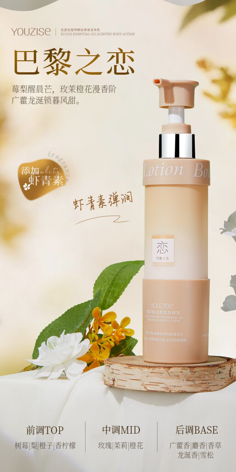 优姿色植萃精油香氛身体乳护理滋养皮肤保湿锁水柔嫩光泽 巴黎之恋 200g